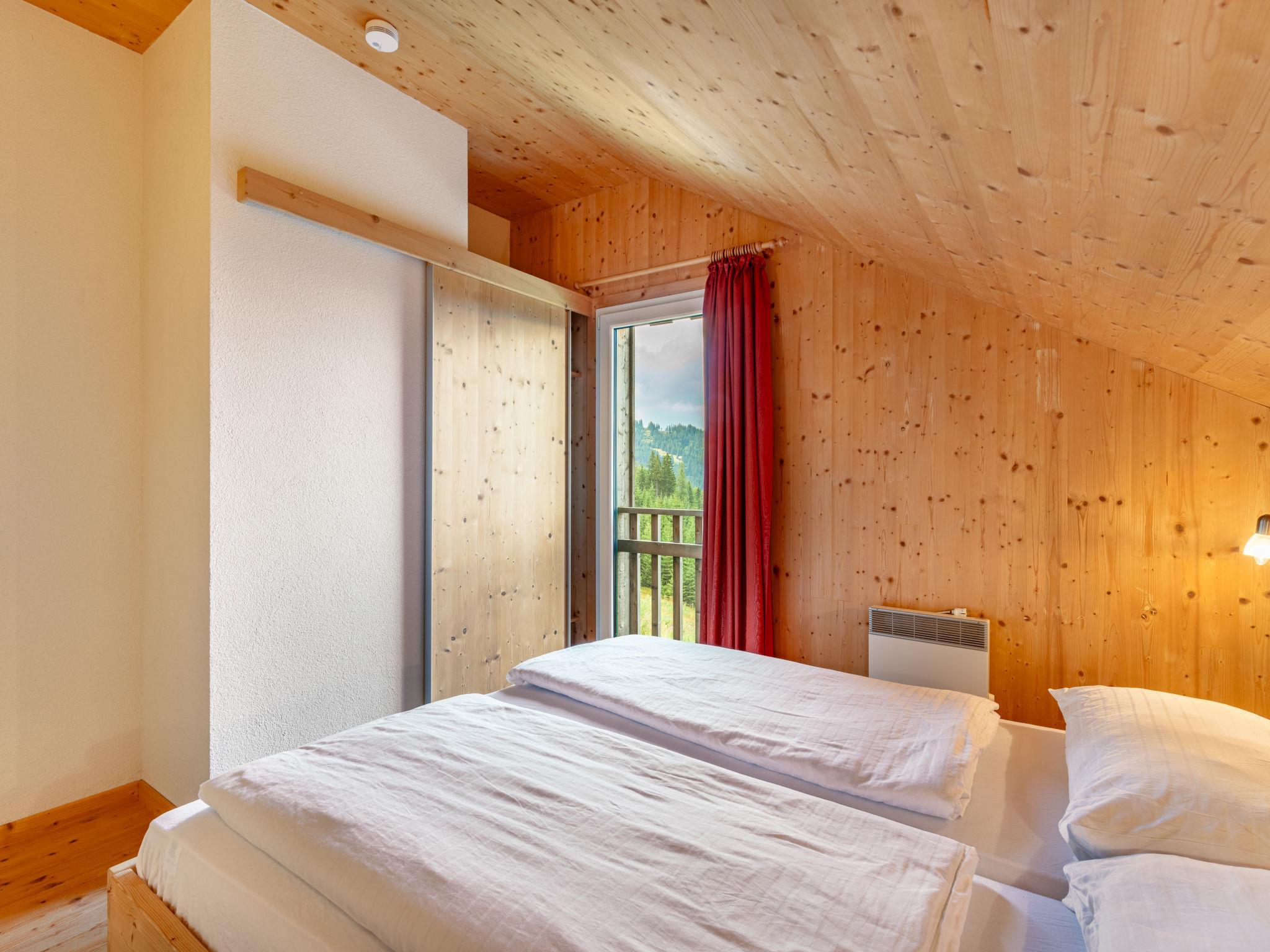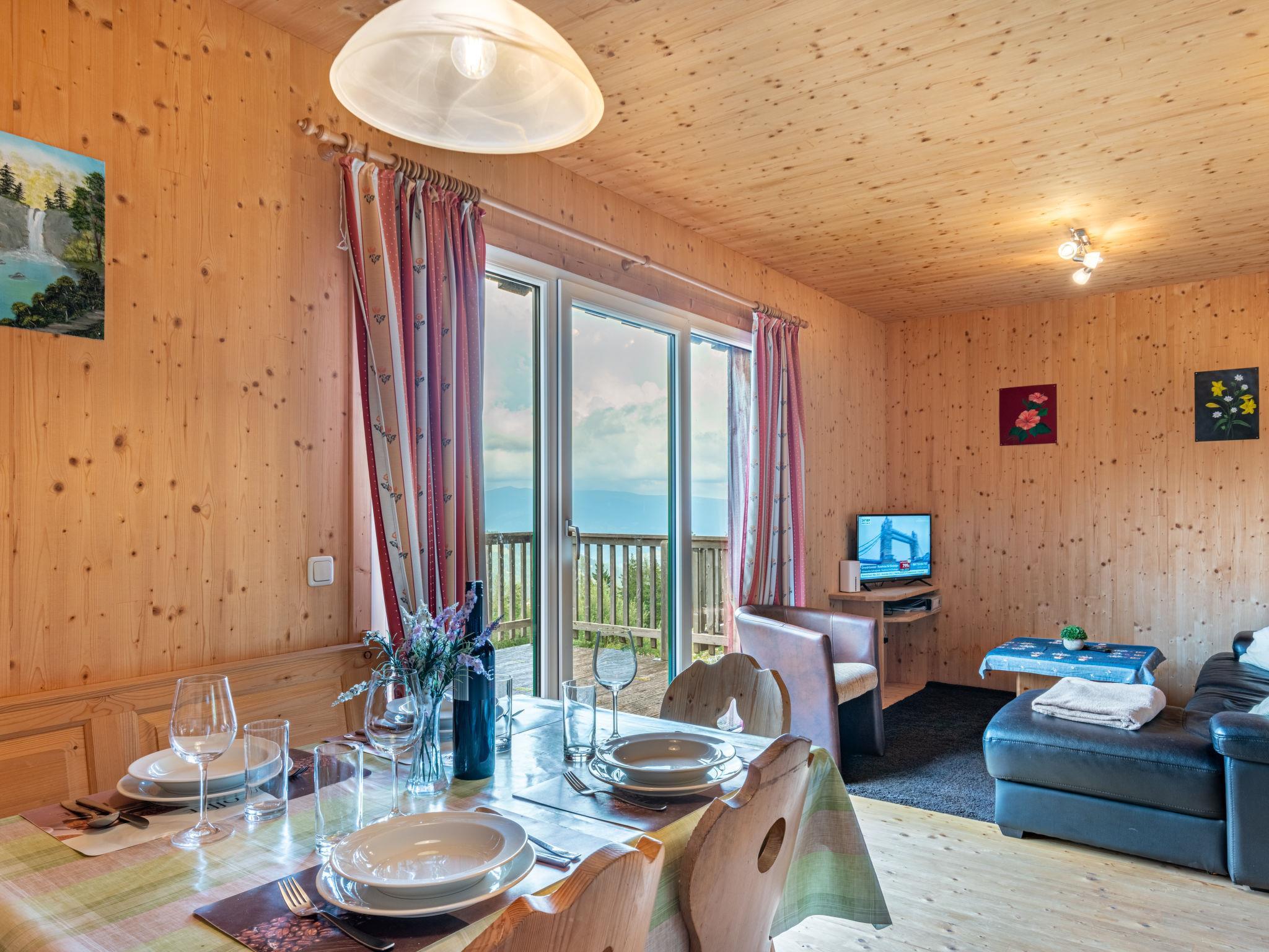 3-room chalet 73 m2. Object suitable for 6 adults. Spacious and bright, tasteful and wooden furniture furnishings: entrance hall with separate WC. Living/dining room with 2 folding beds, dining nook, cable TV, international TV channels and gas heater. Exit to the terrace. Large, open kitchen (oven, dishwasher, 4 ceramic glass hob hotplates, toaster, kettle, electric coffee machine). Upper floor: 2 double bedrooms with sloping ceilings, each room with electric heating. Bath/shower, Sauna. Wooden floors. Terrace furniture, balcony furniture, barbecue, deck chairs. Marvellous distant view of the mountains and the countryside. Facilities: washing machine, hair dryer. Internet (WiFi, free). Parking at the house. Please note: suitable for families. Non-smoking house. Fire extinguisher.