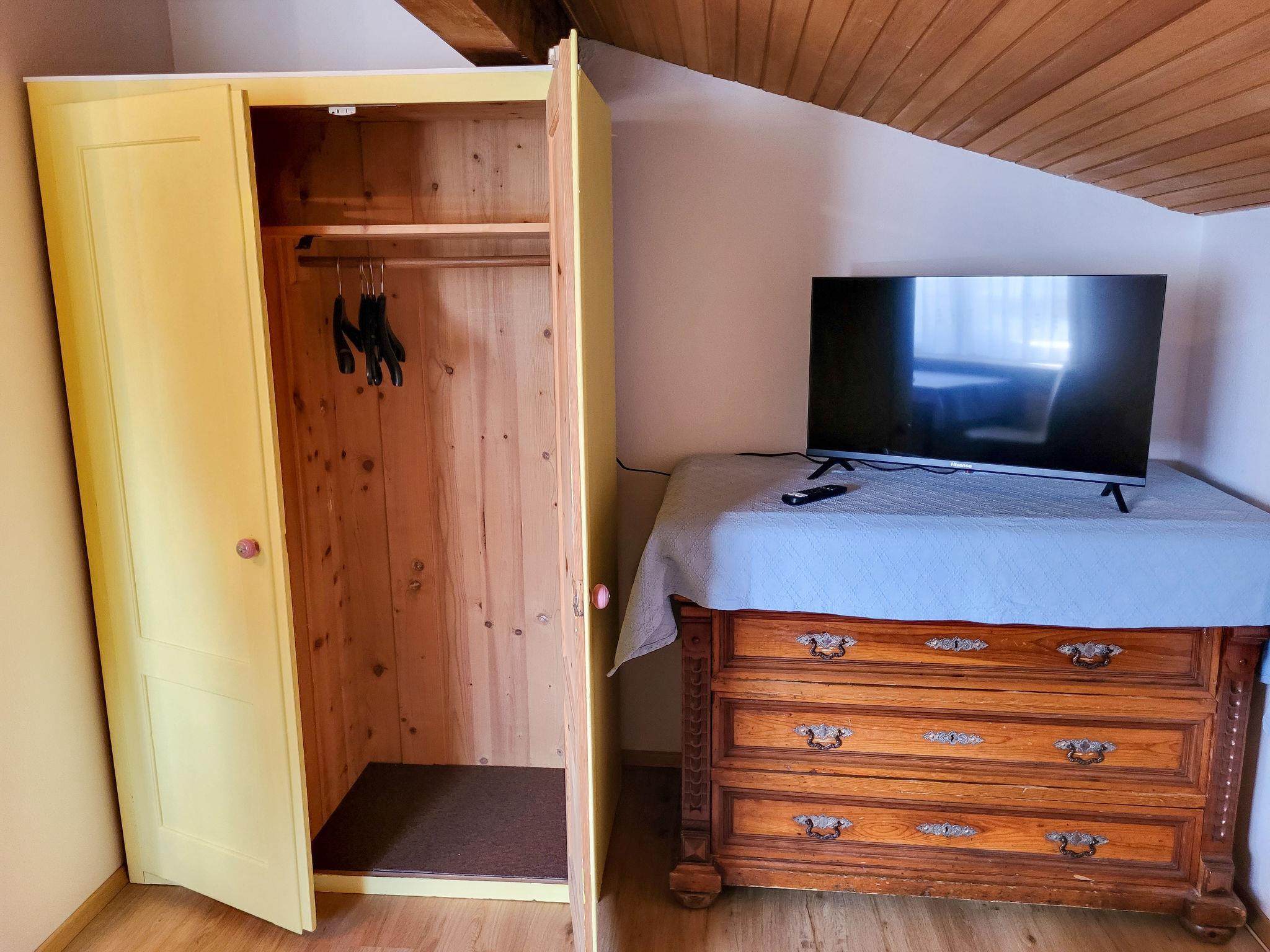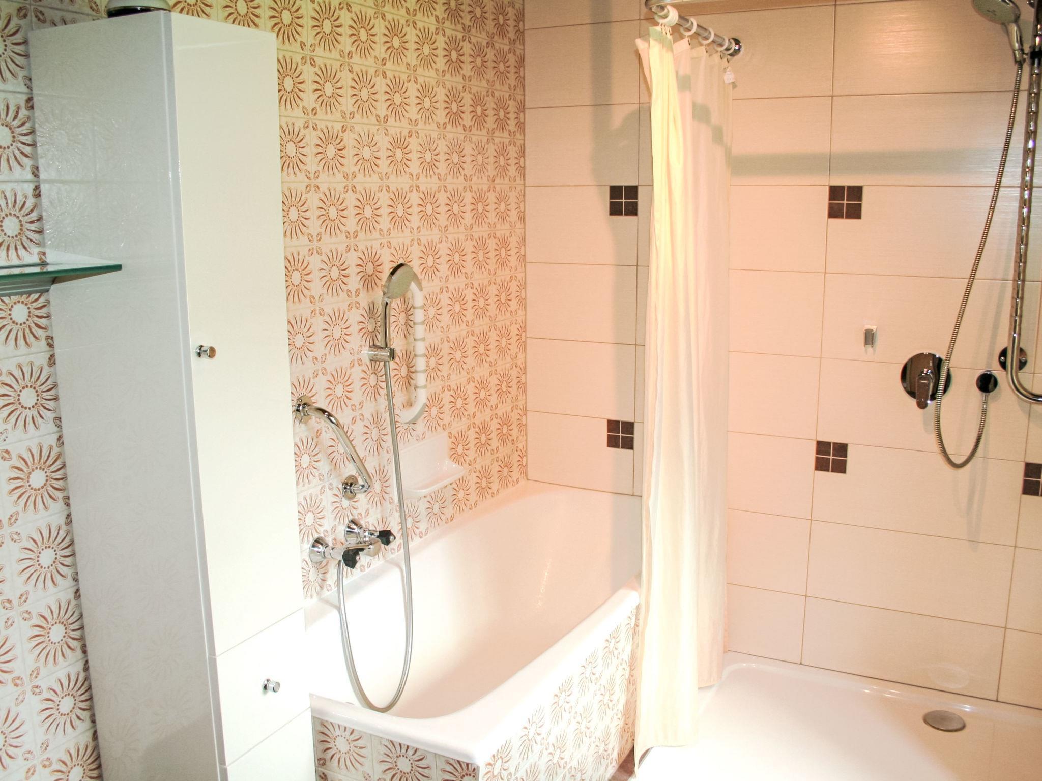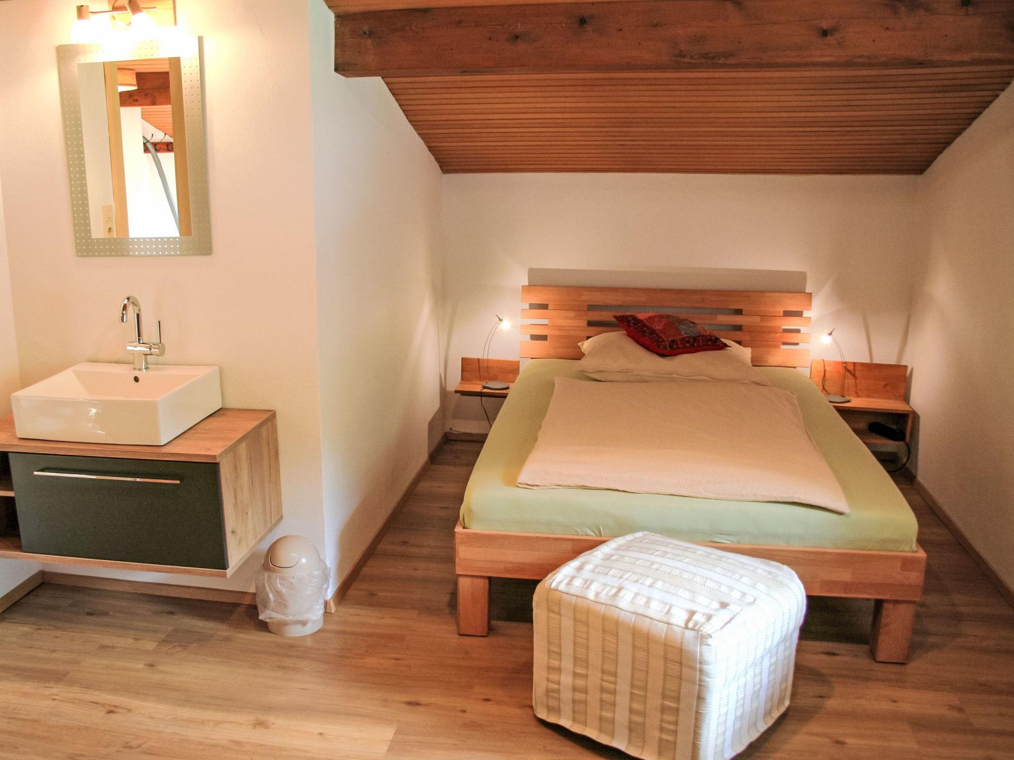 4-room apartment 110 m2 on 2 levels, on the upper floor. Bright, partly with sloping ceilings, cosy furnishings: living room with cable TV. 1 double bedroom. Exit to the terrace. Kitchen (oven, dishwasher, 4 ceramic glass hob hotplates, microwave, electric coffee machine) with dining nook and radio. Exit to the terrace. Bath/shower, sep. WC, double hand-basin. Upper floor: 1 large double bedroom with 1 bed (90 cm, length 200 cm), cable TV. 1 large double bedroom with 1 double sofabed and hand-basin. Large terrace 18 m2. Terrace furniture. Beautiful view of the mountains, the garden and the resort. Facilities: washing machine, safe, children's high chair, baby cot. Internet (WiFi, free). When there are less than the maximum number of guests staying at the property, not all of the bedrooms will be available for use.