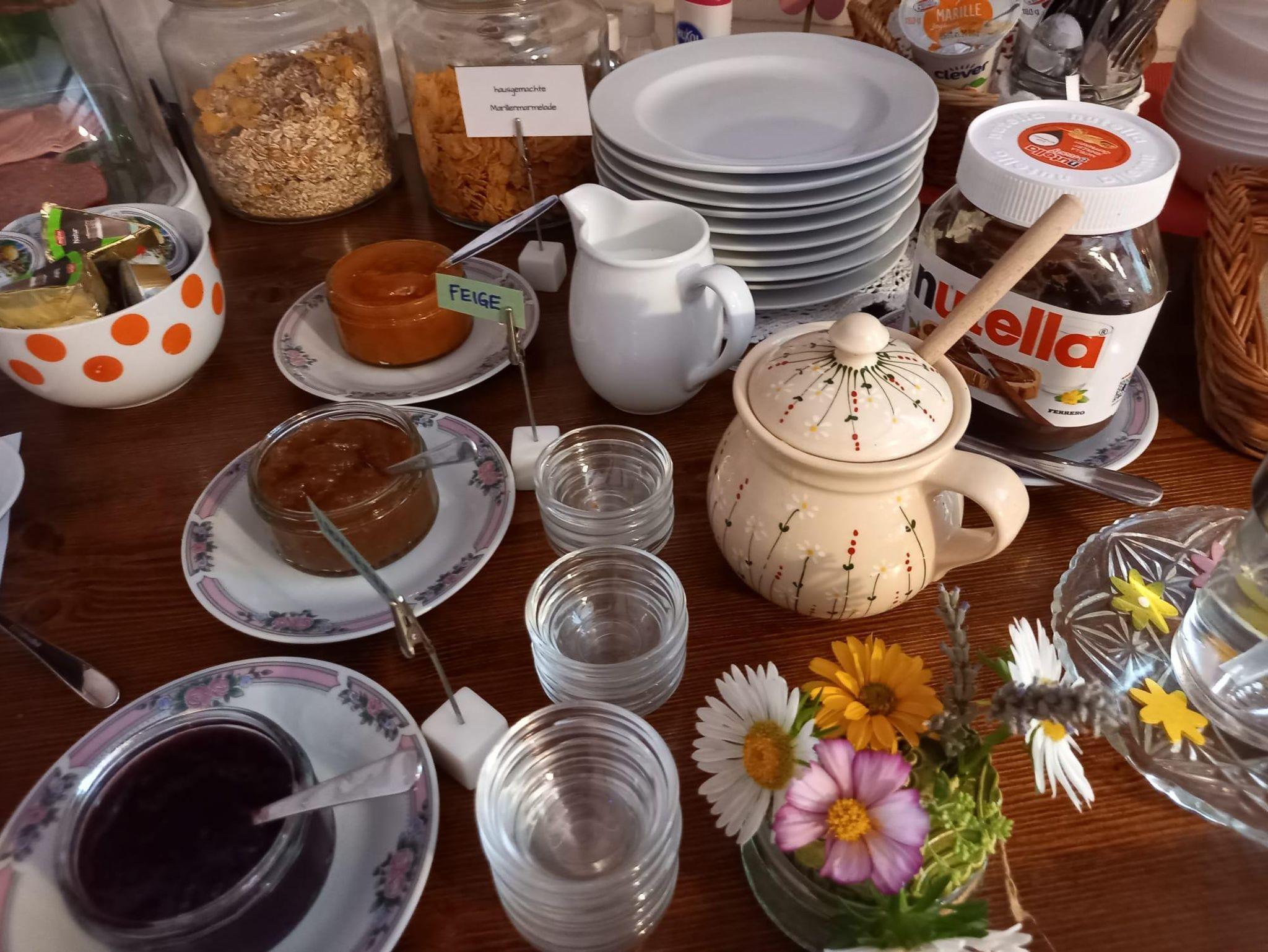 reichlich und gut(selbstgemachte Marmeladen und Kuchen).