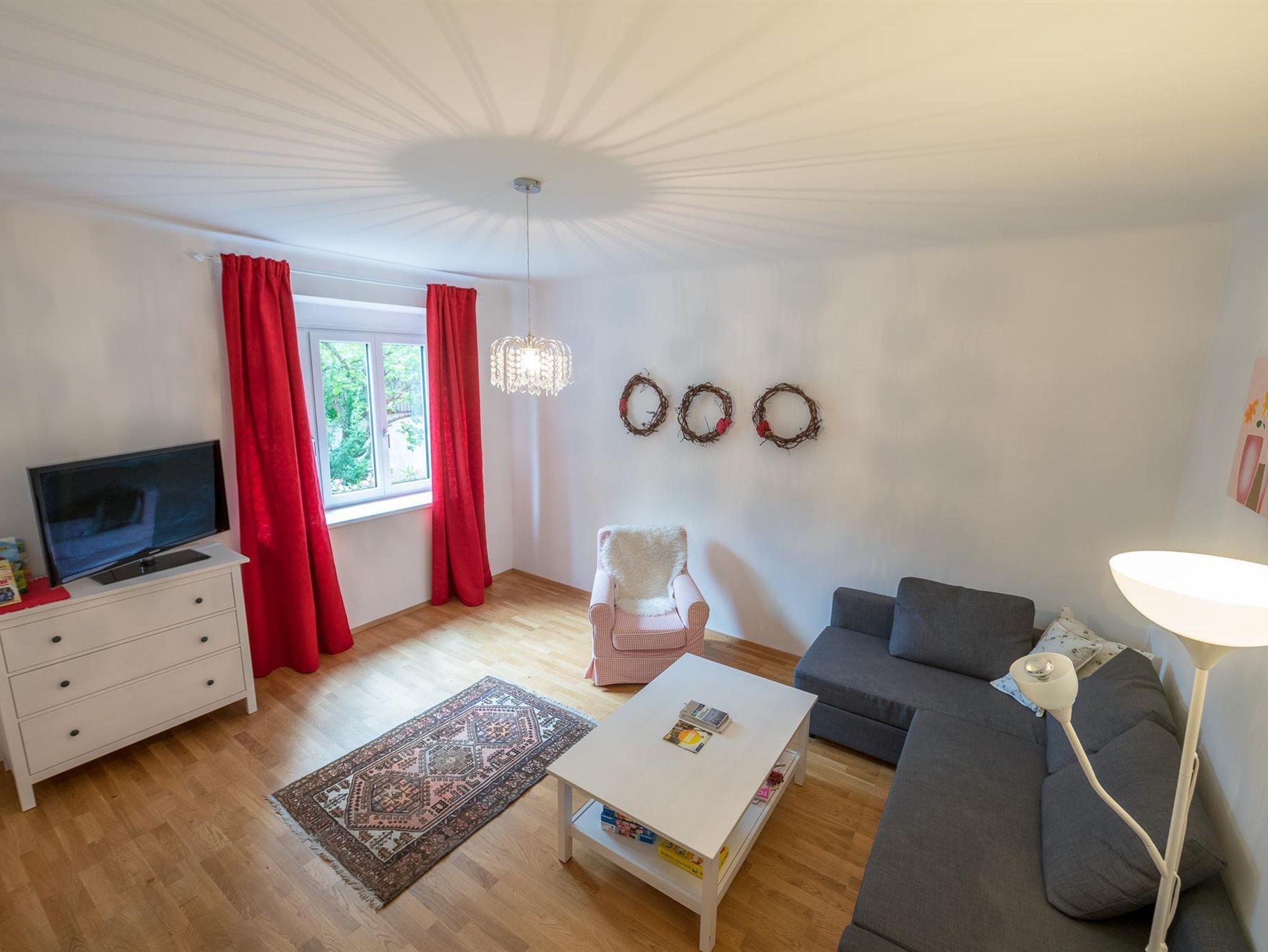 Ausstattung unserer Ferienwohnung: großes Schlafzimmer - 1 Ehebett und 1 Schlafsessel, großes Wohnzimmer mit ausziehbarer Couch und Spielecke für Kinder, Reisegitterbett, Hochstuhl komplett eingerichtete Küche mit gemütlicher Essecke Badezimmer und WC getrennt, gratis W-LAN, Vorraum, Parkplatz, Sitzgarten, Fahrradgarage auf Wunsch Frühstücksbuffet Unsere Extras für Sie: Bettwäsche, Handtücher vorhanden, auf Wunsch Frühstücksbuffet bzw. Brötchenservice, tägliche Reinigung und Weinverkostung möglich, frei zugänglicher Kühlschrank mit Bio-Weinen, Bio-Traubensaft, Mineralwasser und Bier.