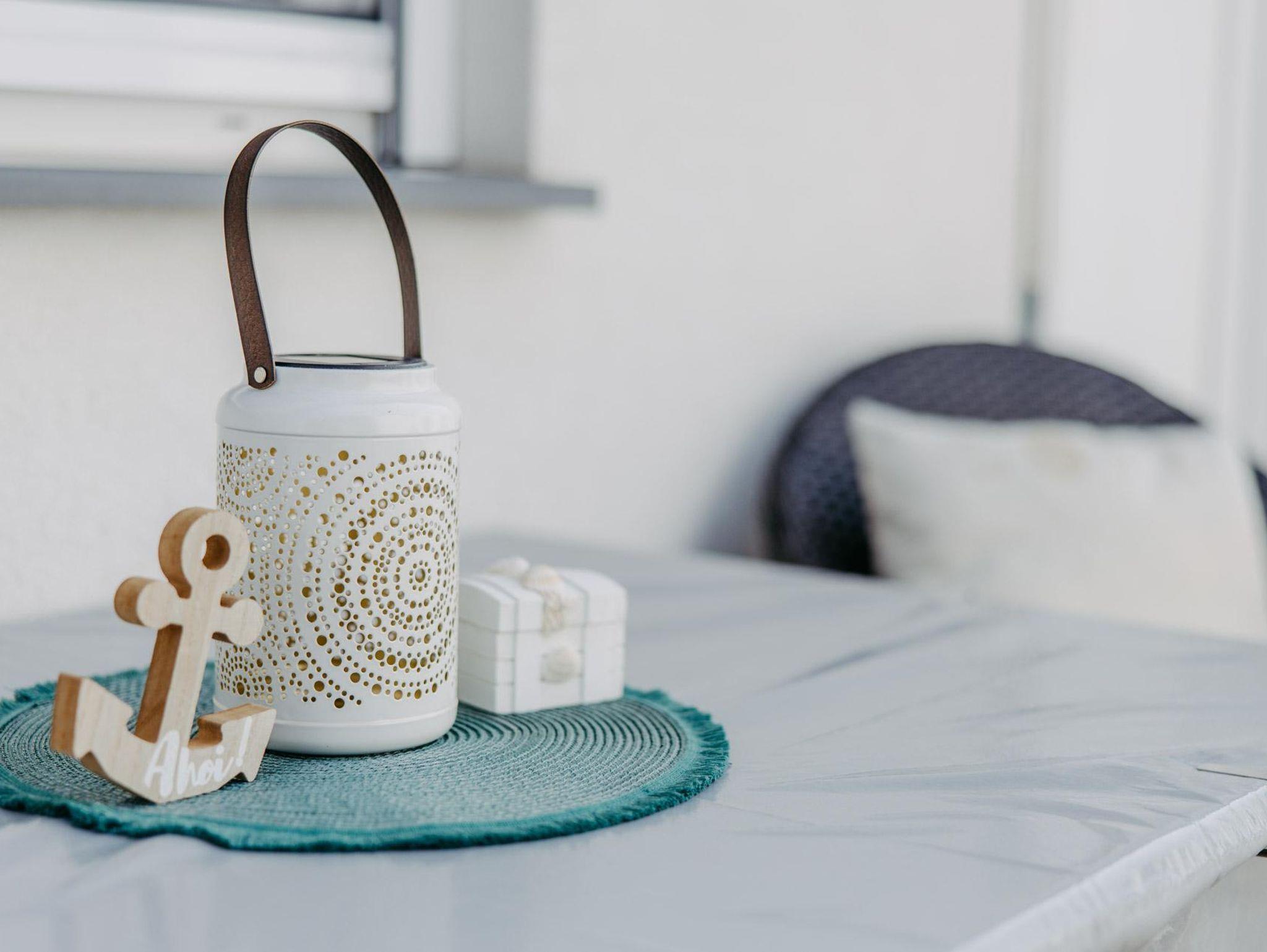 Ferienwohnung Marlena bietet eine Klimaanlage für heiße Sommertage. Im Eingangsbereich bietet sich eine gemütliche Ecke an, um den Tag mit der Morgensonne zu beginnen oder den Tag entspannt ausklingen zu lassen.