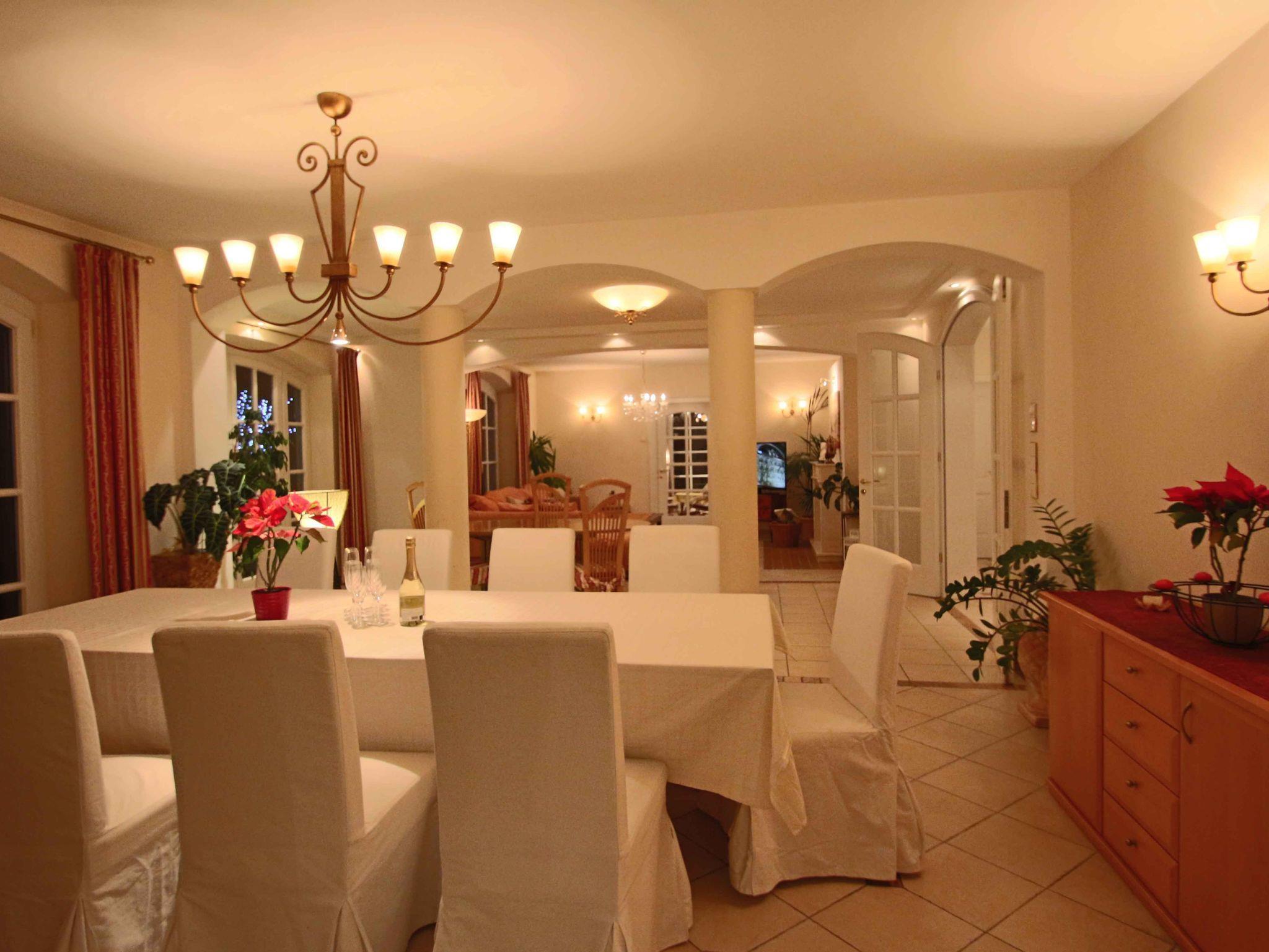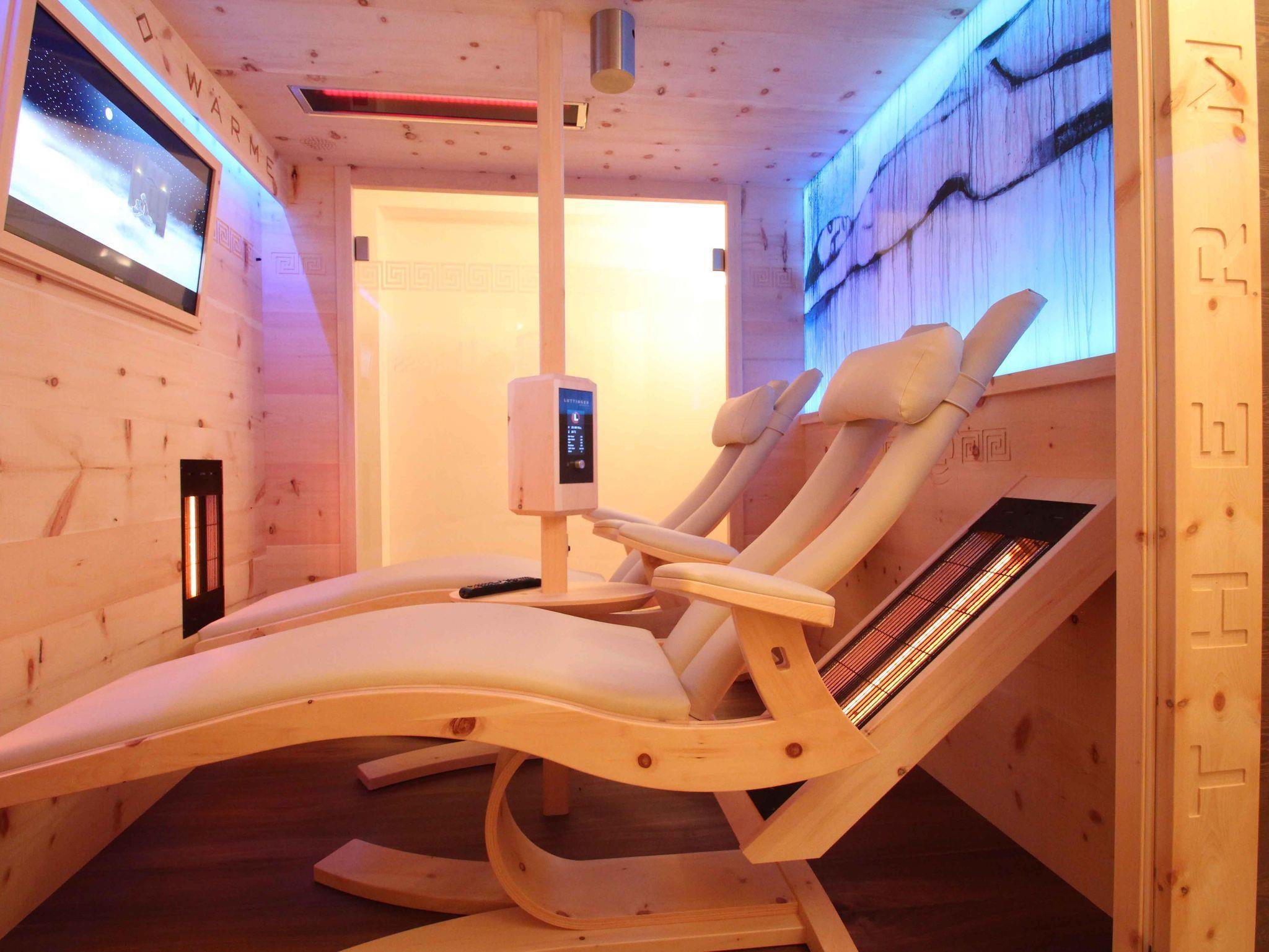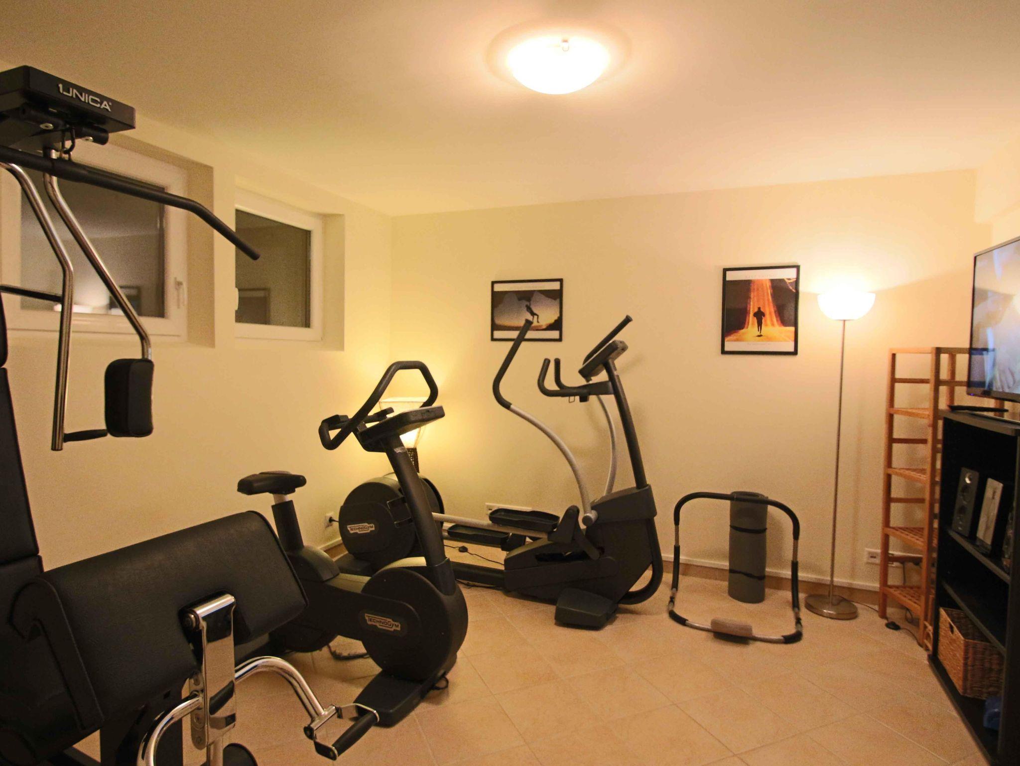 Ebenso verfügt das Ferienhaus über einen großzügigen Wellnessbereich mit Sauna, Infrarot- und Relax-Bereich, Whirlpool mit Farblich-Therapie sowie über einen hochmodernen Fitness-Bereich mit Ergometer, Crosstrainer und Multifunktionskrafttrainingsgerät in Studio-Qualität.