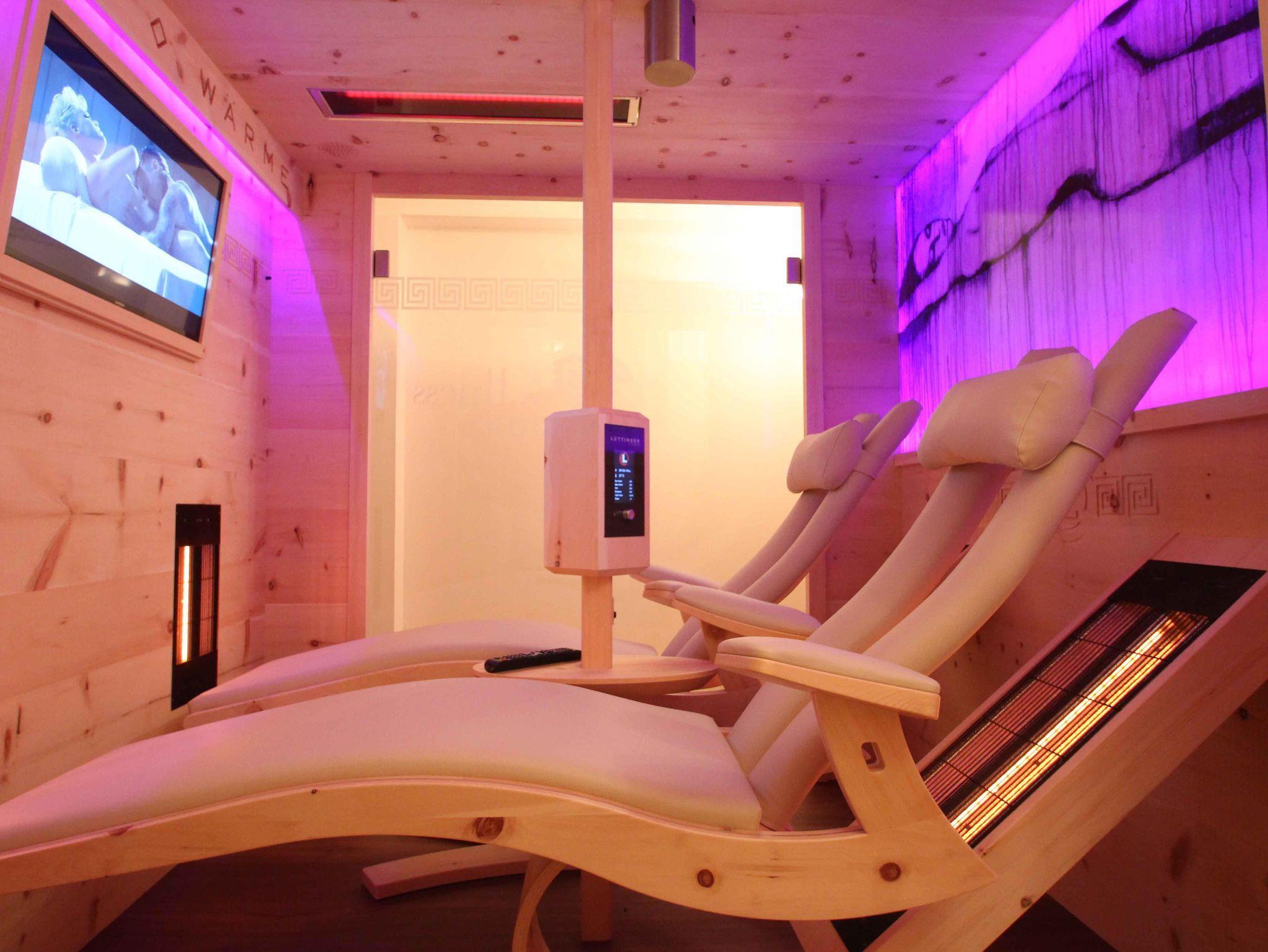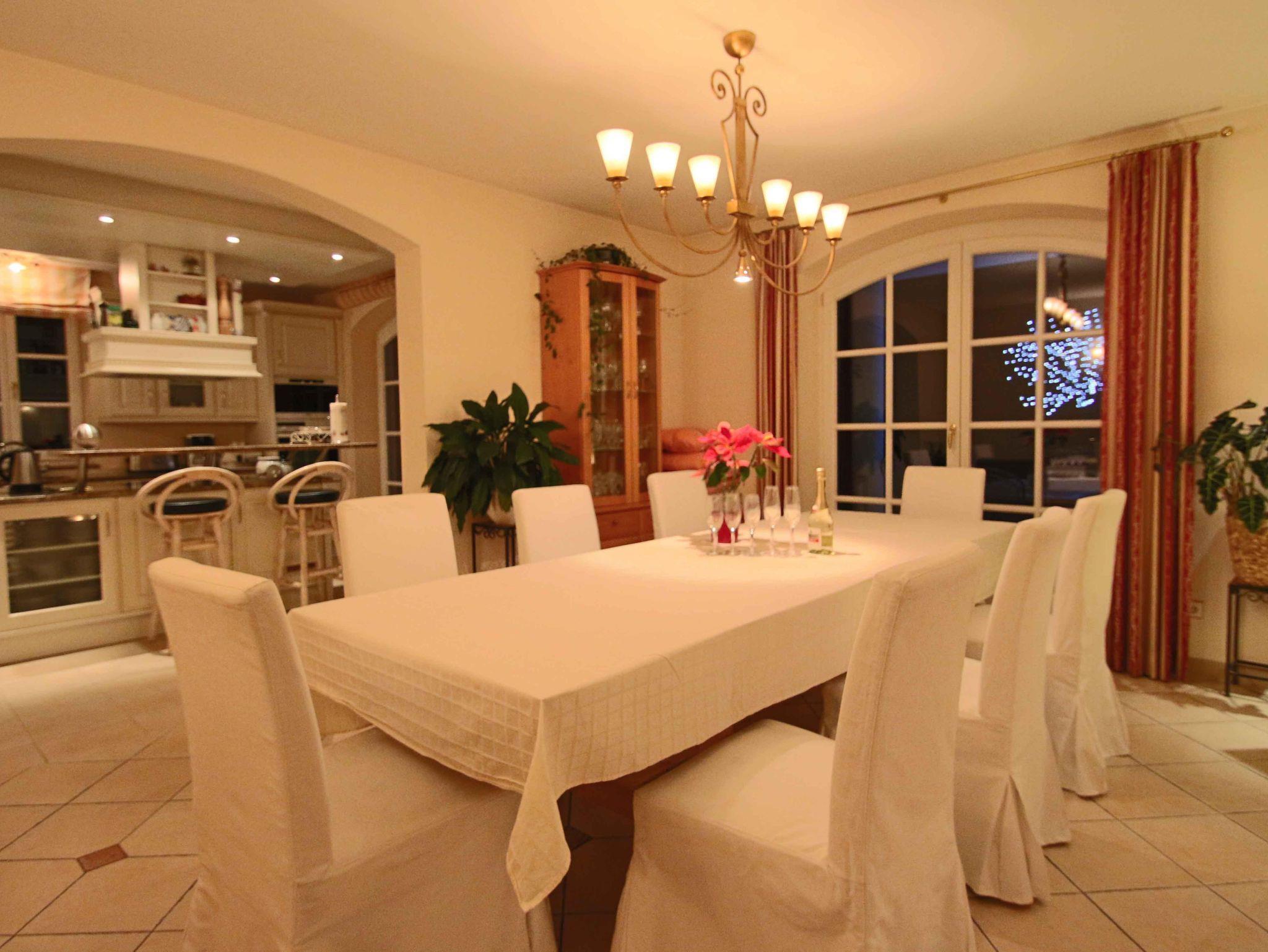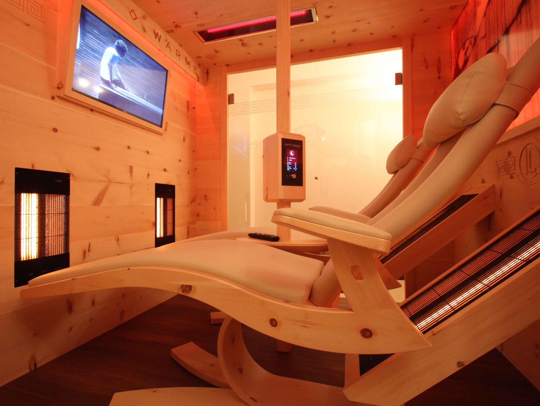 Ebenso verfügt das Ferienhaus über einen großzügigen Wellnessbereich mit Sauna, Infrarot- und Relax-Bereich, Whirlpool mit Farblich-Therapie sowie über einen hochmodernen Fitness-Bereich mit Ergometer, Crosstrainer und Multifunktionskrafttrainingsgerät in Studio-Qualität.