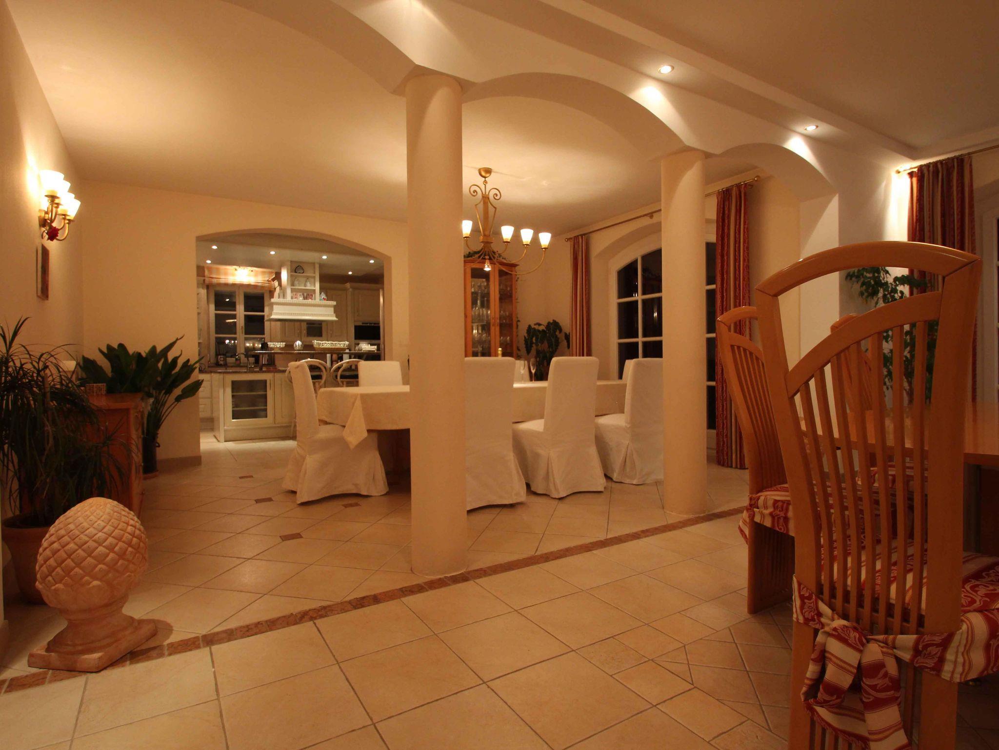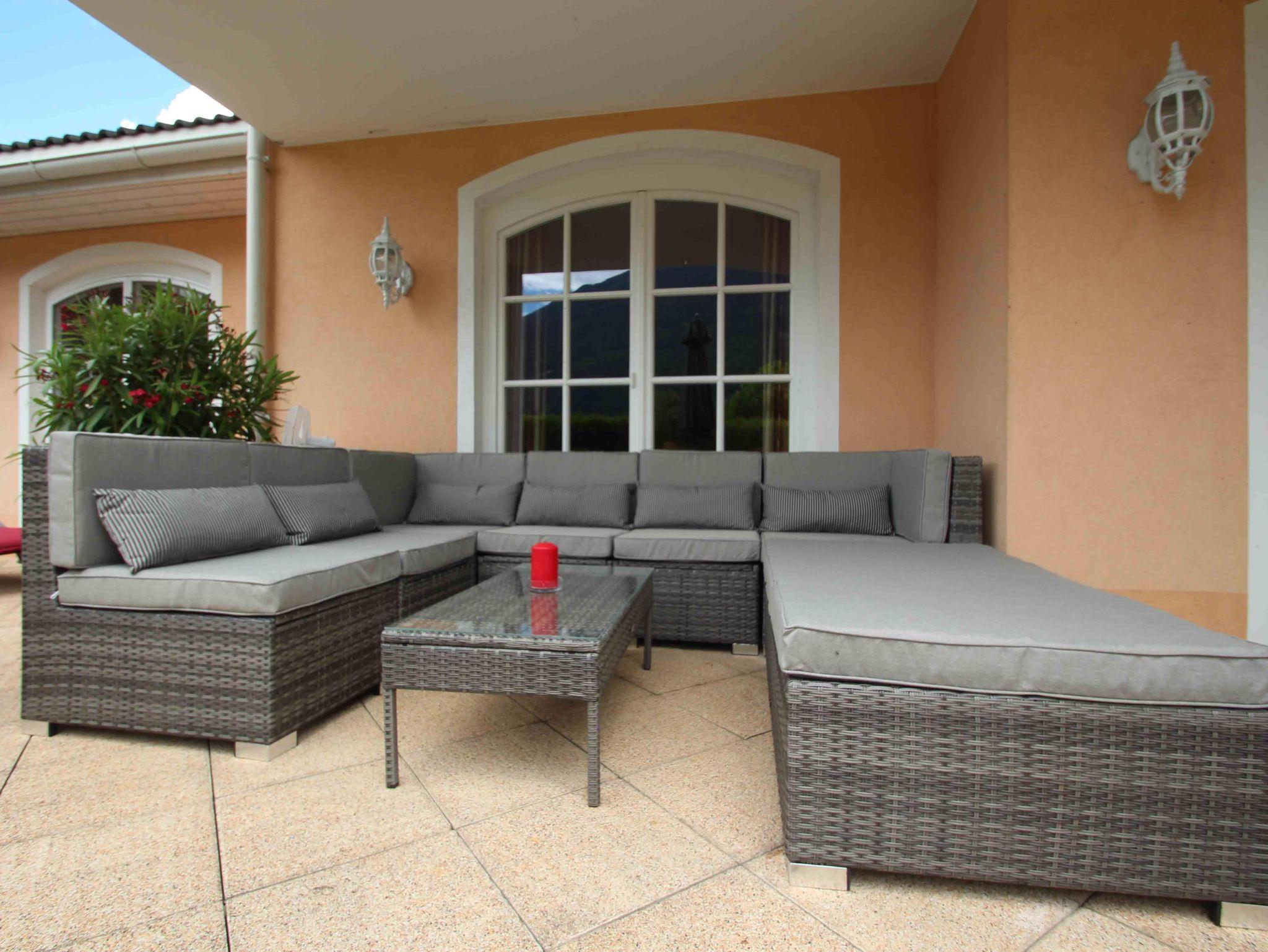 Das rund 300 Quadratmeter große Luxus-Ferienhaus im toskanischen Stil in Mötz teilt sich in Erdgeschoss, Obergeschoss und zum Teil Untergeschoss auf. Die fünf Schlafzimmer - bestehend aus drei Doppelzimmern und zwei Dreibettzimmer - bieten für bis zu zwölf Gäste Platz. Das Ferienhaus verfügt über einen großzügigen Wellnessbereich mit Sauna, Infrarot- und Relax-Bereich, Whirlpool mit Farblicht-Therapie. Außerdem gibt es einen hochmodernen Fitness-Bereich mit Ergometer, Crosstrainer und Multifunktionskrafttrainingsgerät in Studio-Qualität. Gäste verbringen gemütliche Stunden auf den zwei Terrassen mit Liegewiese oder entspannen im Liegestuhl auf einem der drei Balkone. Für die Fahrzeuge stehen Parkflächen und eine Doppelgarage zur Verfügung.