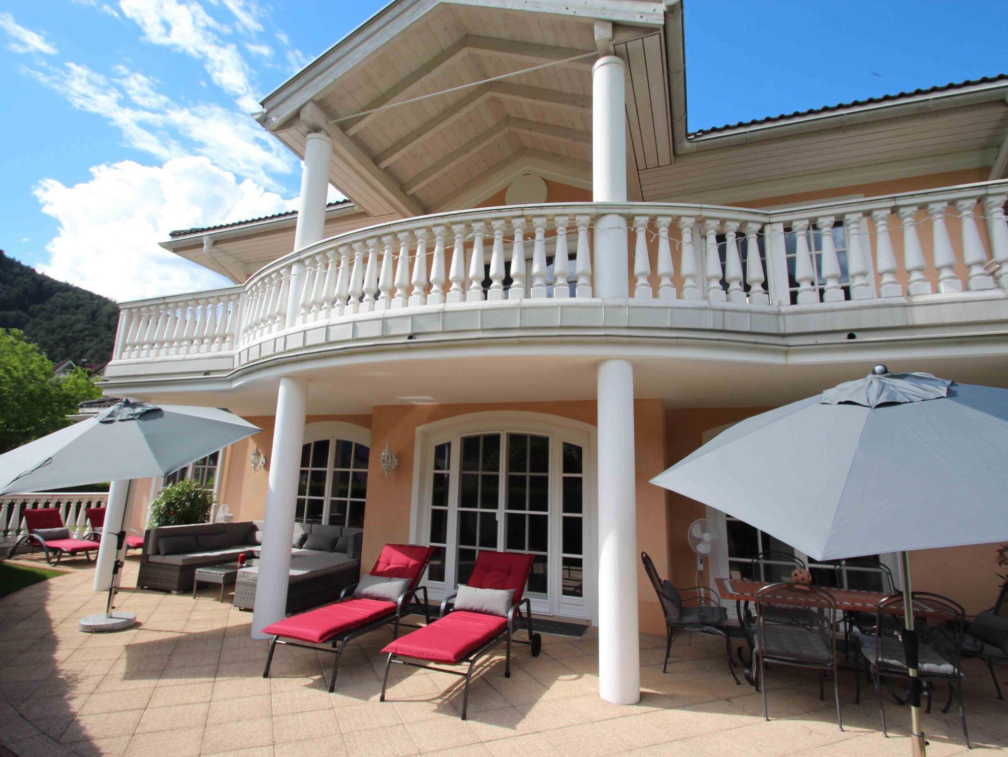 Die Villa mit rund 300 m² Wohnfläche teilt sich in Erdgeschoss, Obergeschoss und zum Teil Untergeschoss auf. Genießen Sie gemütliche Stunden auf den zwei Terrassen mit Liegewiese oder entspannen Sie im Liegestuhl auf einen der drei Balkone.