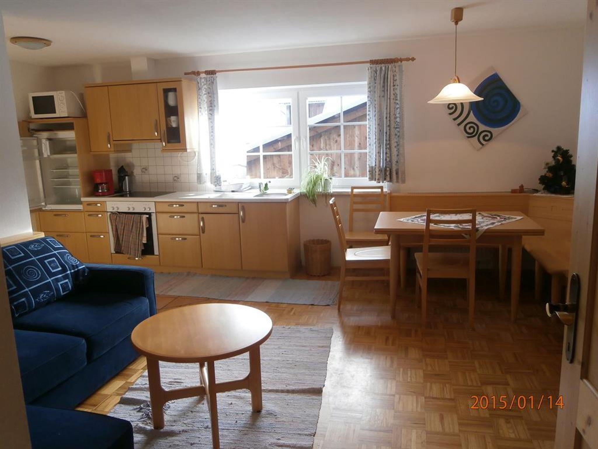 75 m² Wohnung auf 2 Etagen, in einem Nebengebäude direkt am Bauernhof, mit geräumiger Wohnküche mit E-Herd mit Backrohr, Kühlschrank mit Gefrierfach, Mikrowelle, Filterkaffeemaschine, Wasserkocher, Koch-und Essgeschirr, Eckbank mit Esstisch, Sitzgruppe mit Couch, SAT-TV und WLAN, 2 Schlafzimmer, Badezimmer mit Eckbadewanne, WC und Balkon. In den Schlafzimmern Vollholzmöbel aus Fichte und Parkettböden.