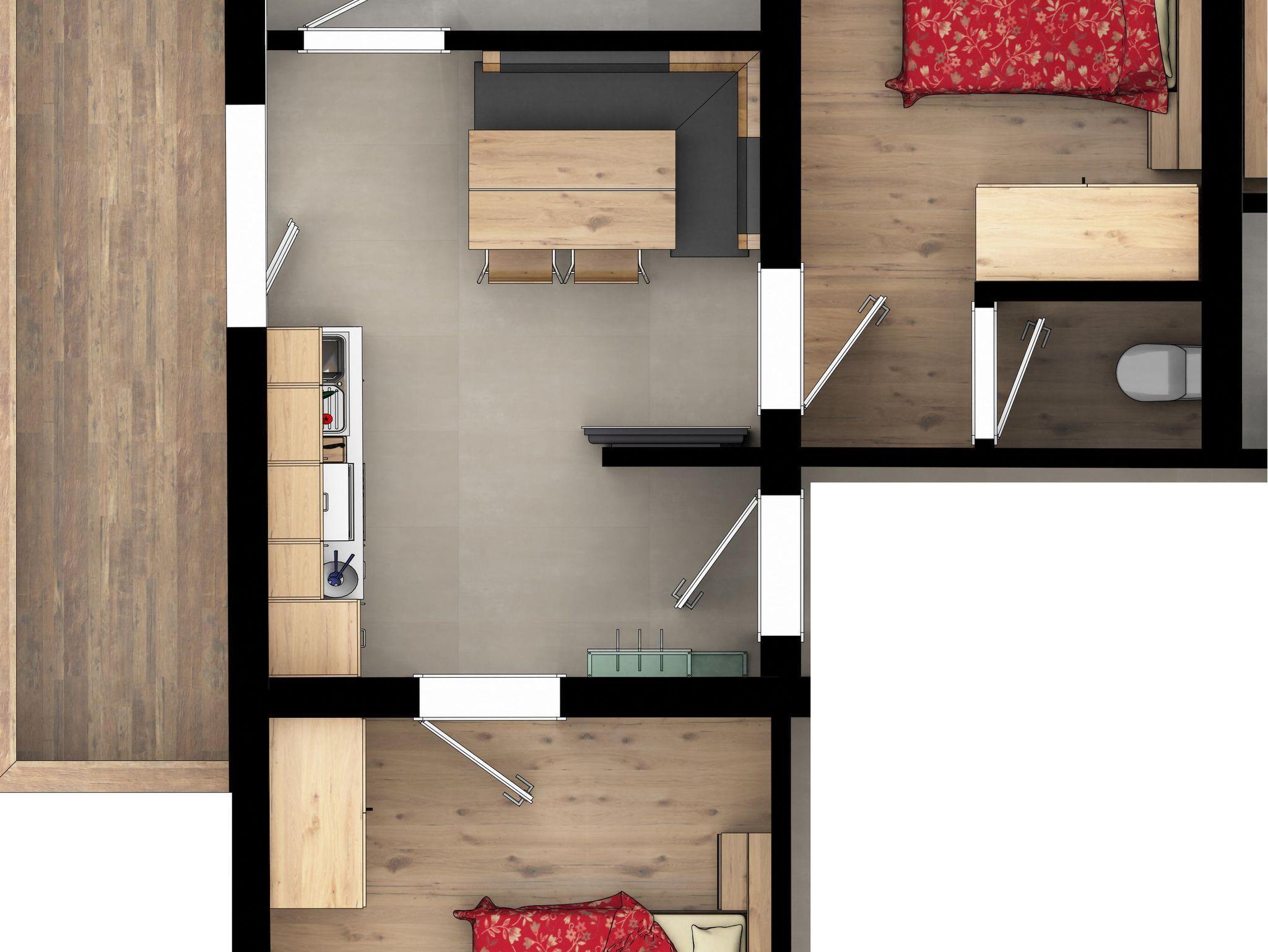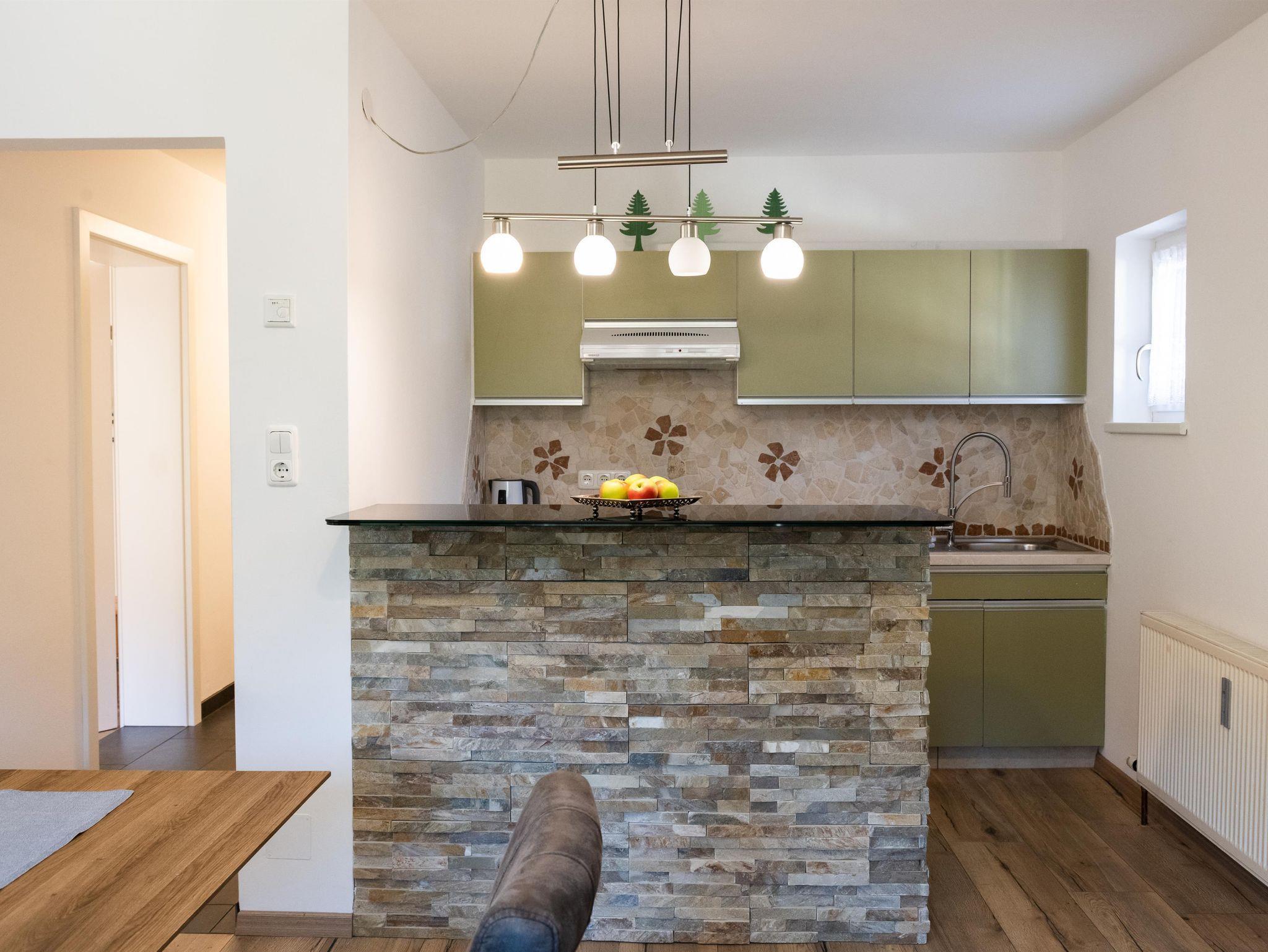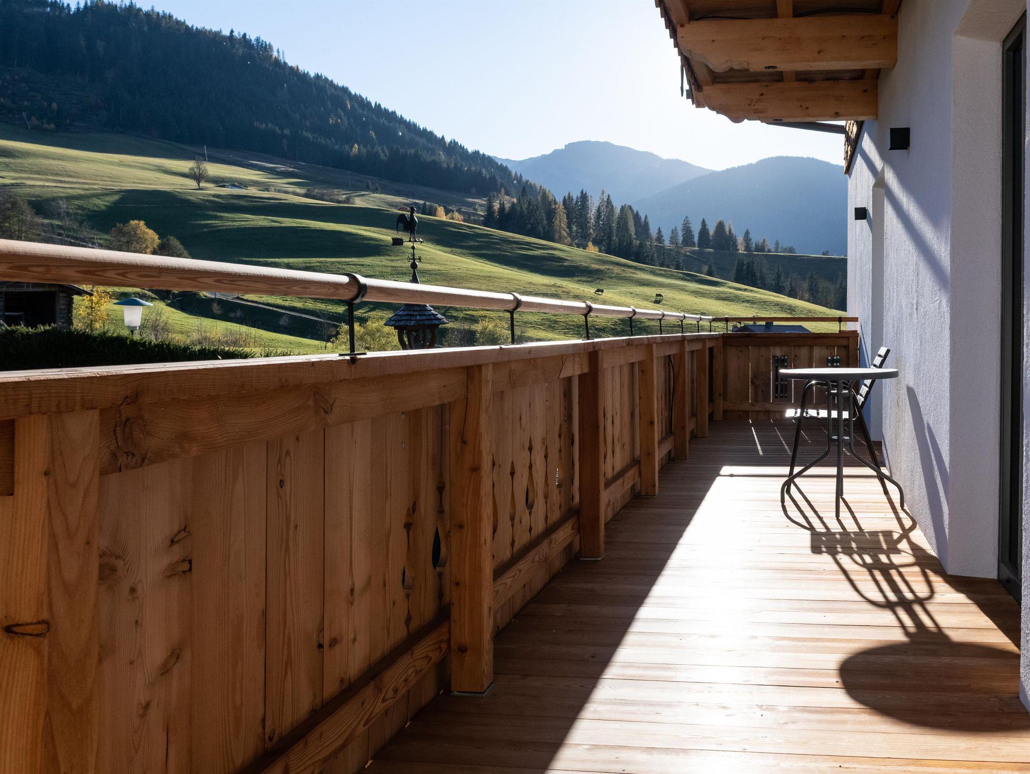 Die Wohnung verfügt über zwei Schlafzimmer mit je einem Doppelbett, einem gemeinsamen Badezimmer und einem gemütlichen Wohn-/Essbereich mit gut ausgestatteter Küche. In einem der beiden Schlafzimmer befindet sich außerdem noch eine separate Toilette. Vom Wohnbereich gelangen Sie auf den eigenen, großzügigen Balkon mit traumhaften Blick auf den Natrun.