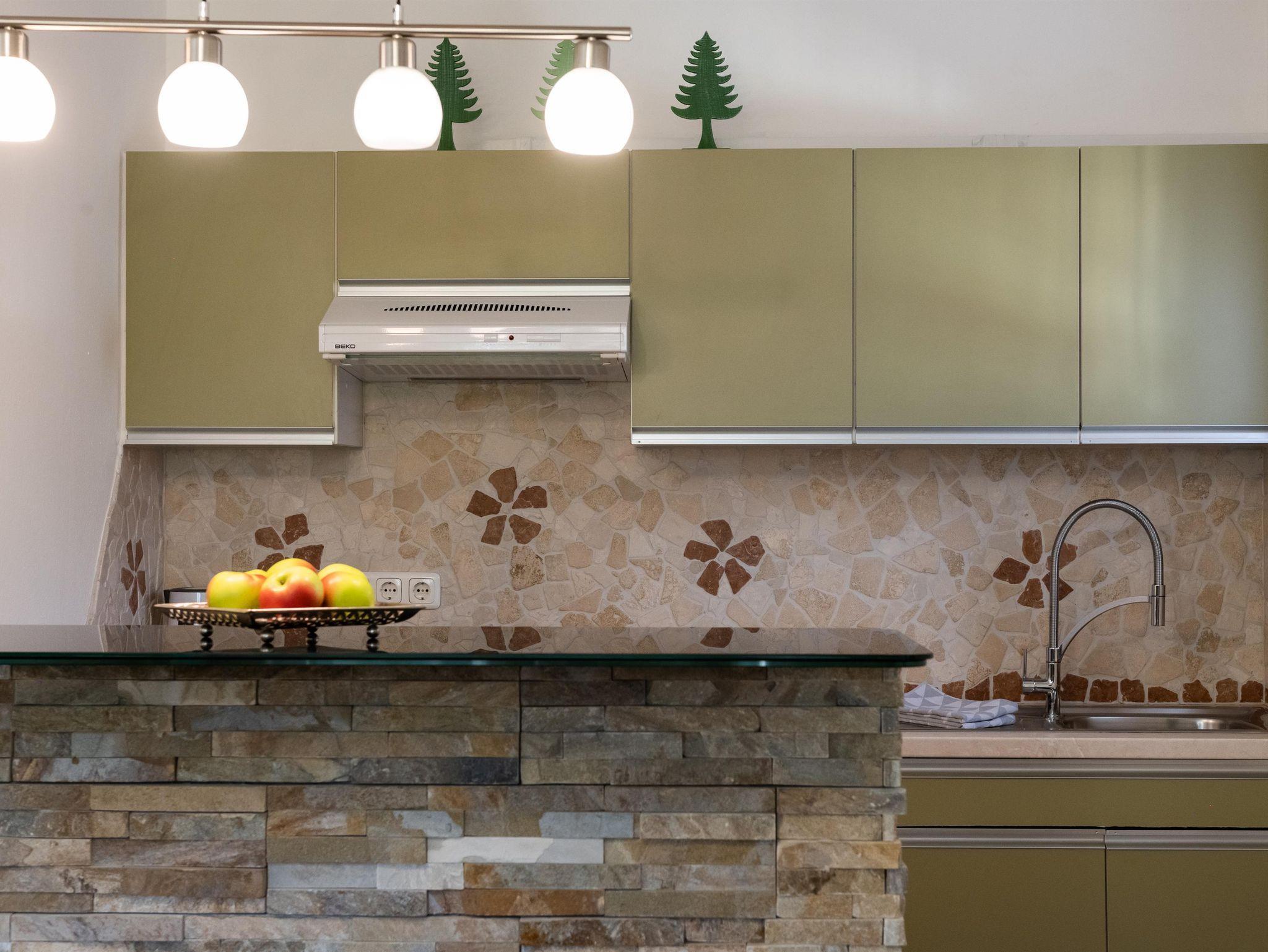Die Wohnung verfügt über zwei Zimmer mit Doppelbett einer sehr gut ausgestatteten Küche und einem Badezimmer mit Dusche und WC. Zwei Fernseher mit Kabel-TV sind ebenfalls vorhanden.