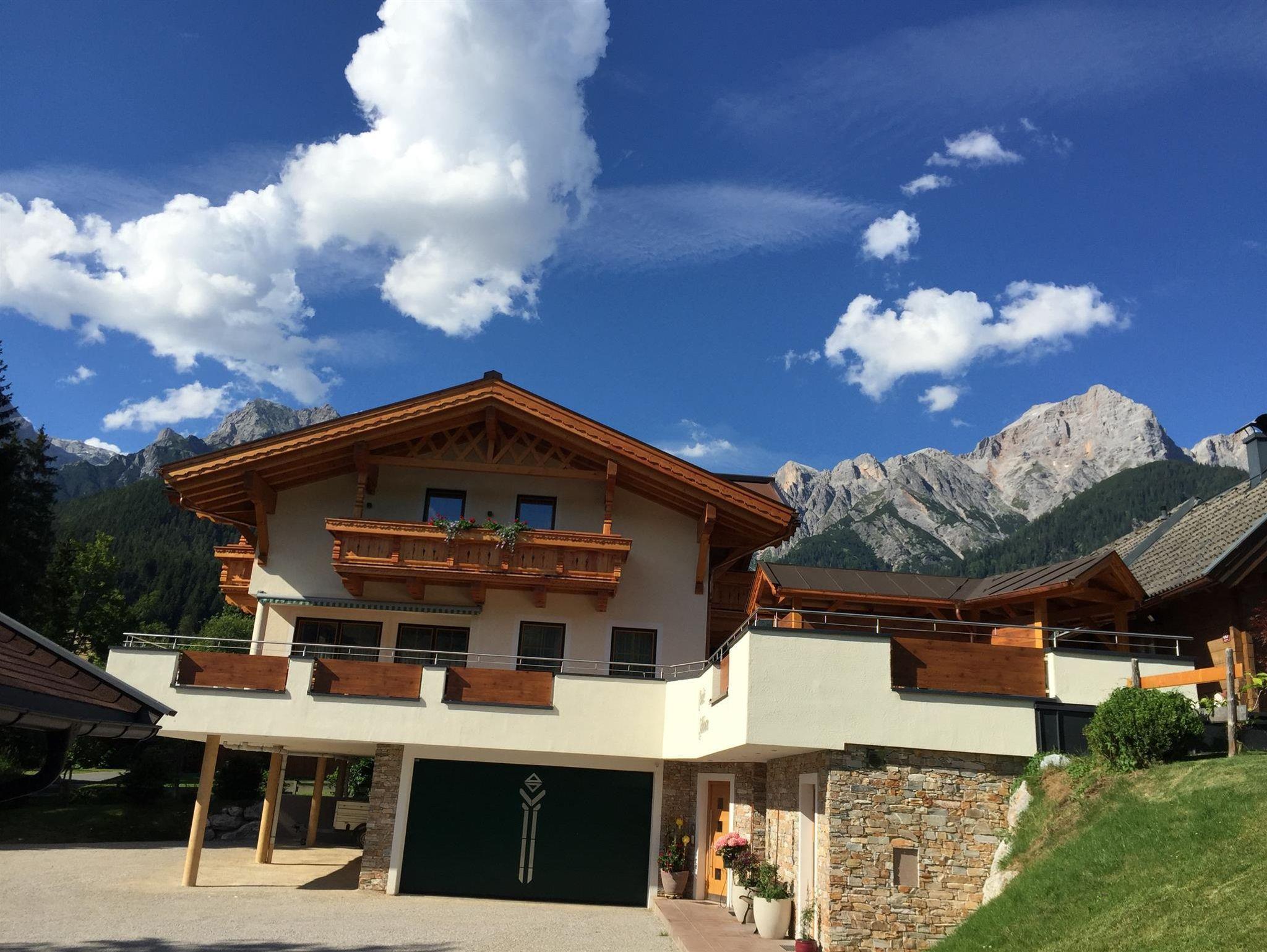 Ein neu erbautes Chalet mit 4 getrennten Zimmern jeweils DU/WC, Großer Wohnraum, Küche, Sauna, große Sonnenterrasse, Carports, WLAN, Griller, Liegewiese, Kachelofen,