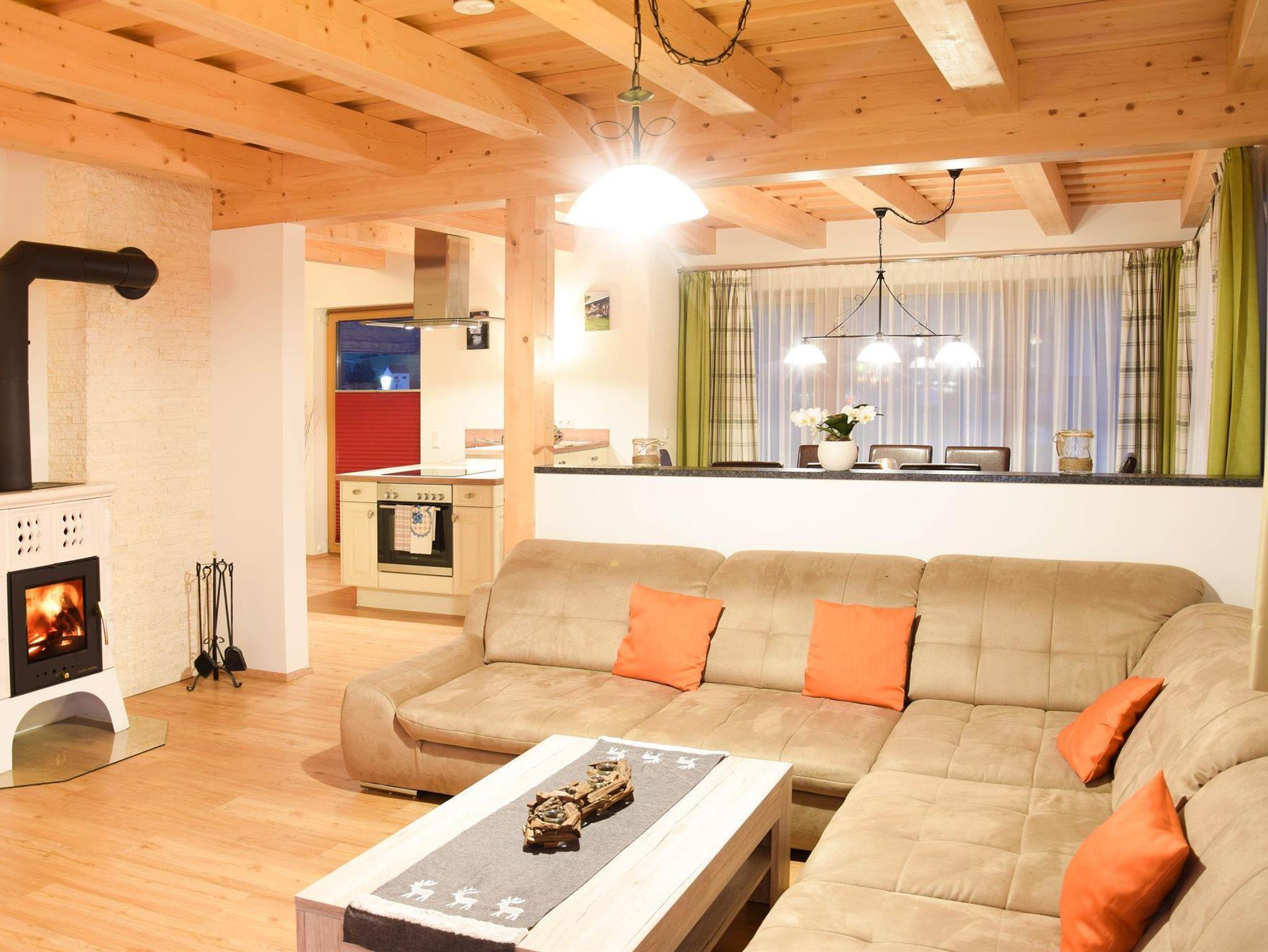Großer gemütlicher Wohnraum mit SAT-TV, Kaminofen, Internetanschluss