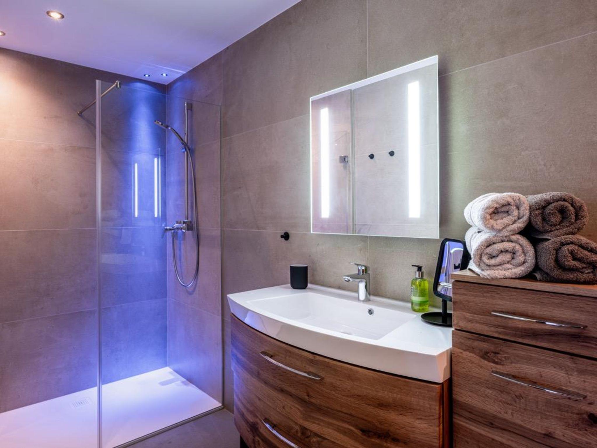 • Badezimmer: Das Badezimmer ist mit einer barrierefreien Dusche ausgestattet, die Ihnen höchsten Komfort bietet. Das WC ist separat untergebracht, um Ihnen maximale Privatsphäre zu gewährleisten.