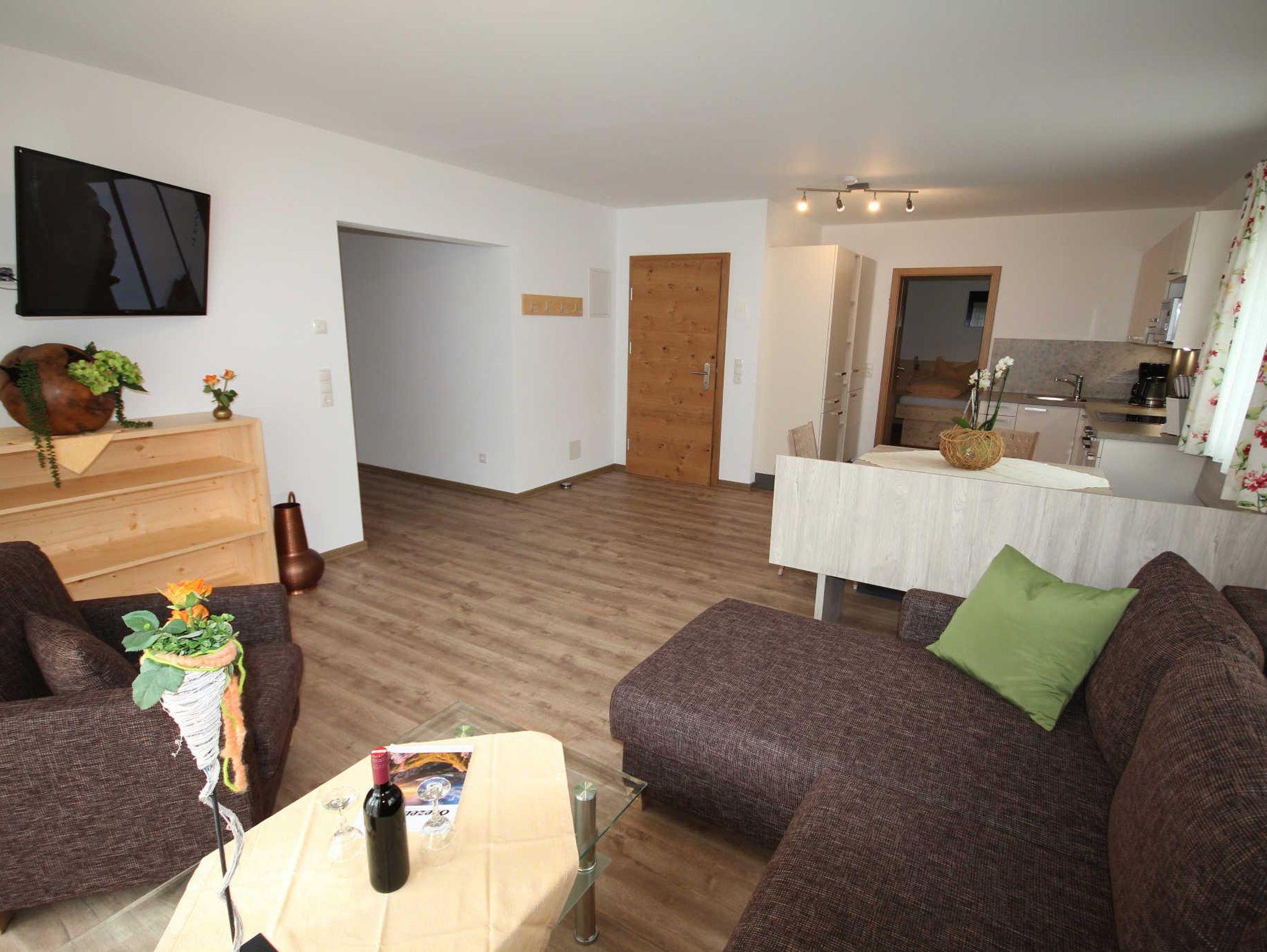 Die Wohnung „Bergblick“ ist ca. 85m² groß, verfügt über 2 Schlafzimmer, ein großes Bad mit WC, Doppelwaschbecken und Dusche, separates WC, Wohnküche, Balkon und Terrasse, Abstellraum, 2 Fernseher. Kostenfreies W-LAN.