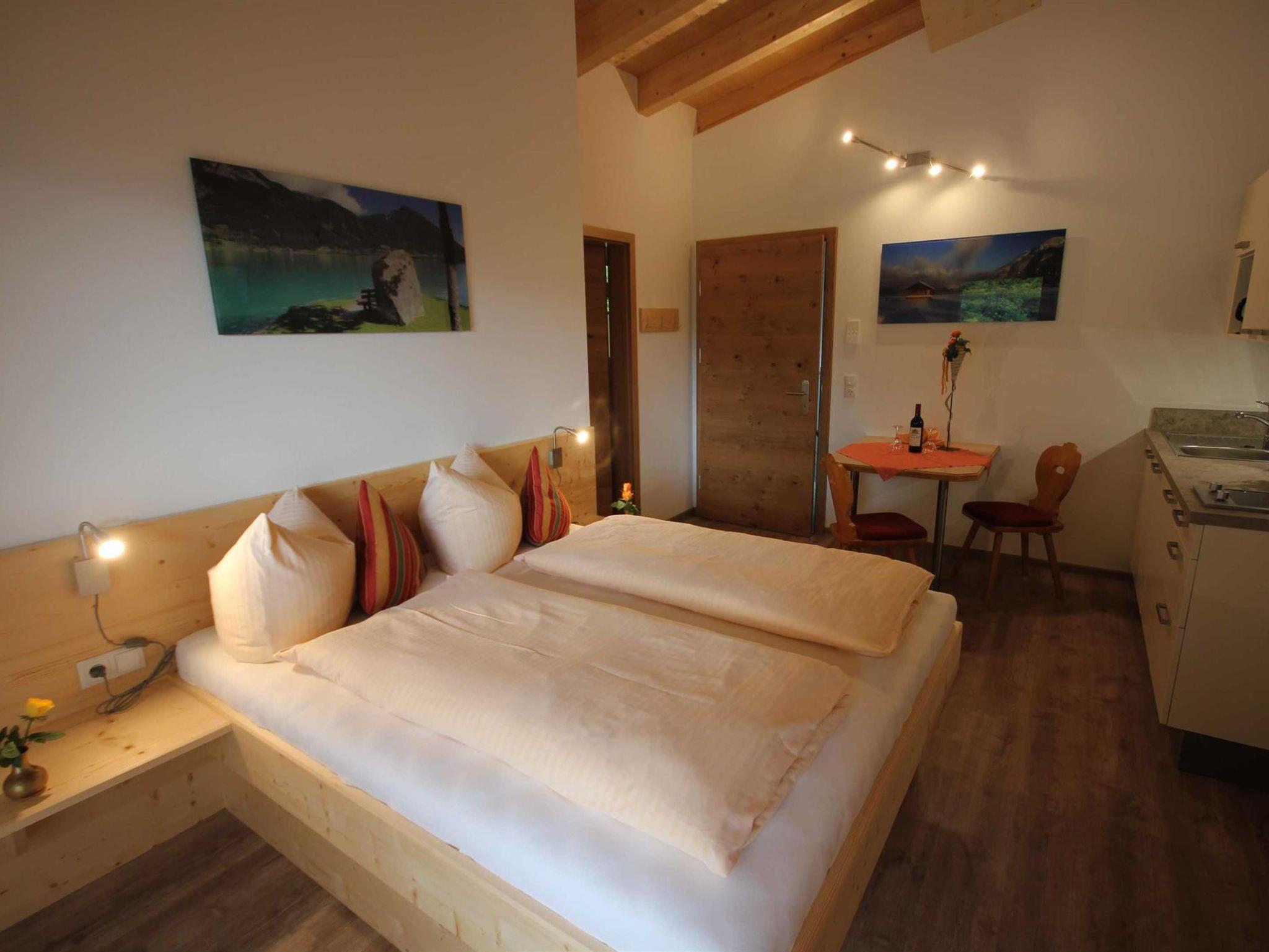 Das Einzimmerappartement „Weissenbach 2“ ist ca. 26m² groß, verfügt über ein Schlafzimmer mit Küchenzeile, Essecke, Fernseher, Badezimmer mit Dusche und WC, Terrasse und freies W-LAN.