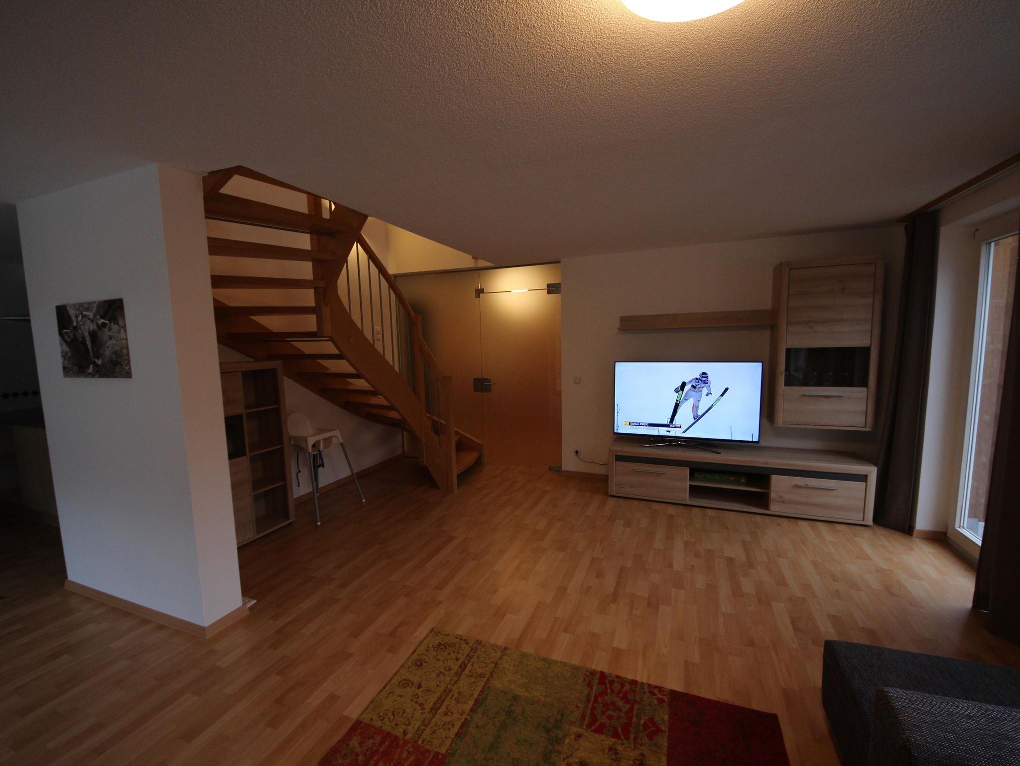 Ausgestattet ist das Appartement mit 2 Elternschlafzimmer jeweils mit 32 Zoll Samsung Smart TV, eines davon mit einem einem zusätzlichen Einzelbett, 1 Schlafzimmer mit 2 Einzelbetten, 1 Schlafzimmer mit einem Stockbett, einer Galerie mit Sofa (Ausziehcouch 150x200cm), einem Badezimmer mit Bad, Dusche und WC im OG, einem Badezimmer im EG und einem separaten WC im EG.