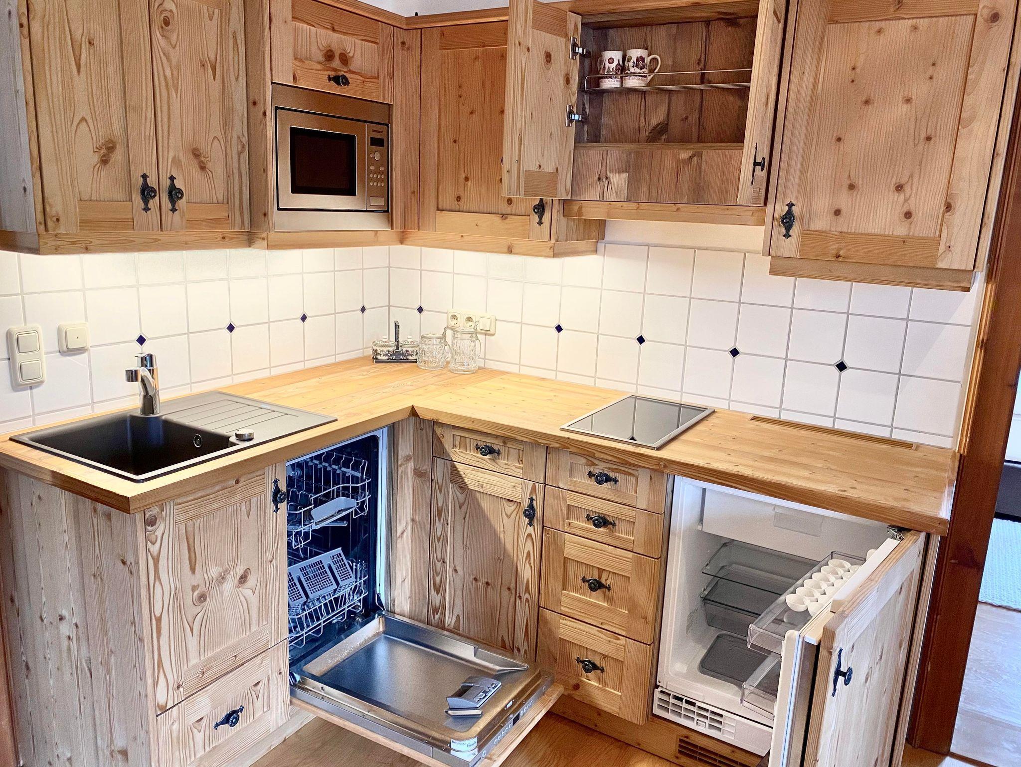 2 getrennte Schlafzimmer (1 Doppelbett und 2 Einzelbetten oder 1 schmäleres Doppelbett), Küche mit Esstisch, Badezimmer, Badewanne oder Dusche, sep. Toilette