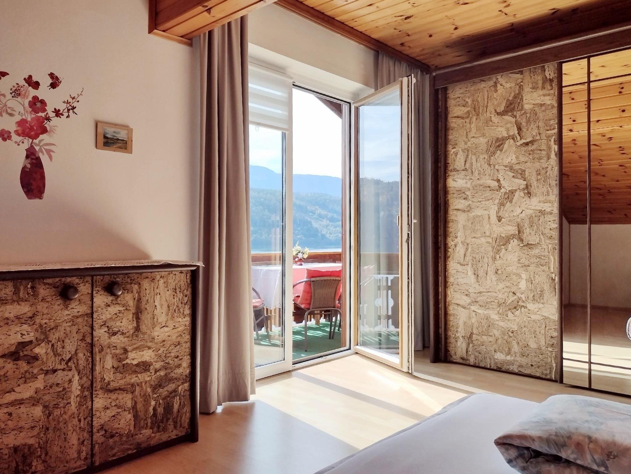 Es erwarten Sie 95m² Wohnfläche mit rustikalem Flair und viel Echtholzausstattung. Die 2 DZ verfügen über französiche Betten, große Kleiderschränke bieten viel Stauraum und gemütliche Leseecken lassen Sie den Alltag vergessen. Der gemeinsame Balkon, nach Süden hin ausgerichtet, animiert zum Entspannen und bietet einen einzigartigen Ausblick auf den Millstätter See und die umliegende Bergwelt.