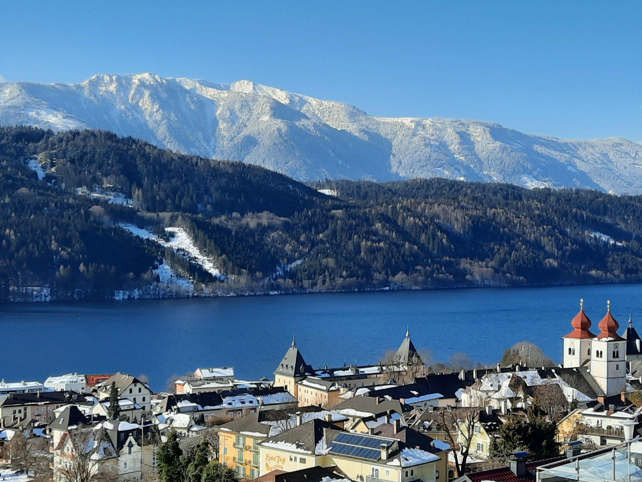 Beginnen Sie Ihren Urlaubstag mit einem großartigen Blick von Ihrem Balkon auf den Millstätter See.