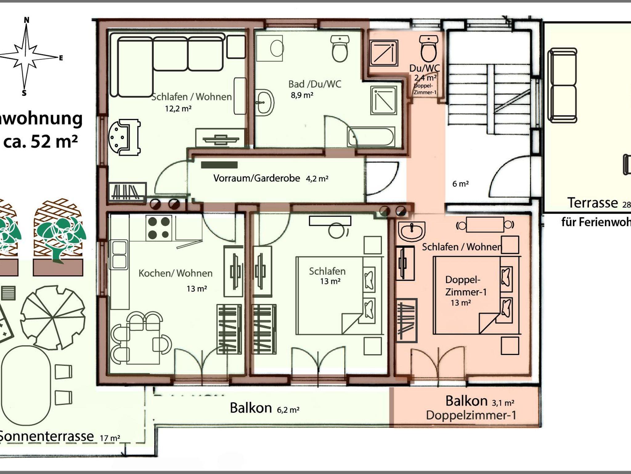 Tipp: Bei Nutzung für 4 Personen steht Ihnen auf derselben Etage ein extra Doppelzimmer