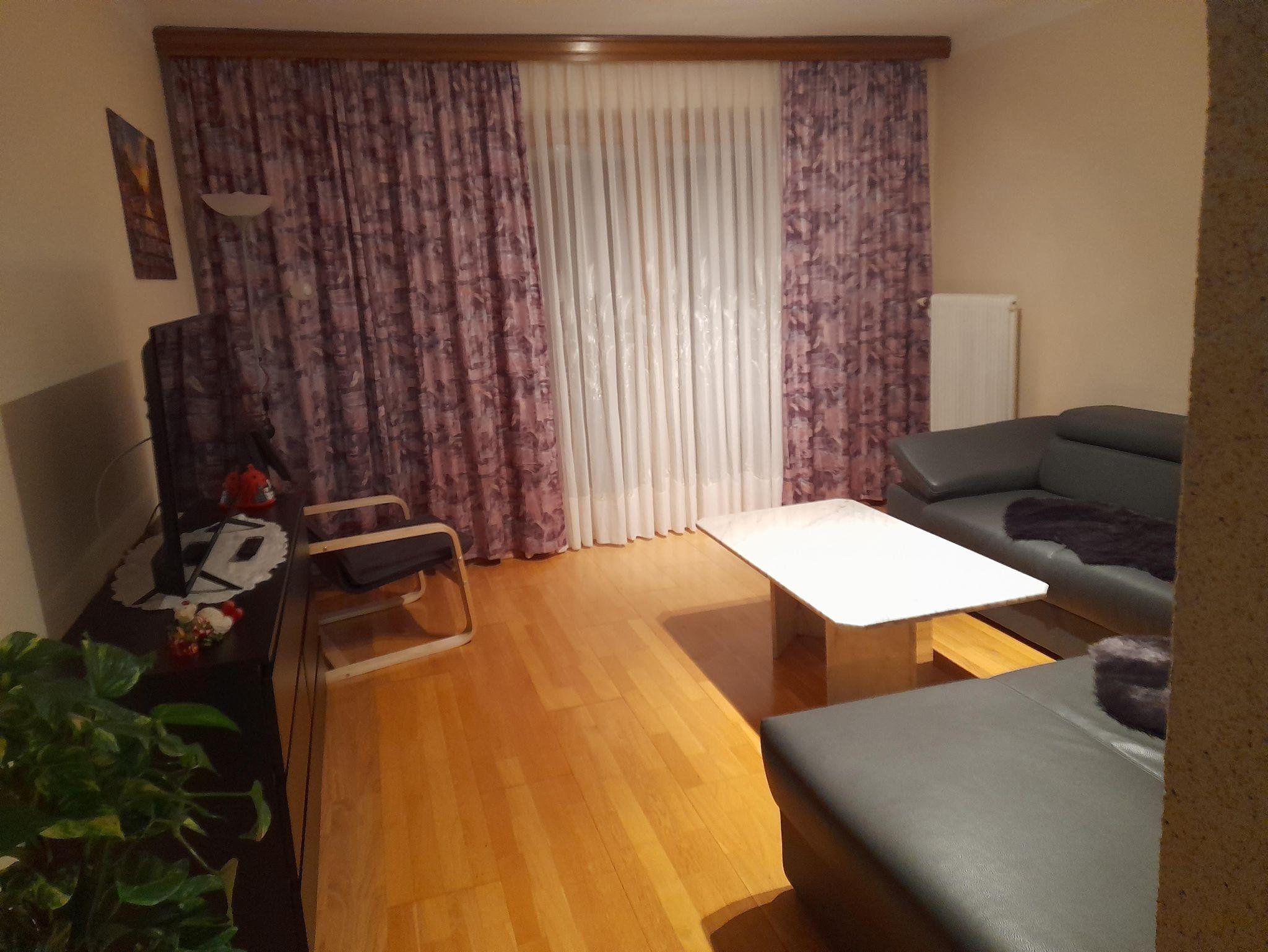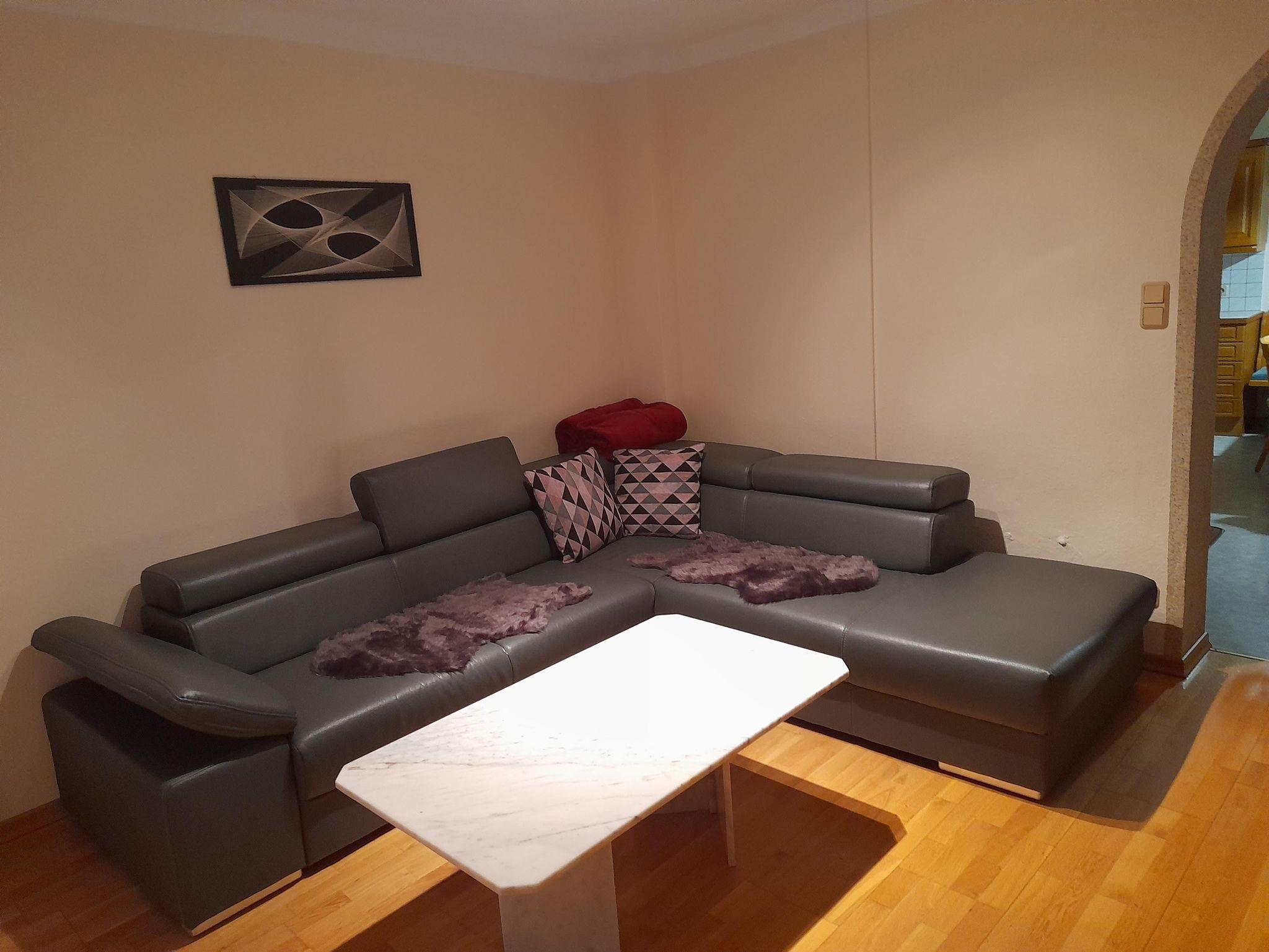 eine voll ausgestattete Küche mit angrenzendem Wohnzimmer, Fernseher , Sat, Wlan,