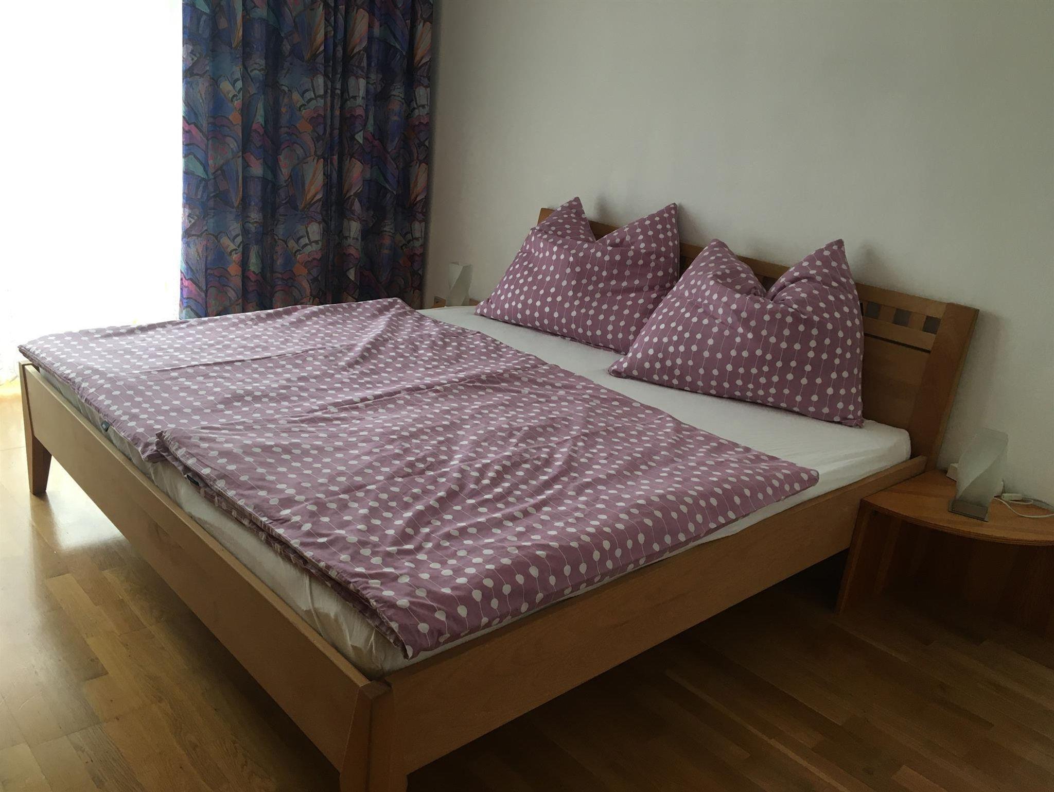 Das Appartement verfügt über zwei Schlafzimmer, ein Bad mit Dusche und Badewanne, eine Waschmaschine, ein WC,