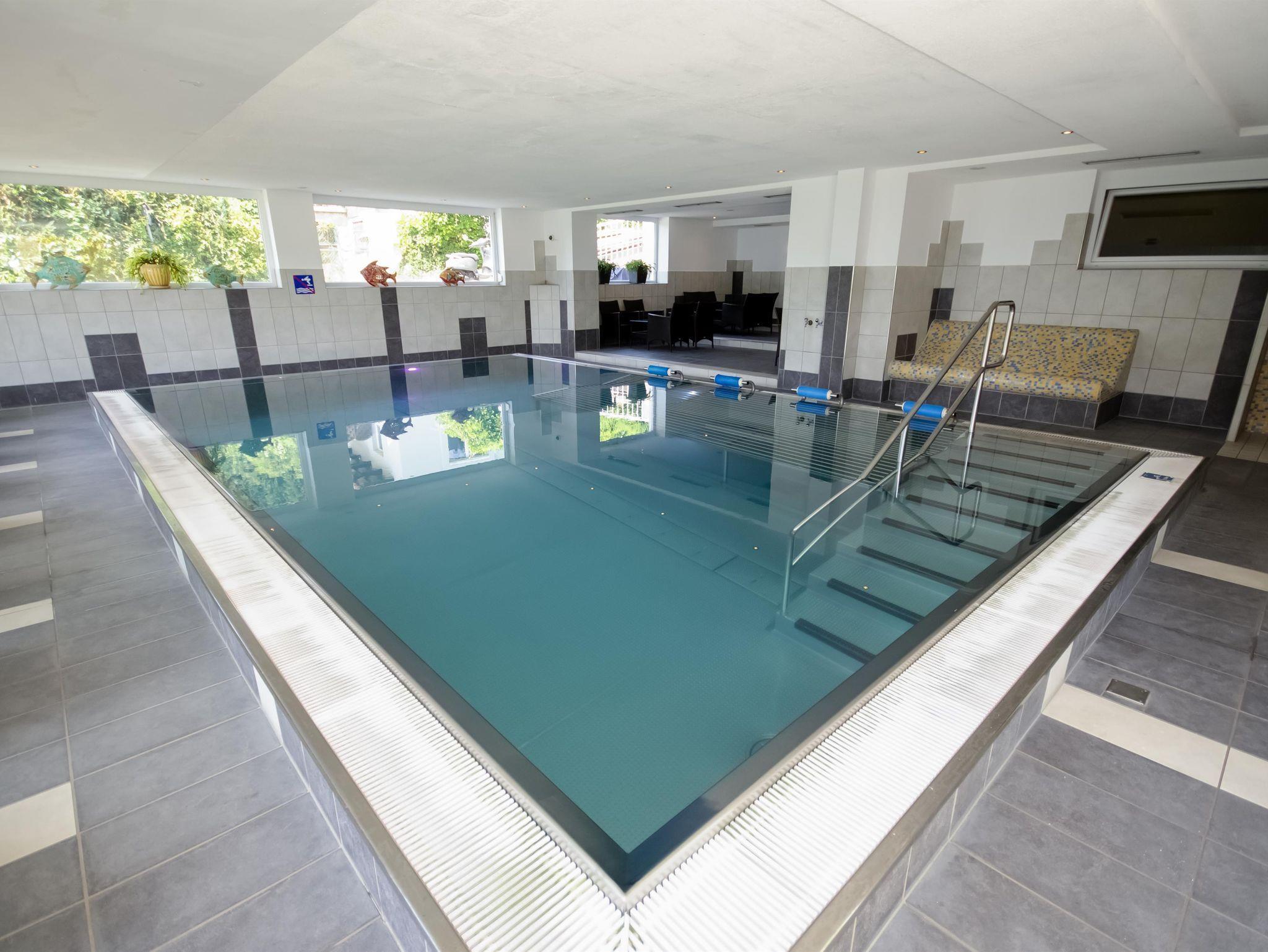 • Beheiztes Hallenbad mit Sprudelliegen, Wärmebank und Unterwassermassagedüsen
