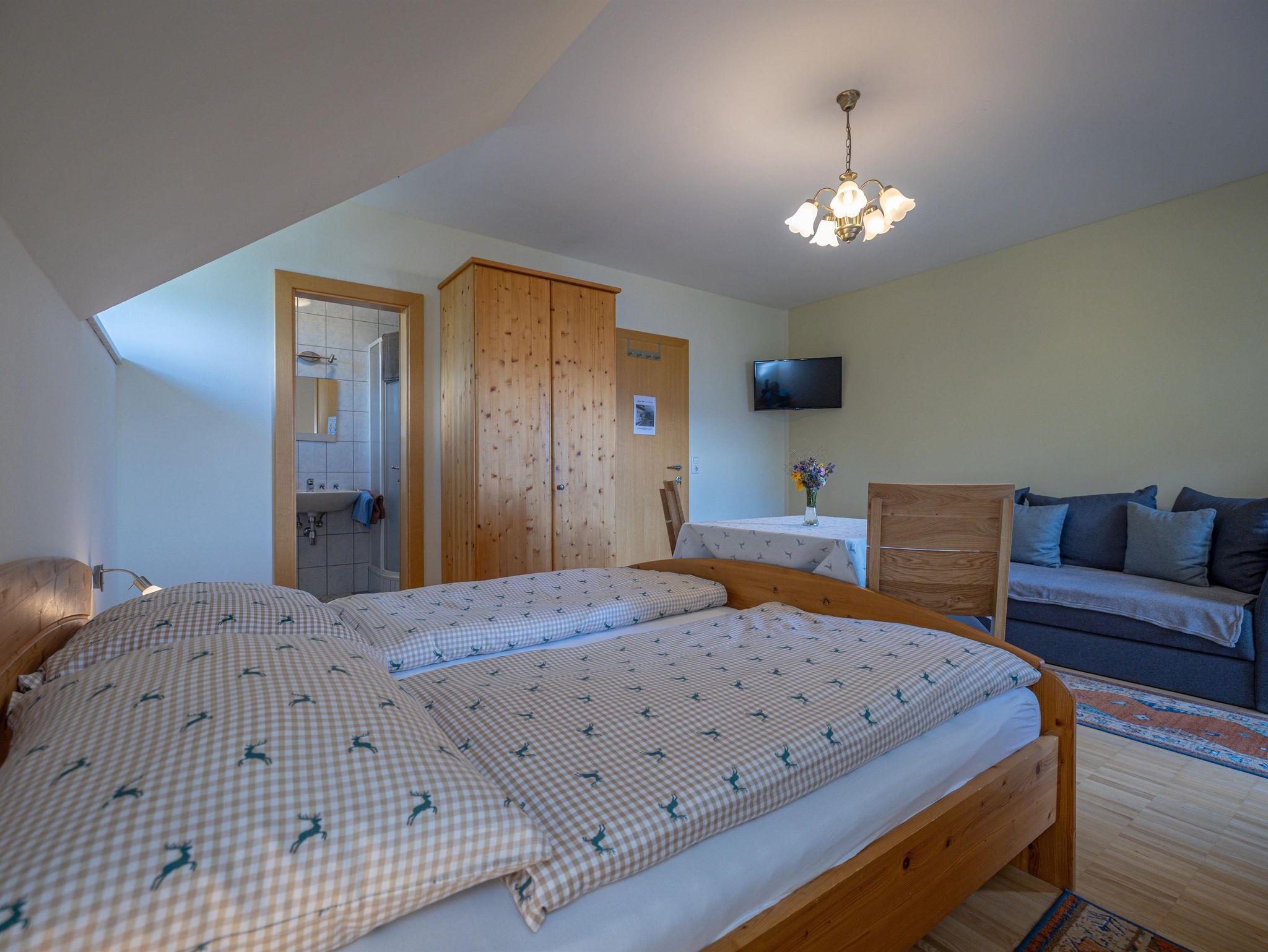 Unser Hof liegt auf einer Anhöhe mit einer herrlichen Aussicht auf den Millstätter See. Von Ihrem Balkonzimmer und den drei neuen Ferienwohnungen können Sie diese Aussicht ebenfalls genießen. Unsere Ferienwohnungen sind 65 m2 groß und haben zwei seperate Schlafräume.