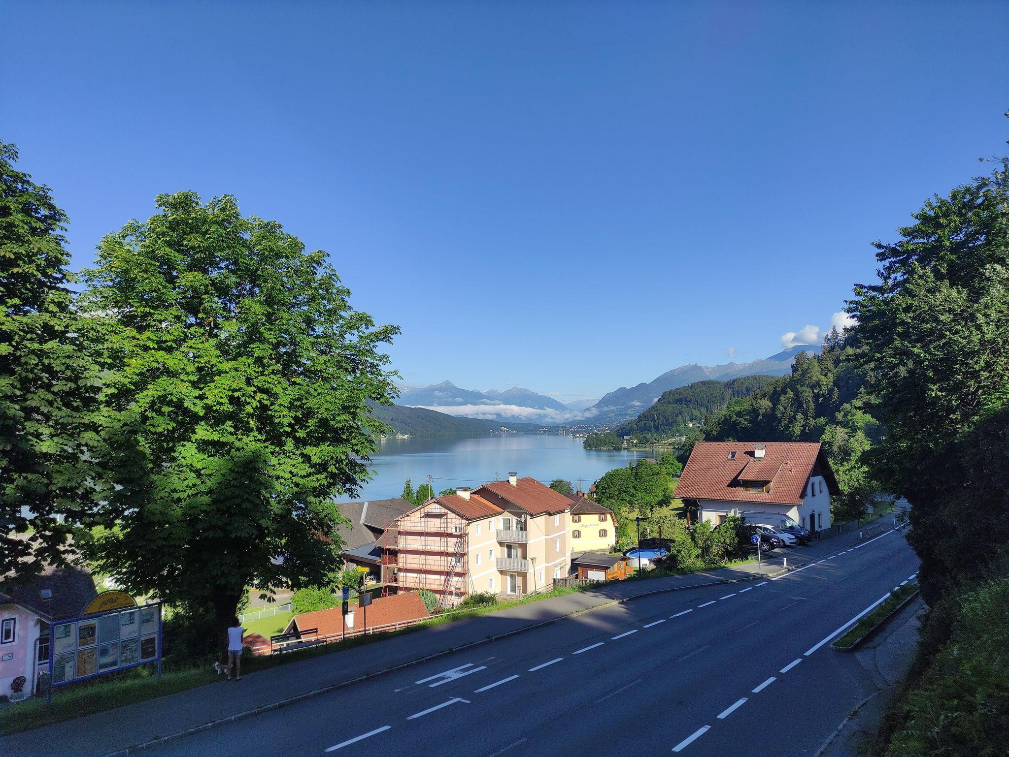 Ein fantastischer Fernblick von über 25 km über See und zu den Bergen der Reiseckgruppe und den Hohen Tauern bietet sich von unseren sehr gut ausgestatteten Balkon- und Terrassenzimmern.