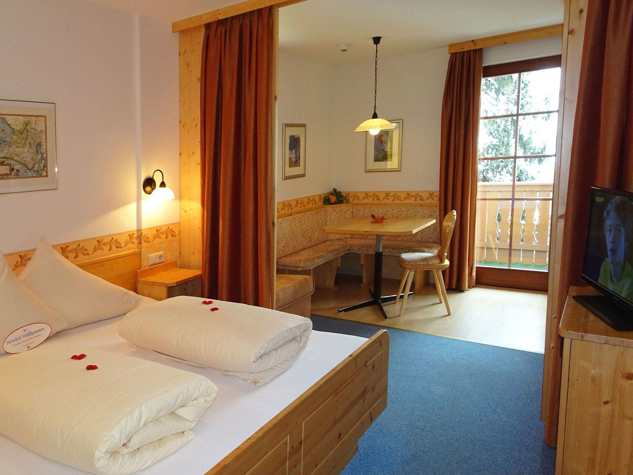 Gemütliches und geschmackvoll eingerichtetes Doppelzimmer mit Zusatzbett, Kitchenette und Essecke. Möblierter Balkon mit herrlichem Blick auf das malerische Ortsbild, den See und die Berglandschaft Oberkärntens. Ausstattung: Doppelbett und optisch abtrennbares Extrabett. Nutzbar auch für einen dritten Erwachsenen zum Kinderpreis. Küchenzeile mit Kühlschrank, Kochplatte, Wasserkocher und Spüle. Geschirr und Besteck vorhanden. Gepflegter Teppichboden, Tapeten, Vorhänge. SAT-TV. Verfliestes Bad mit Fön, Hand-/Badetüchern, Seifenspender, Kosmetiktüchern. Nichtraucher – Zimmer, Aschenbecher am Balkon.. Lage: Im 2. Stock, Richtung Süd/Ost. Zentralheizung. AUF ANFRAGE: Halbpension (nicht in unserem Haus, Partner Restaurant in 500 Metern Entfernung), Haustiere. HINWEIS: Nicht immer stehen alle freien Kontingente online buchbar zur Verfügung. Fragen Sie bei Bedarf bitte an, wir helfen Ihnen gerne weiter.