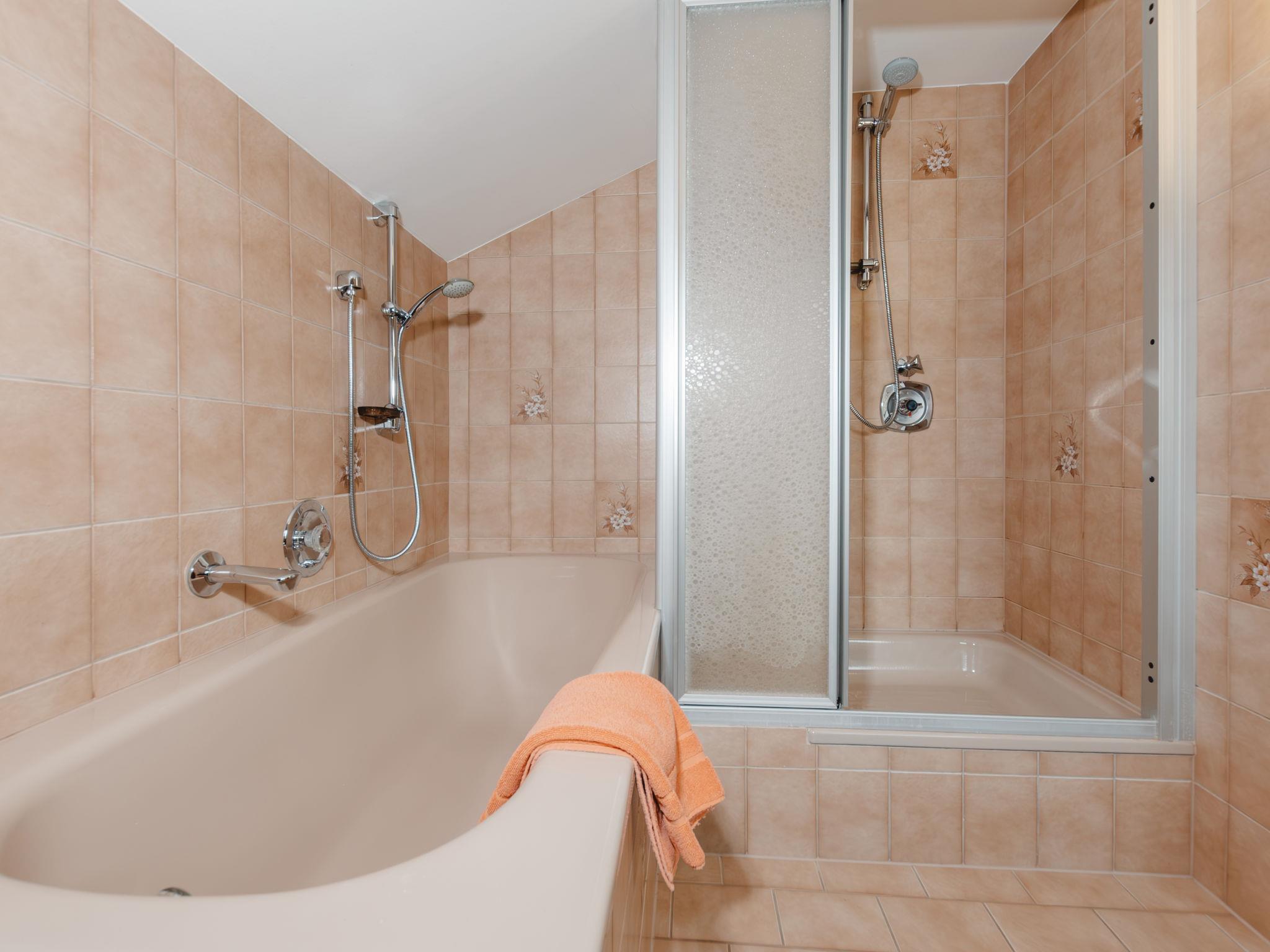 13-room apartment 400 m2 on 3 levels. Cosy and wooden furniture furnishings: entrance hall. Large living/dining room with satellite TV. Exit to the terrace. Kitchen (4 hot plates, dishwasher, microwave, freezer, grill, electric coffee machine) with dining table. Sep. WC. On the lower ground floor: shower, Sauna. Upper floor: 4 double bedrooms, each room with shower/WC. 1 room with 2 beds, 1 double bed and shower/WC. Exit to the terrace. Kitchen (oven, 4 ceramic glass hob hotplates, kettle, electric coffee machine) with dining table. 2nd upper floor: 2 double bedrooms, each room with shower/WC. Exit to the balcony. 1 room with 1 bed and shower/WC. 1 double bedroom with shower/WC. 1 double bedroom. Small kitchen (2 hot plates) with dining table. Exit to the balcony. Bath/WC, sep. WC. Solar energy heating, oil heating. Carpet. 2 balconies, terrace. Terrace furniture, balcony furniture, box-room. Marvellous panoramic view. Facilities: children's high chair, baby cot. Internet (WiFi, free). Please note: non-smokers only. Maximum 2 pets/ dogs allowed. Private entrance, smoke alarm. When there are less than the maximum number of guests staying at the property, not all of the housing units will be available for use. REG.NR.:50605-006021-2020
