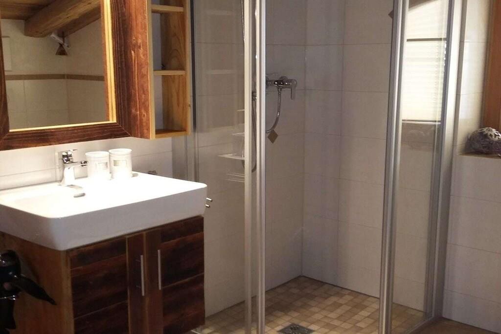 Our holiday apartment is lovingly furnished with a visible old wooden roof truss and a Swiss stone pine bedroom. Direct access to the high moor cross-country ski trail.