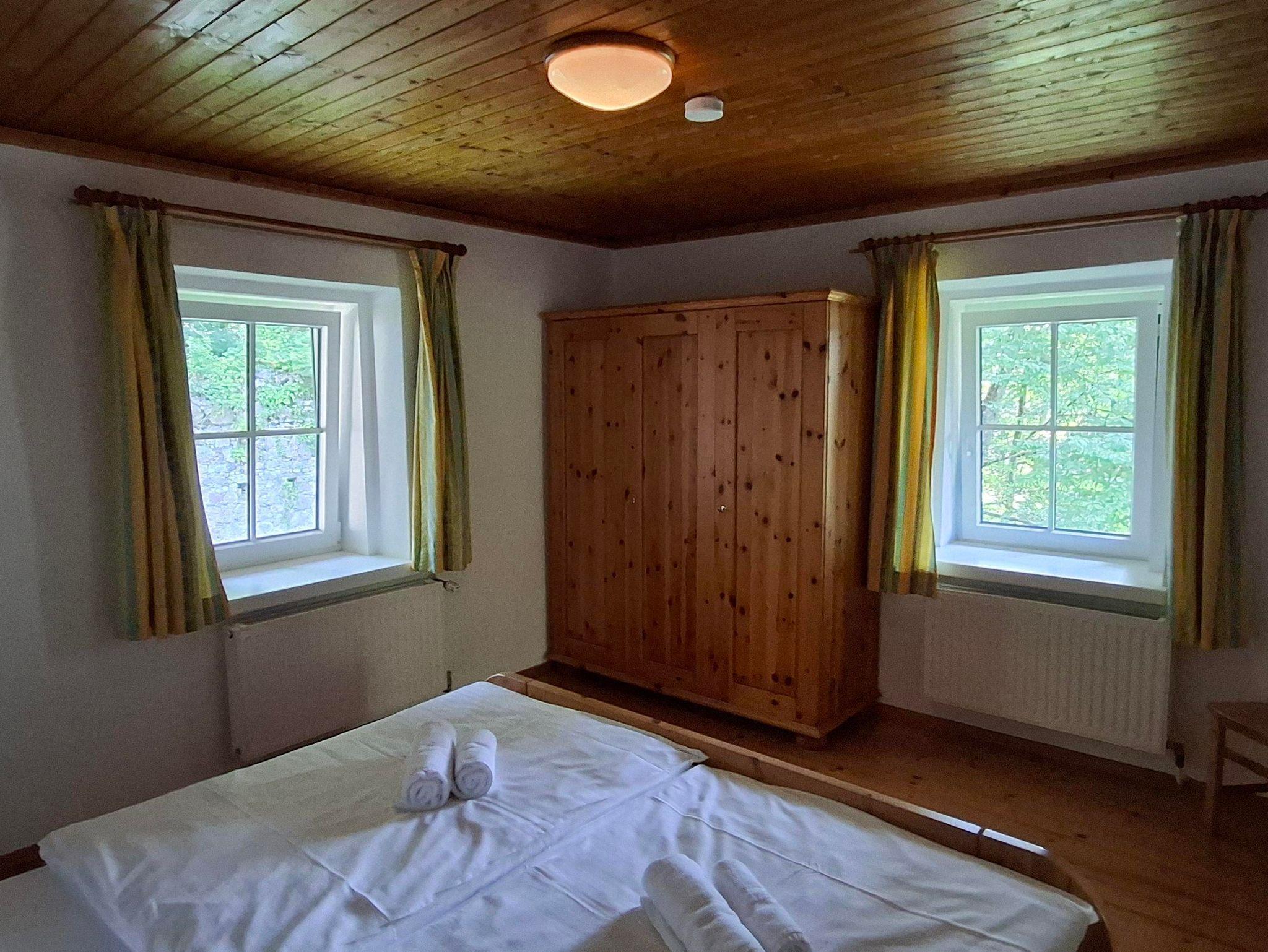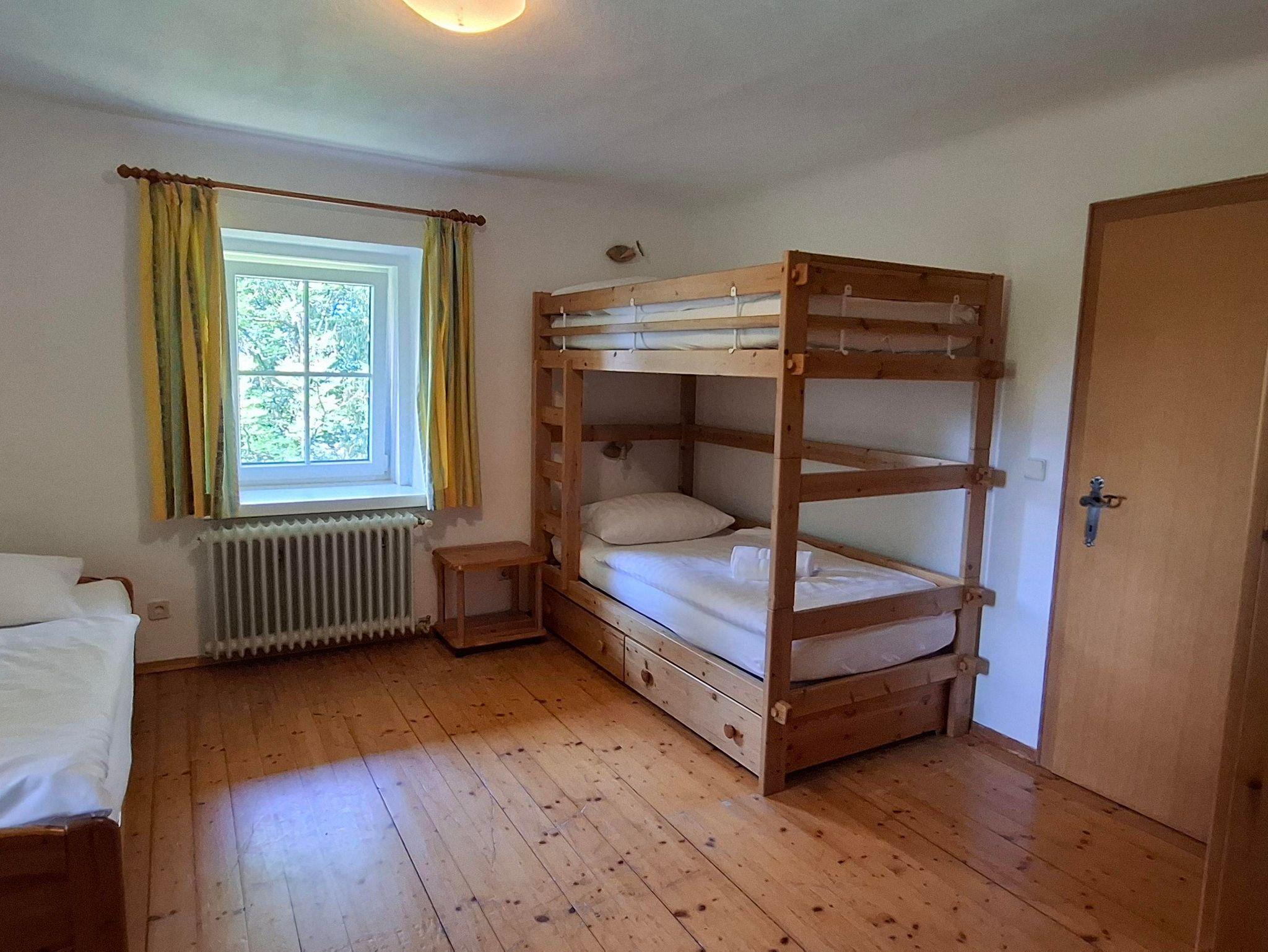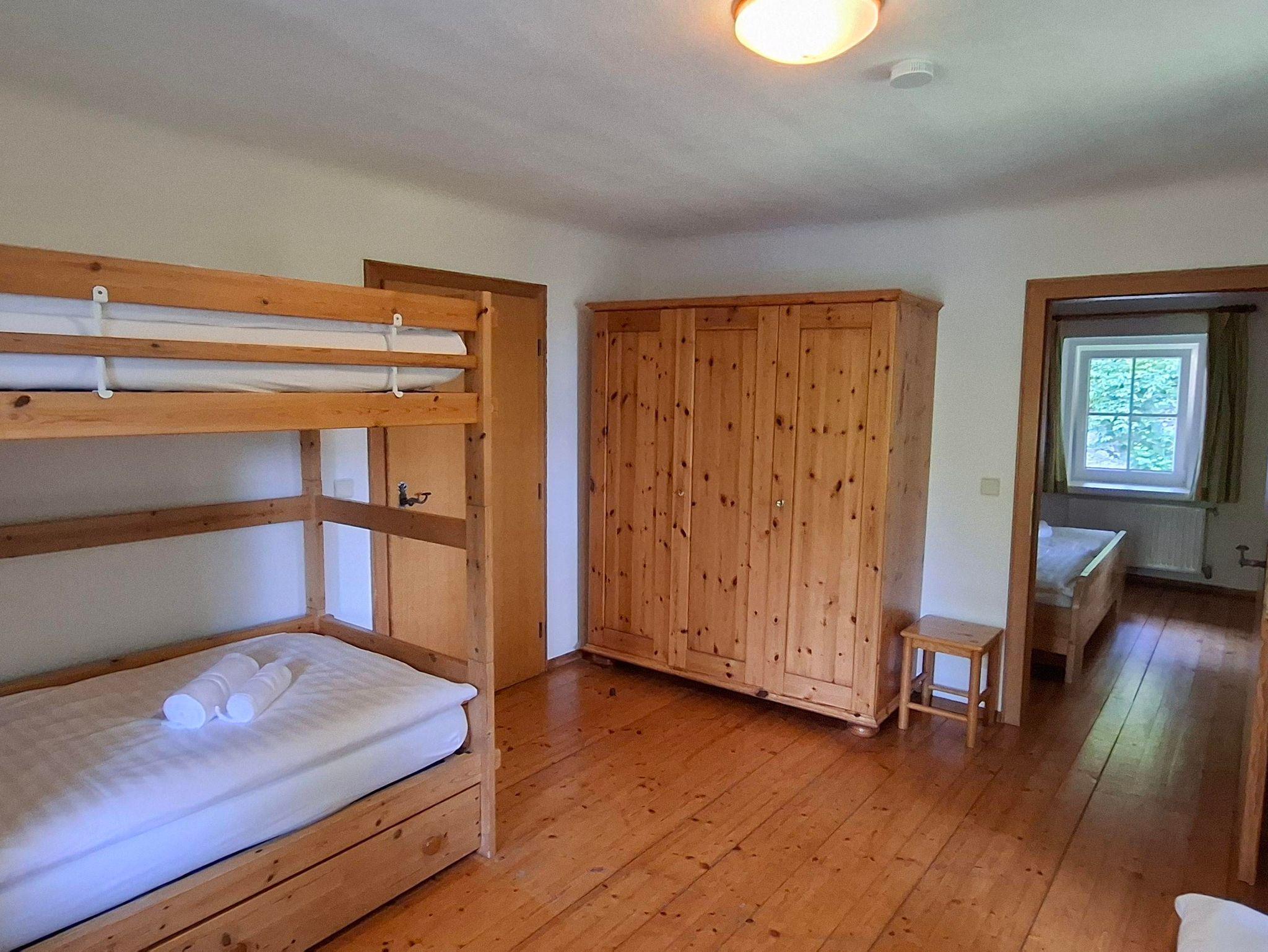 Die sonnige Lage, die abgeschlossene Atmosphäre und die große Liegewiese rund um das Haus lassen einen die schönsten Tage im Jahr so richtig genießen. Apartment Altes Forsthaus 8: für 2-8 Personen, ca. 80 m² im 1. Stock, 1 Doppelbettzimmer, 1 Vierbettzimmer (1 Stockbett, 1 Einzelbett und ein weiteres optionales Einzelbett zum Ausziehen), großer Wohnraum mit Doppelschlafcouch, Koch- und Essecke, Bad, WC, Vorraum. Ab einem Aufenthalt von zwei Nächten verrechnen wir eine Endreinigungspauschale von € 40,-- pro Aufenthalt. Zusätzlich wird die Ortstaxe mit € 1,25 pro Person verrechnet. Kinder und Jugendlich bis 17 Jahre bezahlen keine Ortstaxe.