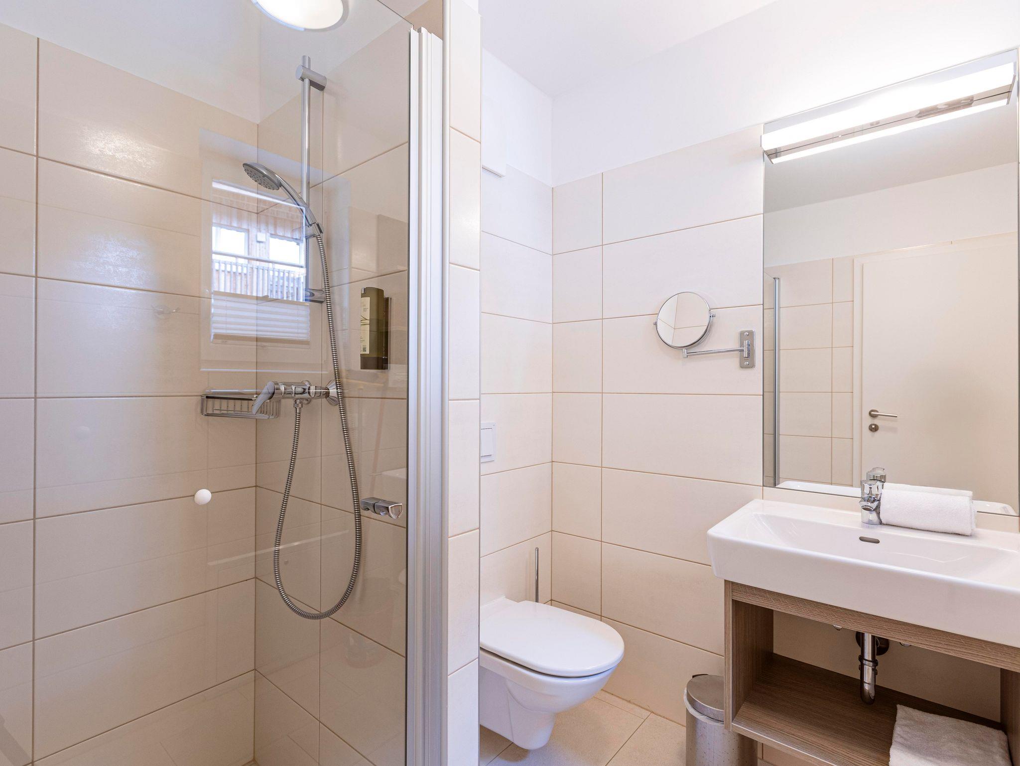 Das 75 m² große Chalet bietet auf 2 Ebenen Platz für bis zu 8 Personen. Ausgestattet mit 2 Schlafzimmern, eines mit Doppelbett und ein weiteres mit 2 Stockbetten und einer Ausziehcouch im Wohnraum. Das Chalet verfügt über 2 Badezimmer mit Dusche und WC. Die voll ausgestattete Küche lädt zum gemeinsamen Kochen und Genießen ein. Besteck und (Koch-) Geschirr ist vorhanden, Herd, Backofen, Mikrowelle, Kühlschrank mit Gefrierfach und Geschirrspüler gehören ebenso zur Ausstattung wie Toaster, Wasserkocher und Kaffeemaschine. Ein kleines Starterset mit Geschirrspültab, Geschirrspülmittel (20 ml), Schwämmchen, Müllbeutel, Putz- und Geschirrtuch steht bei der Anreise bereit. Vom Balkon aus fällt der Blick auf die umliegenden Berge – und vielleicht Ihr nächstes Urlaubsabenteuer? WLAN ist selbstverständlich inklusive. Alle Bilder sind Beispielbilder. Jede Unterkunft ist individuell eingerichtet.