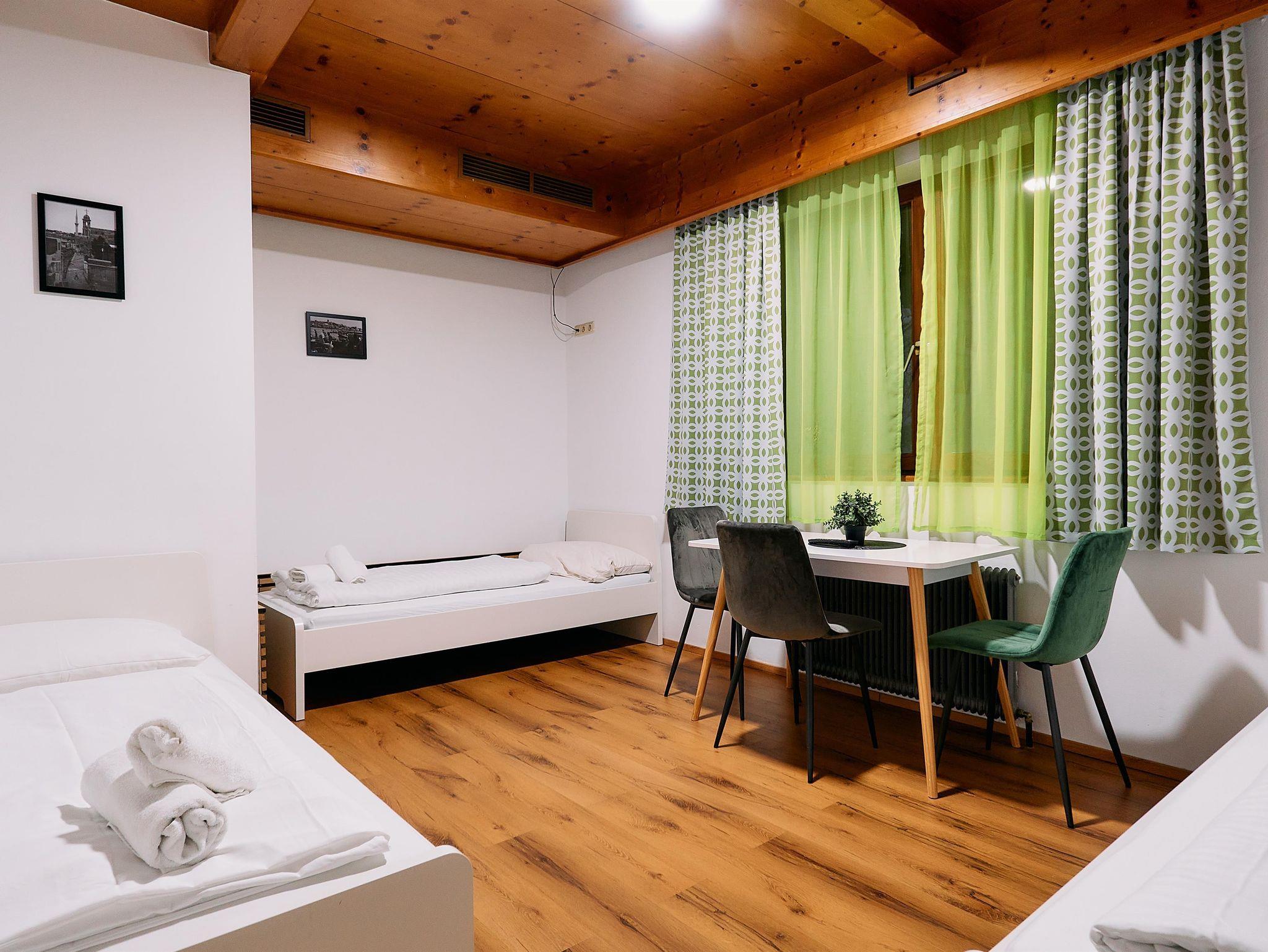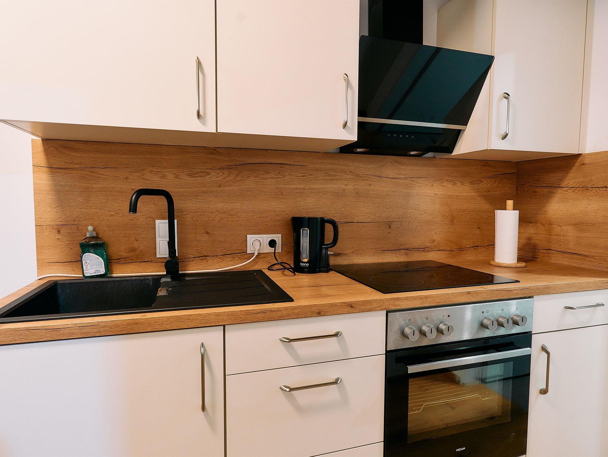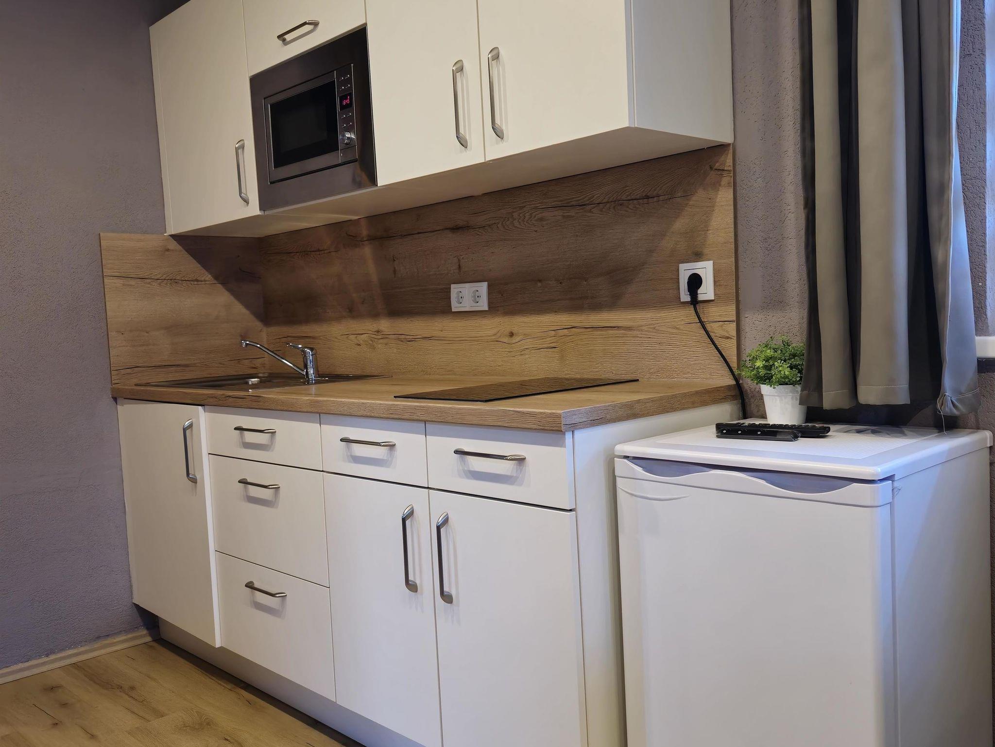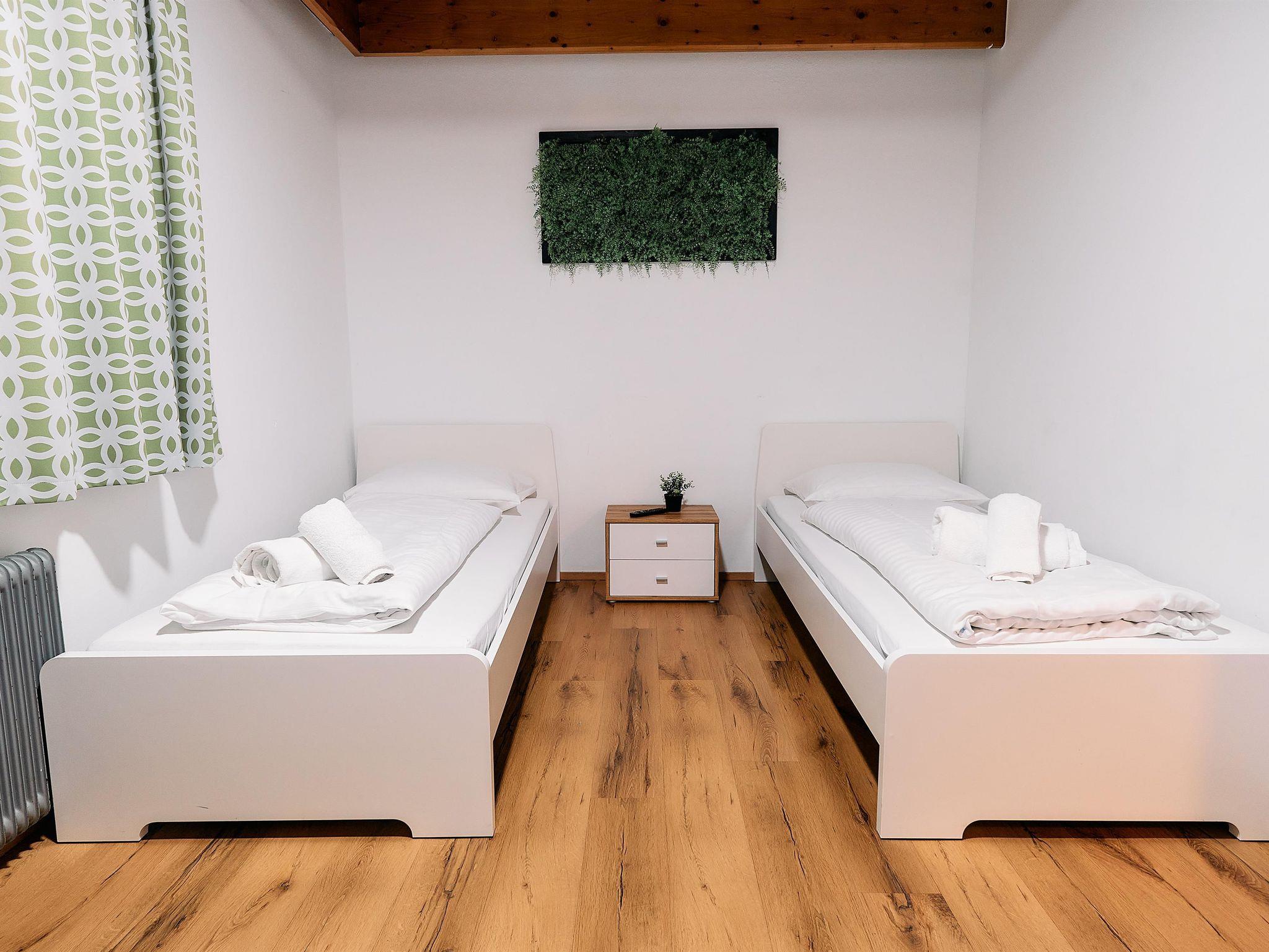 Dich erwartet ein Apartment mit 2 Schlafzimmern (1. 2 Einzelbetten / 2. 3 Einzelbetten), Küche und Badezimmer.