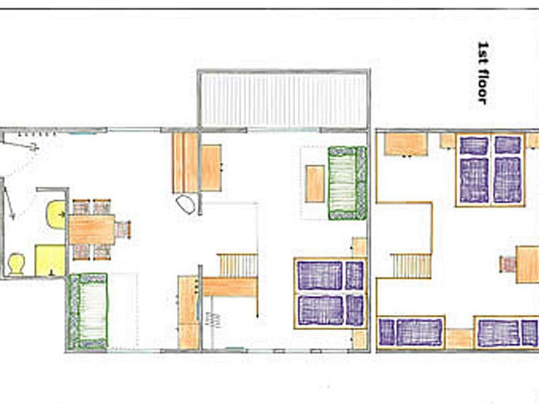 Das 78m² große Apartment bietet Platz für bis zu 8 Pers. mit 2 Schlafzimmer auf 2 Etagen, eine Wohnküche und ein Badezimmer. Es gibt keine Türen dazwischen.