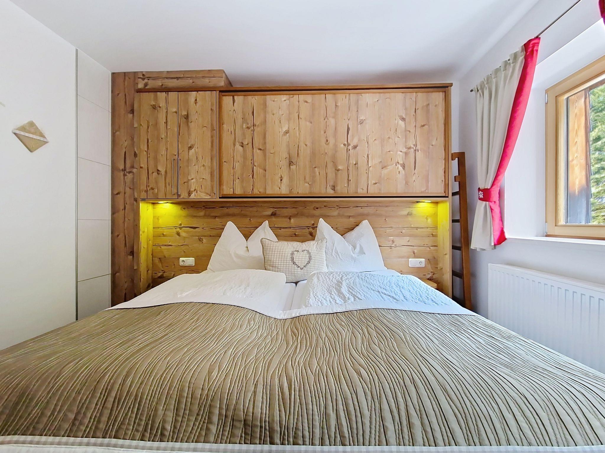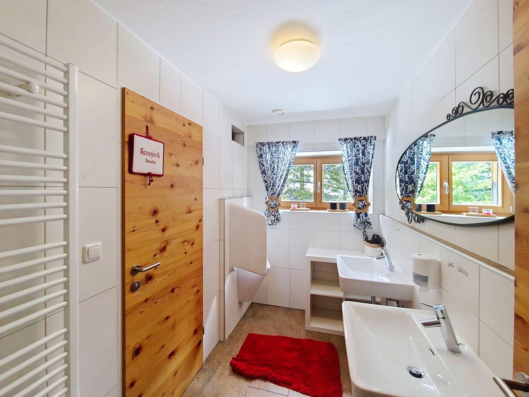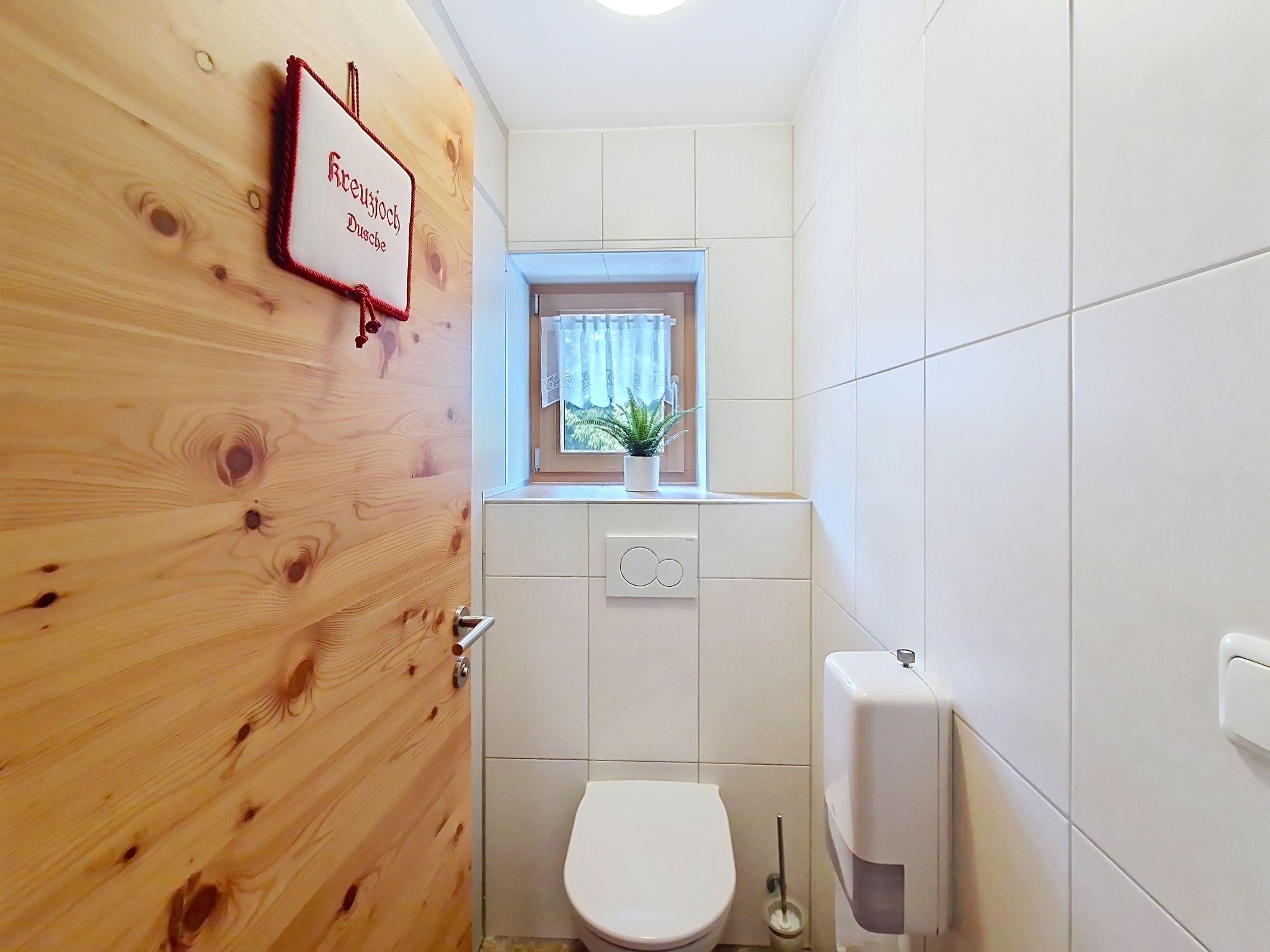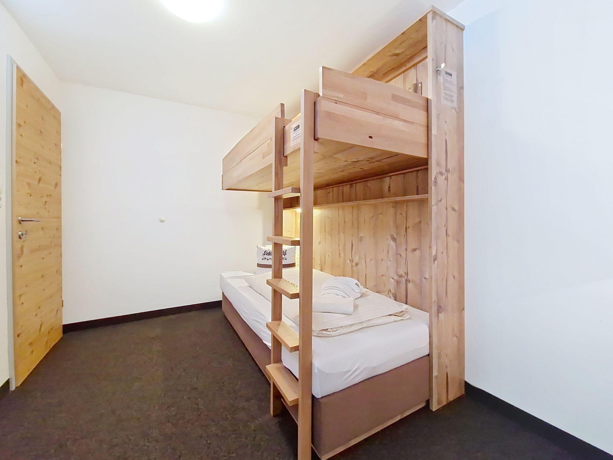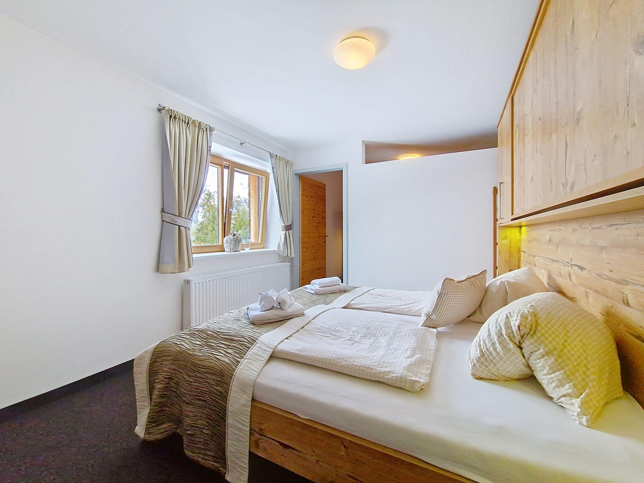 "Kreuzjoch", 2-room apartment 50 m2 on 1st floor. Tasteful and cosy furnishings: 1 double bedroom. Large kitchen-/living room (dishwasher, 4 ceramic glass hob hotplates, kettle, microwave, electric coffee machine) with bar, 1 x 2 bunk beds (90 cm, length 200 cm), dining nook and TV (flat screen). Shower/WC (private). Wood heating. Carpet. Very beautiful panoramic view of the mountains and the valley. Facilities: Internet (WiFi, free). Please note: fridge without freezer, non-smokers only. Smoke alarm, fire extinguisher.