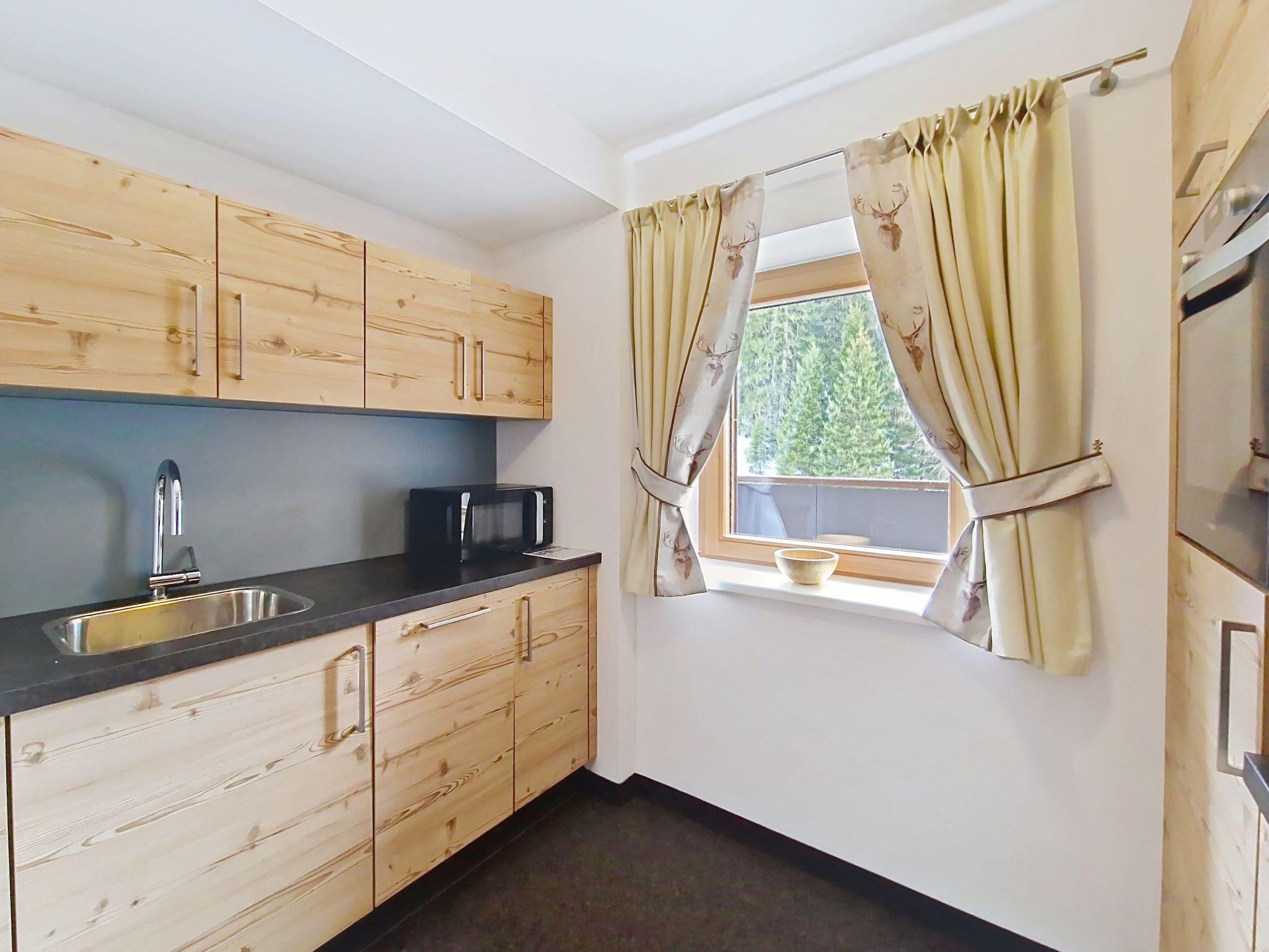 Navis: Modern, comfortable apartment block "Naviser Hütte", 1'785 m a.s.l., 3 storeys, renovated in 2024, surrounded by trees and meadows. Outside the resort, 5 km from the centre of Navis, in a secluded, quiet, sunny position, along the wooded area, in the woods. For shared use: garden, lawn for sunbathing. Terrace, children's playground (swing). In the house: restaurant, drying room, ski boot dryer. Available: sledges (10). 3 km long bumpy motor access to the house (mountain road). Parking at the house. Grocery 4.5 km, restaurant 4.2 km, bus stop 4.5 km, railway station "Matrei" 12 km. Hiking paths: 5 Almen Runde Naviser Tal 10 m. Please note: car recommended, no lift. Animals in the neighbourhood.