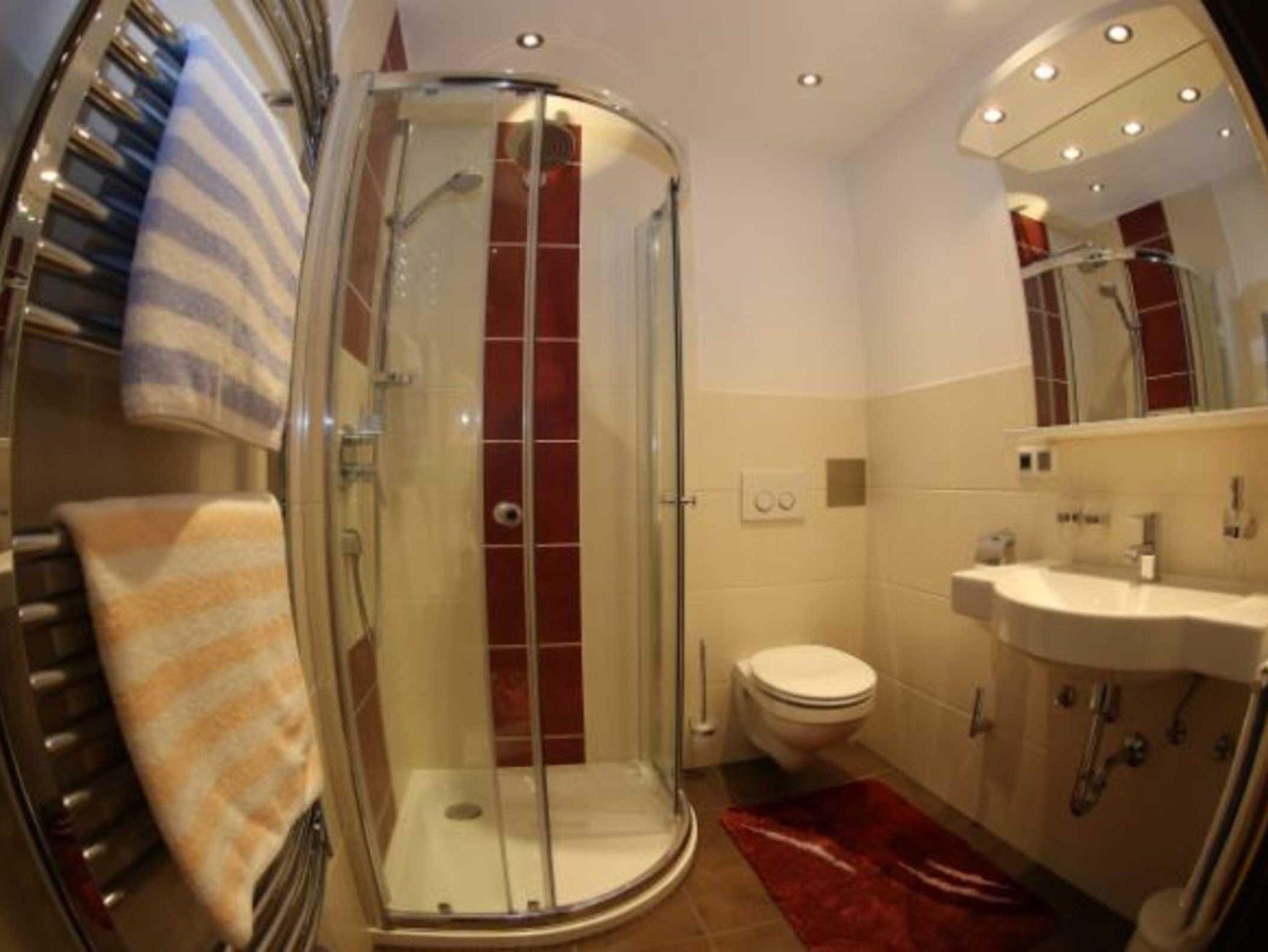 getrenntes Schlafzimmer mit Wendeltreppe und zusätzlicher Toilette, großes gemütlich eingerichtetes Wohnzimmer mit ausziehbarer Doppelcouch, 70 cm Stereo Fernsehgerät mit Sat Empfang, Telefon, Zimmersafe, Fön usw., Küchenzeile mit Essecke, Badezimmer mit DU u. WC, Vorraum mit Garderobe.