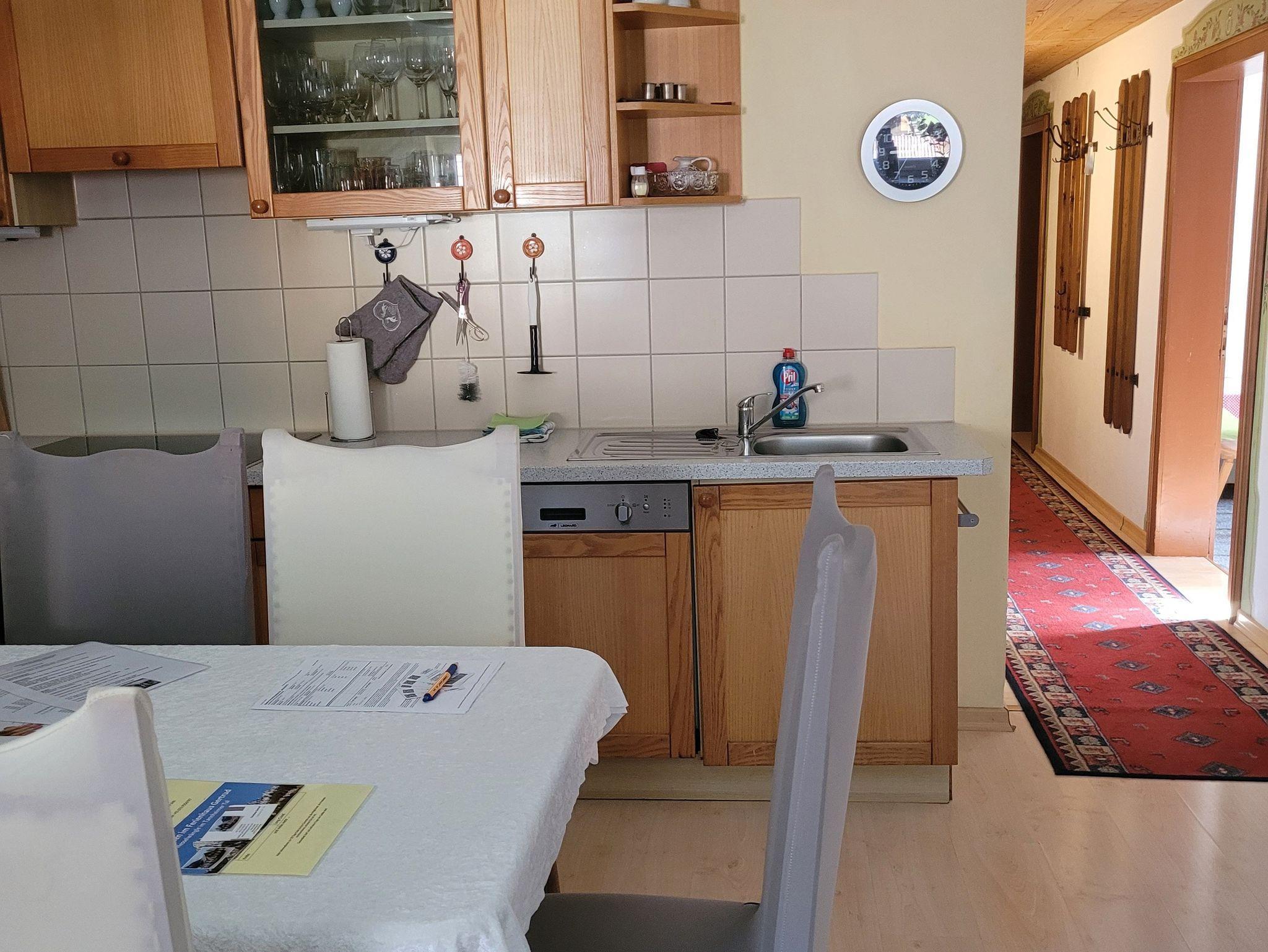 Die Ferienwohnung Alpenrose für 2 bis 8 (10) Personen besteht aus zwei Dreibettzimmern und einem Doppelzimmer. Sie verfügt über zwei Bäder mit Dusche/WC. (Handtücher, Fön und Bettwäsche werden gestellt.) Ebenfalls gehört eine komplett ausgestattete Wohnküche mit 25 m² (inkl. Geschirrspüler) mit Esstisch und Schlafcouch zur Ausstattung. SAT-TV und gratis WLAN stehen Ihnen ebenfalls frei zur Verfügung. Für Gäste mit Kleinkindern stellen wir, auf Wunsch, ebenfalls ein separates Babybett und ein Kinderhochstuhl bereit. PKW-Stellplätze sind ausreichend vor dem Haus vorhanden.