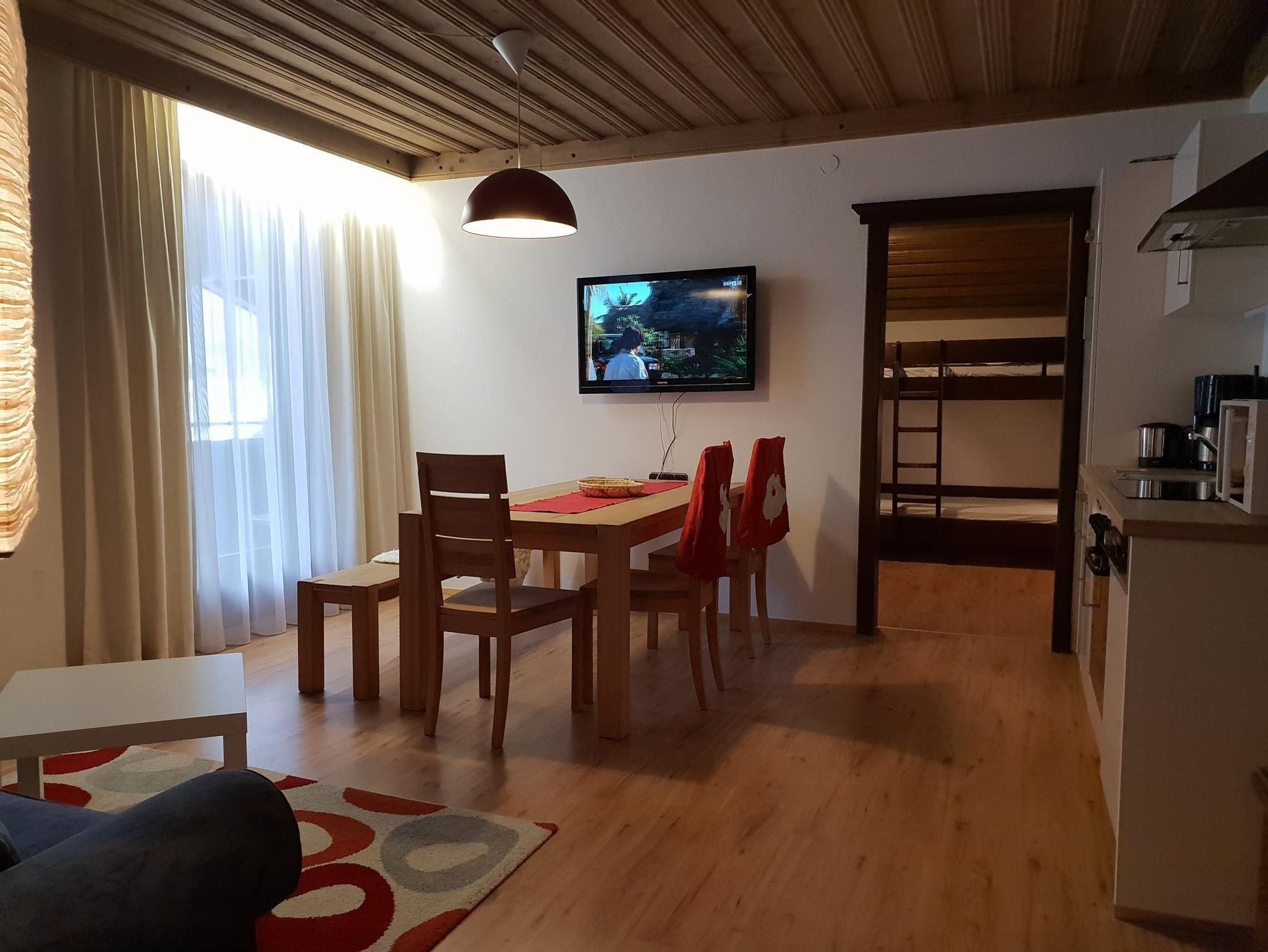 ca. 30 m²,moderner Landhaus-Stil: 2 getrennte Schlafräume (1x mit Doppelbett und 1x mit Stockbett oder Einzelbett & Schlafcouch), Balkon, Badezimmer mit Dusche und WC, Kabel-TV, Zimmersafe, wlan