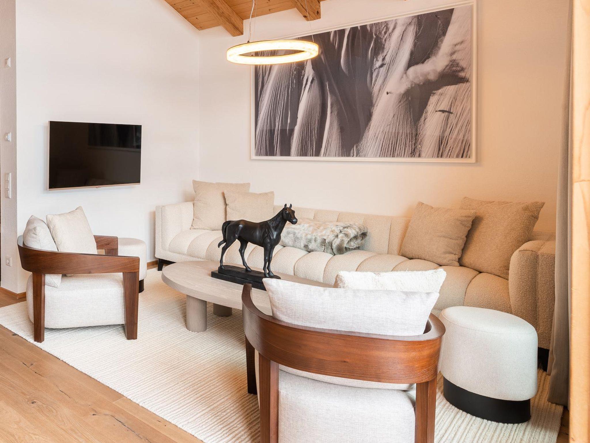 Das exklusive Alpen-Chalet bietet großzügigen Wohnkomfort und Platz für bis zu 8 Personen, einschließlich 2 Kindern. Die stilvolle Einrichtung kombiniert traditionelle Gemütlichkeit mit modernen Annehmlichkeiten und schafft eine einzigartige Wohlfühlatmosphäre.
