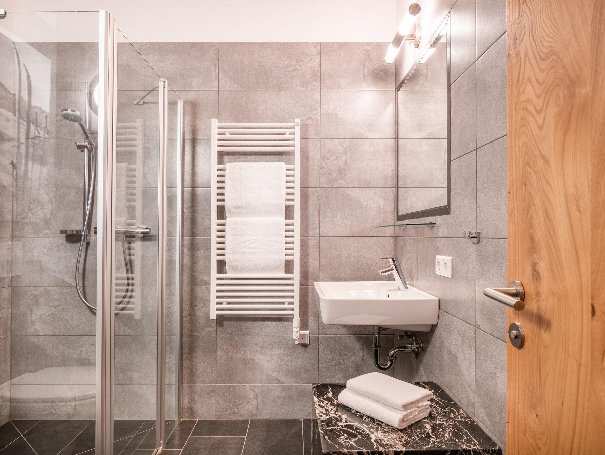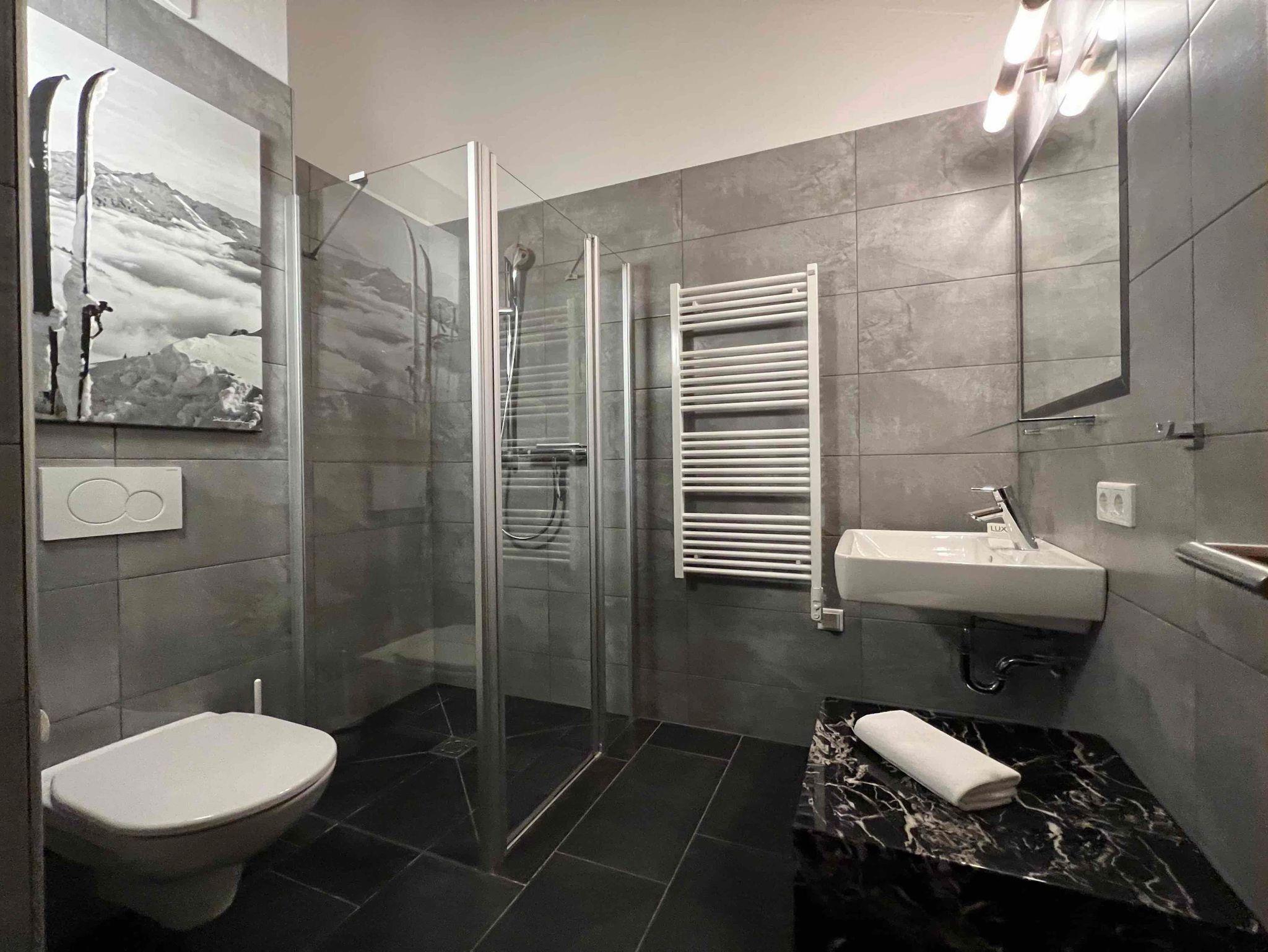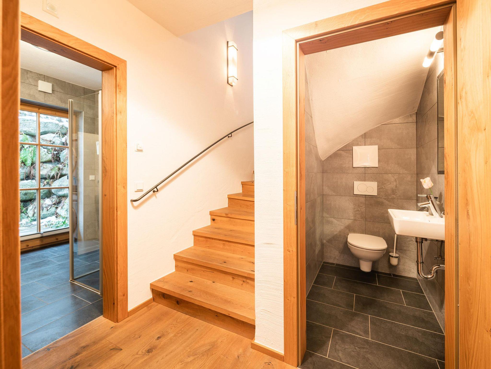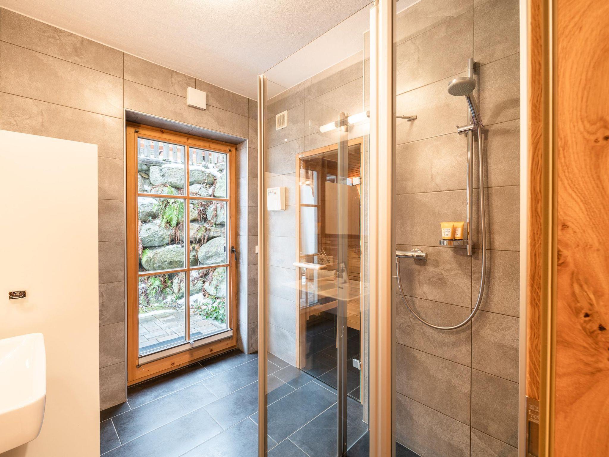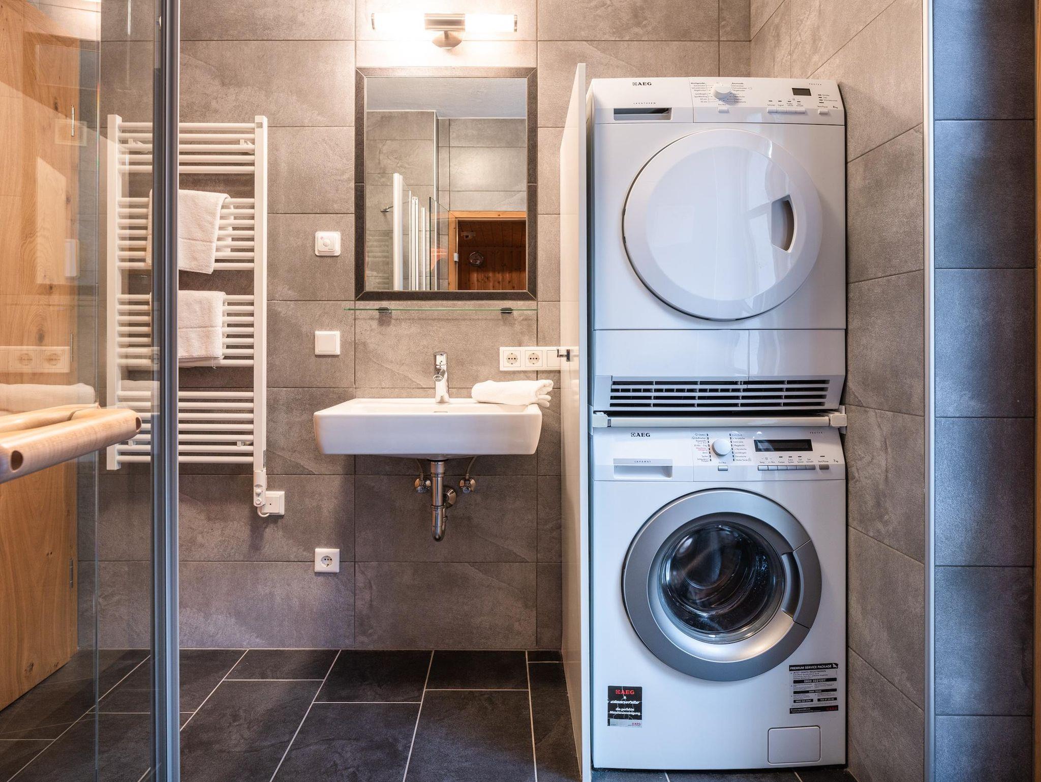 - Badezimmer: Dusche, Sauna, Waschbecken, Waschmaschine, Wäschetrockner