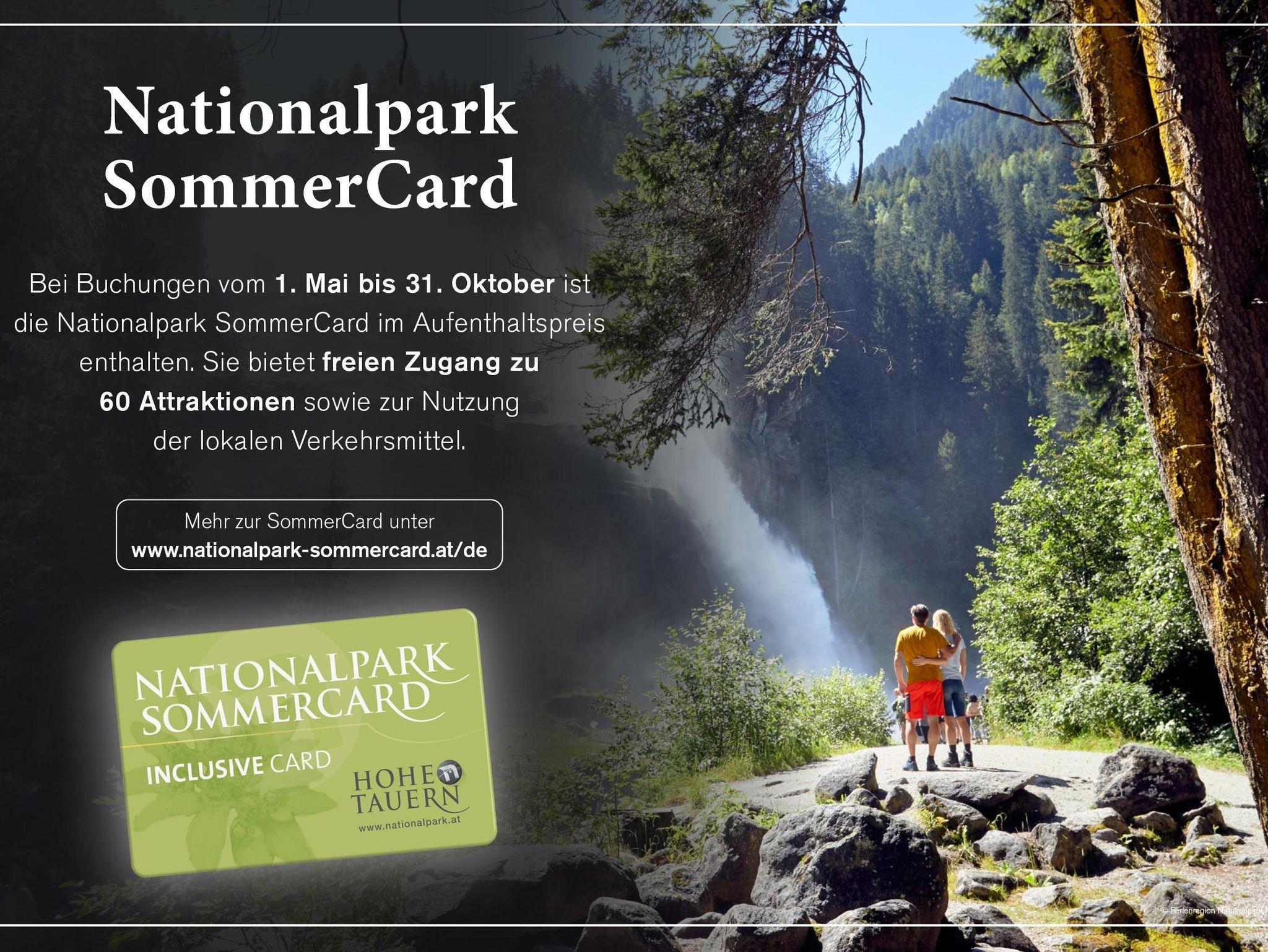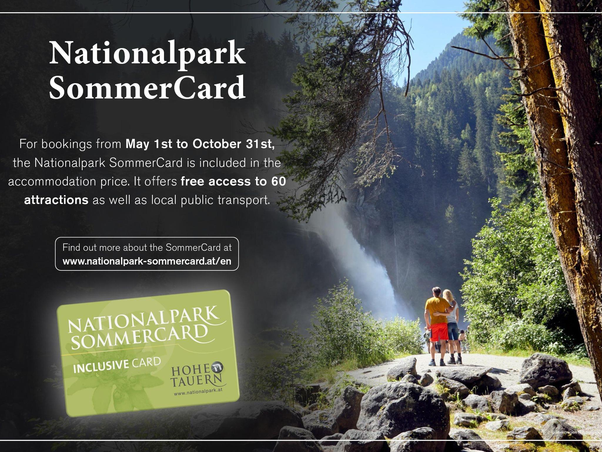 Bei Buchungen vom 1. Mai bis 31. Oktober ist die Nationalpark SommerCard im Aufenthaltspreis enthalten. Sie bietet freien Zugang zu 60 Attraktionen sowie zur Nutzung der lokalen Verkehrsmittel: