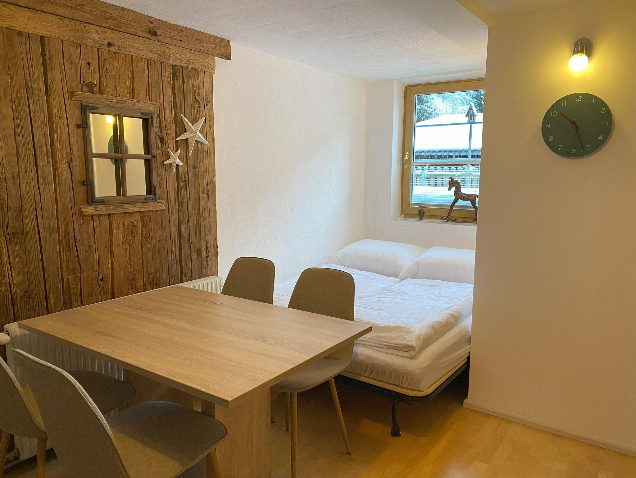 In dieser Wohnung befindet sich 1 Schlafzimmer mit ausziehbarer Couch (1,40x2,00m), großes Badezimmer mit Badewanne inkl. Duschvorrichtung und WC, 1 vollausgestattete Wohnküche mit einem dänischen Ofen und Sitzcouch (wäre auch ausziehbar). Kleiner Vorraum mit Garderobe. Skiabstellraum. ca. 50m²