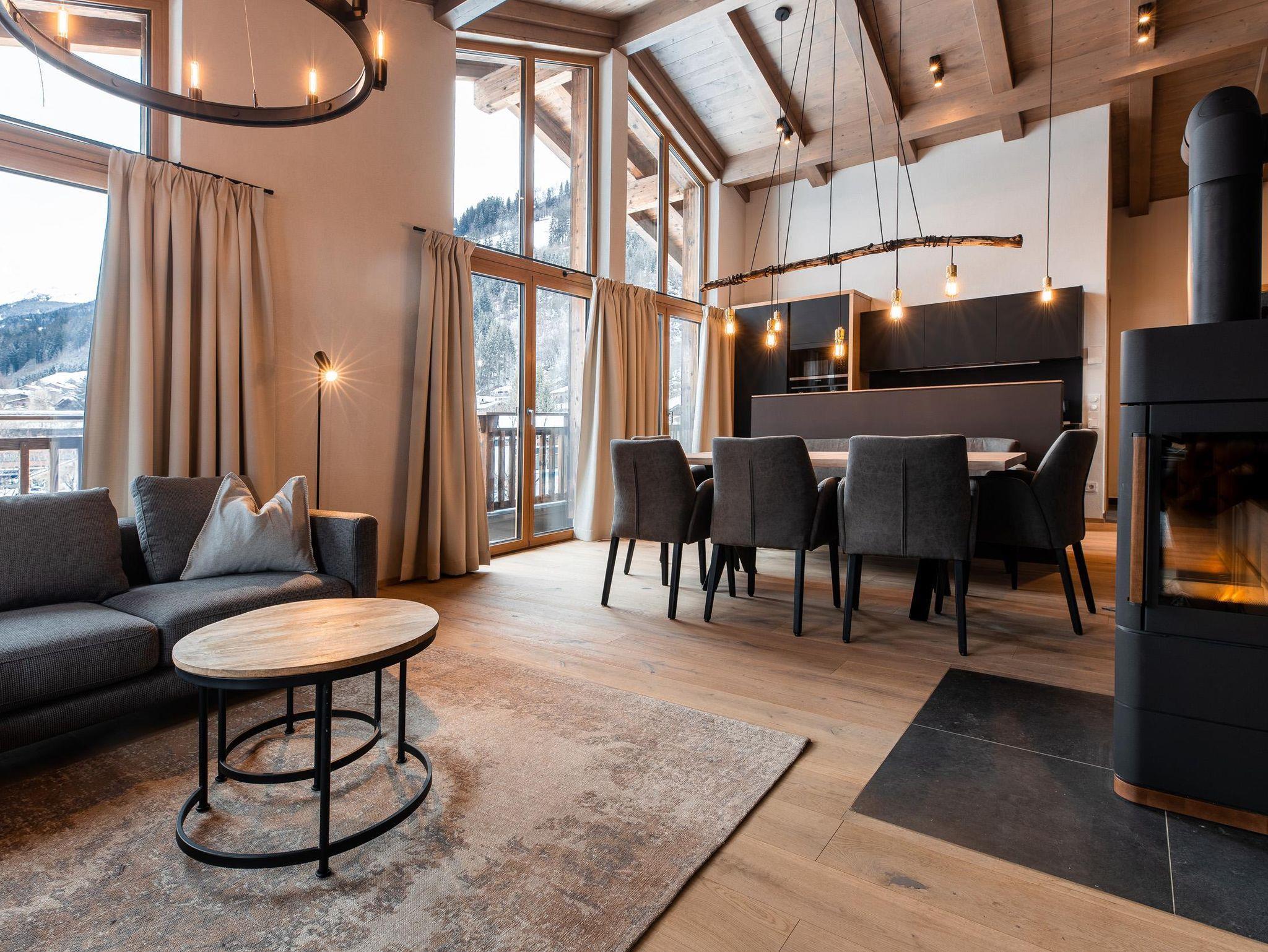 Alle Apartments und Penthouses der Wildkogel Resorts sind mit modernen Möbeln und traditionellen Materialien eingerichtet und verfügen über einen geräumigen Wohnbereich mit einem Flachbild-Sat-TV. Ihre Mahlzeiten können Sie in Ihrer modernen offenen Küchenzeile mit einem Essbereich zubereiten und genießen.