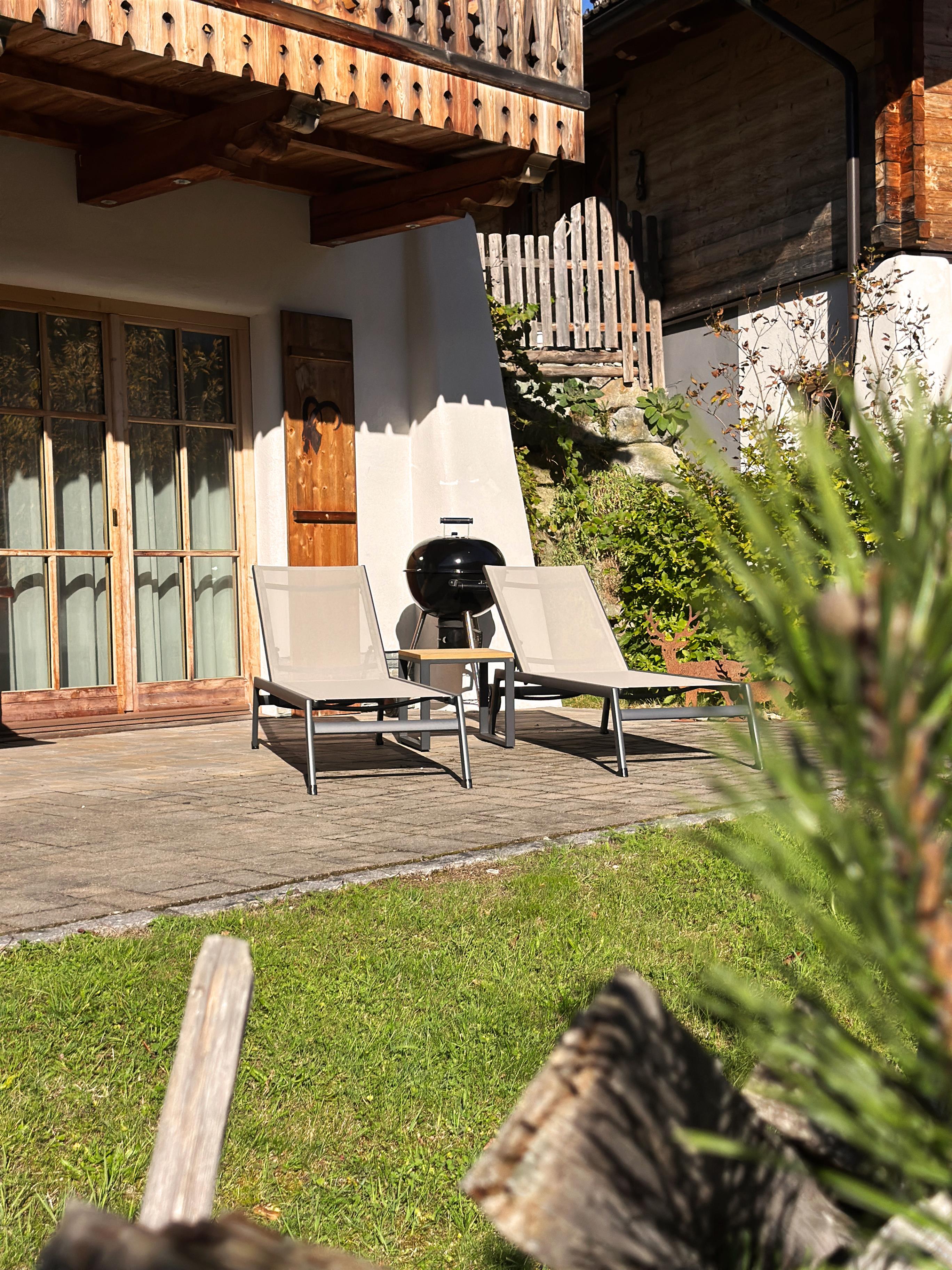 - Garten mit Esstisch, Loungeecke, Sonnenliegen, Sonnenschirm & Grill