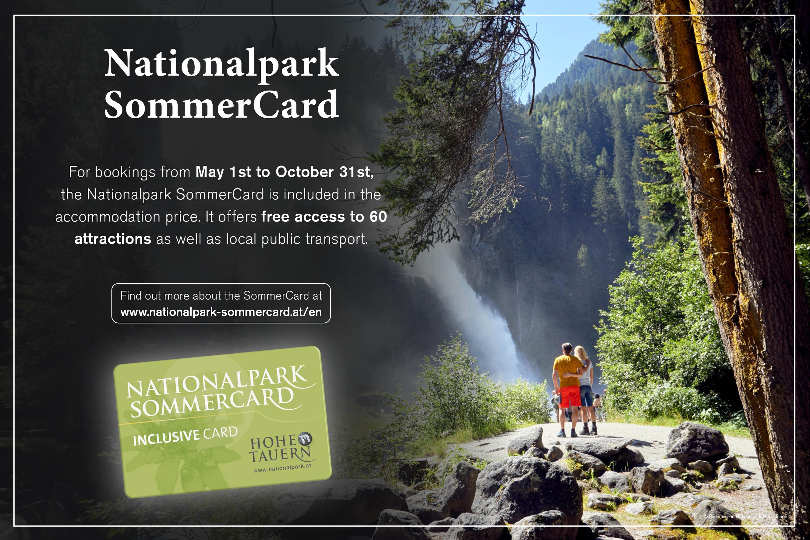Bei Buchungen vom 1. Mai bis 31. Oktober ist die Nationalpark SommerCard im Aufenthaltspreis enthalten. Sie bietet freien Zugang zu 60 Attraktionen sowie zur Nutzung der lokalen Verkehrsmittel: