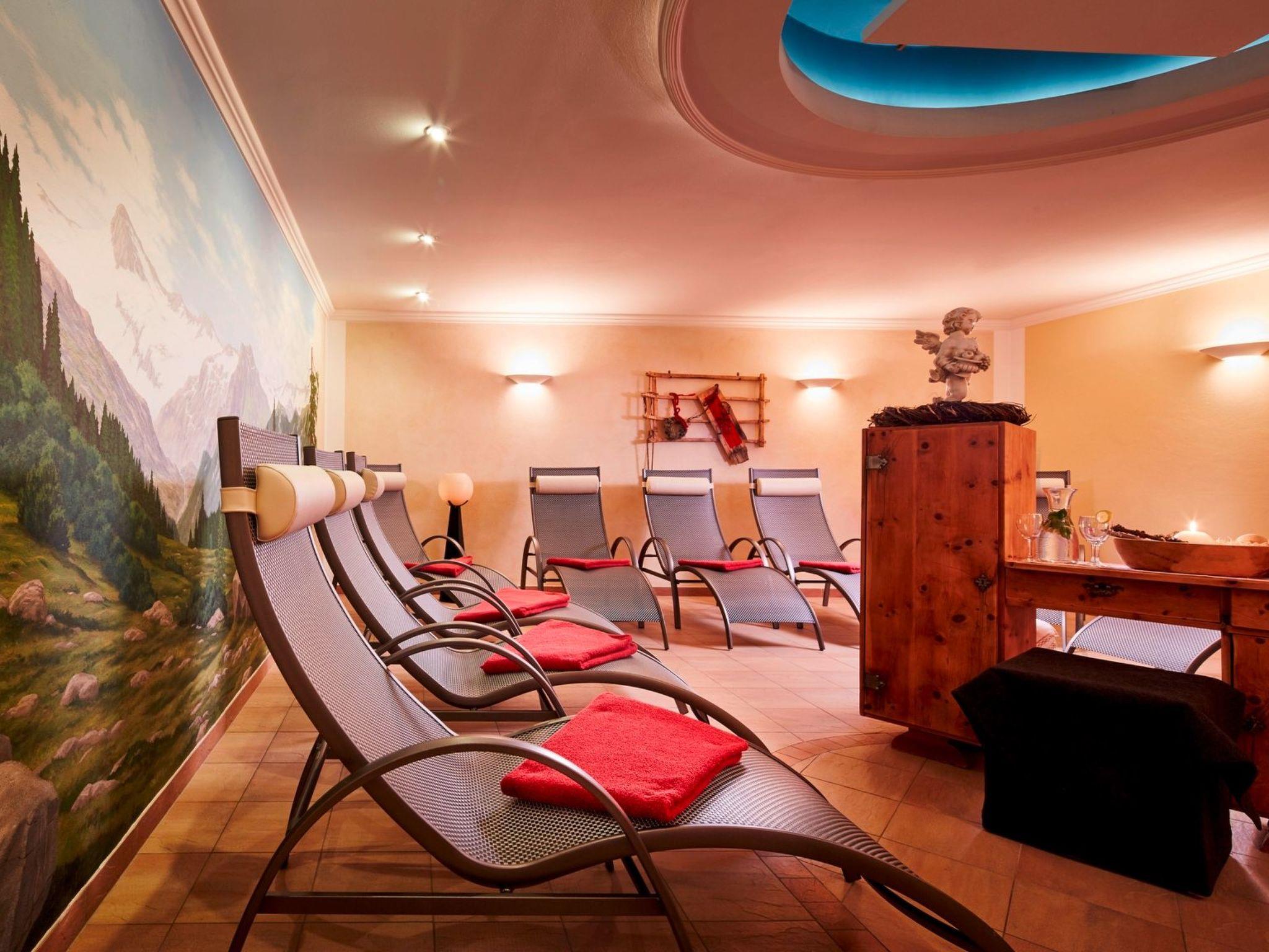 200 m² wellness oasis with Finnish sauna, steam bath, infrared stone pine loungers, stone pine soft sauna, Kneipp pool and relaxation room at Hotel Steiger