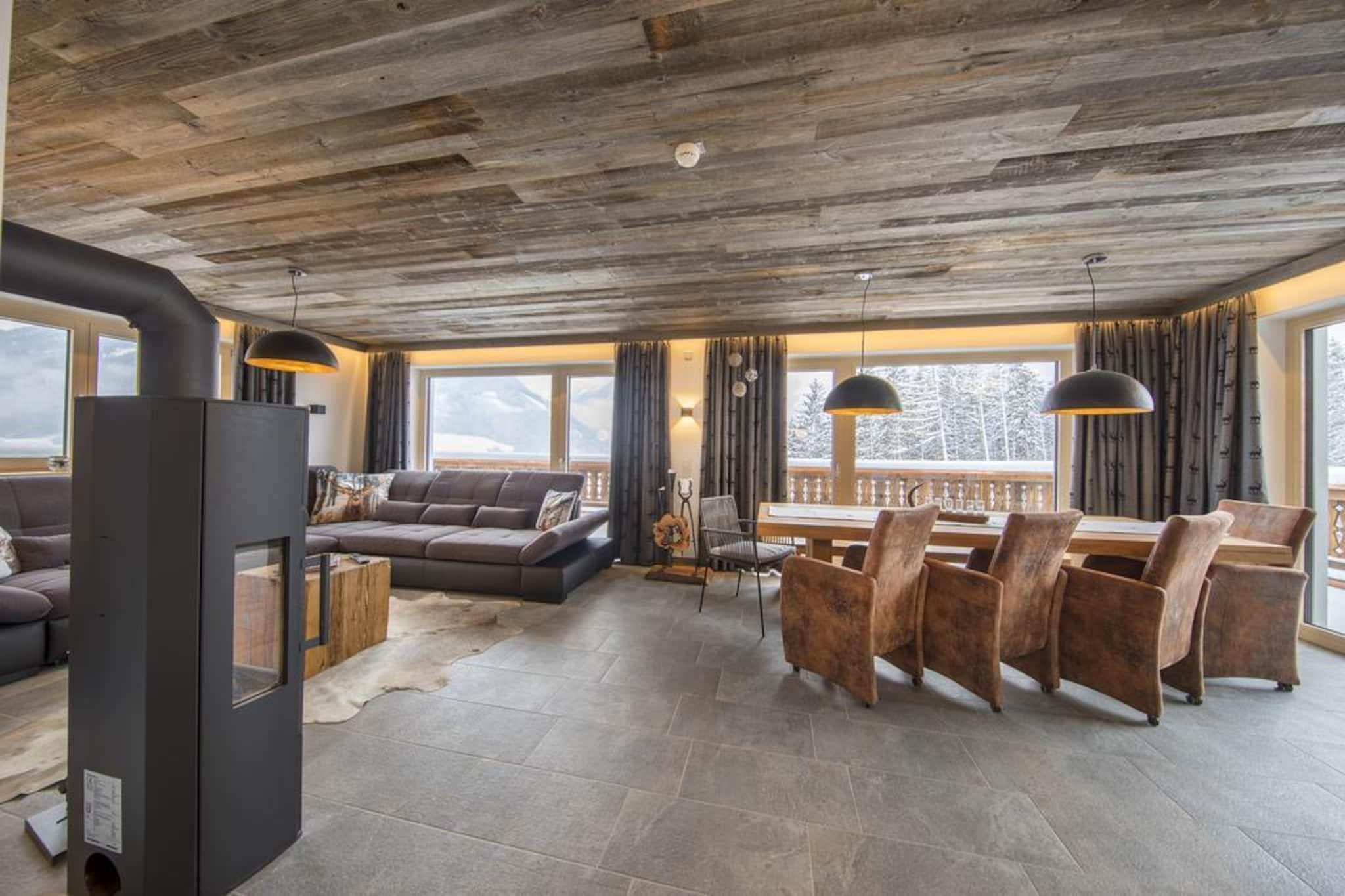 På en helt særlig beliggenhed, sydvest for det berømte Neukirchen am Großvenediger, omgivet af frisk bjergluft, grønne enge og smukke snehvide skråninger, ligger dette smukke, luksuriøse chalet bygget på den solrige skråning af Rossberg. Det smukke chalet er bygget med karakter. Den generøse brug af træ, karakteristiske detaljer, en perfekt finish kombineret med brugen af materialer af høj kvalitet gør huset yderst komfortabelt og luksuriøst. Du føler dig hjemme fra første øjeblik. Dit chalet, hvor I er de eneste gæster, har 3 etager. En af disse etager er opholdsstuen, som tilbyder en fantastisk udsigt gennem de store vinduer. Udover en opholds- og spisestue med hyggelig brændeovn er der også et moderne, åbent køkken udstyret med alt moderne udstyr. Soveværelserne, som er fordelt på etagerne, er meget stemningsfulde og har møbler af høj kvalitet. Du har også din egen private sauna. Du kan parkere dine (to) bil(er) på de delvist overdækkede parkeringspladser. Der er flere chaleter i umiddelbar nærhed, hvilket skaber en slags landsby. Der er en centralt beliggende skiudlejning og skiskole. Derudover er der en "Imbiss" med en lille menu til en snack eller en drink. Kan du lide frisk brød hver dag? Intet problem, du kan bestille dette i receptionen. Skiliften med øvelsesbakke ligger i gåafstand fra hytten, perfekt til familier med små børn eller begyndere. Øvede skiløbere kan nå gondolen til det smukke skiområde Wildkogel Arena med den gratis skibus. På grund af beliggenheden lige ved pisterne kan du stå på ski tilbage til din hytte, når der er masser af sne. Vil du have noget anderledes? Skiområderne Zillertal Arena eller Kitzbühel / Kirchberg ligger begge kun få minutter i bil. Om sommeren tilbyder de omkringliggende bjerge og mange attraktioner i umiddelbar nærhed masser af muligheder for den aktive feriegæst eller dem, der søger fred og ro. I perioden fra maj til oktober modtager du som gæst Nationalpark Sommercard med gratis adgang til lifter, swimmingpools, aktiviteter, offentlig transport og meget mere. Kan varmt anbefales! Et lager af brænde er inkluderet i prisen.