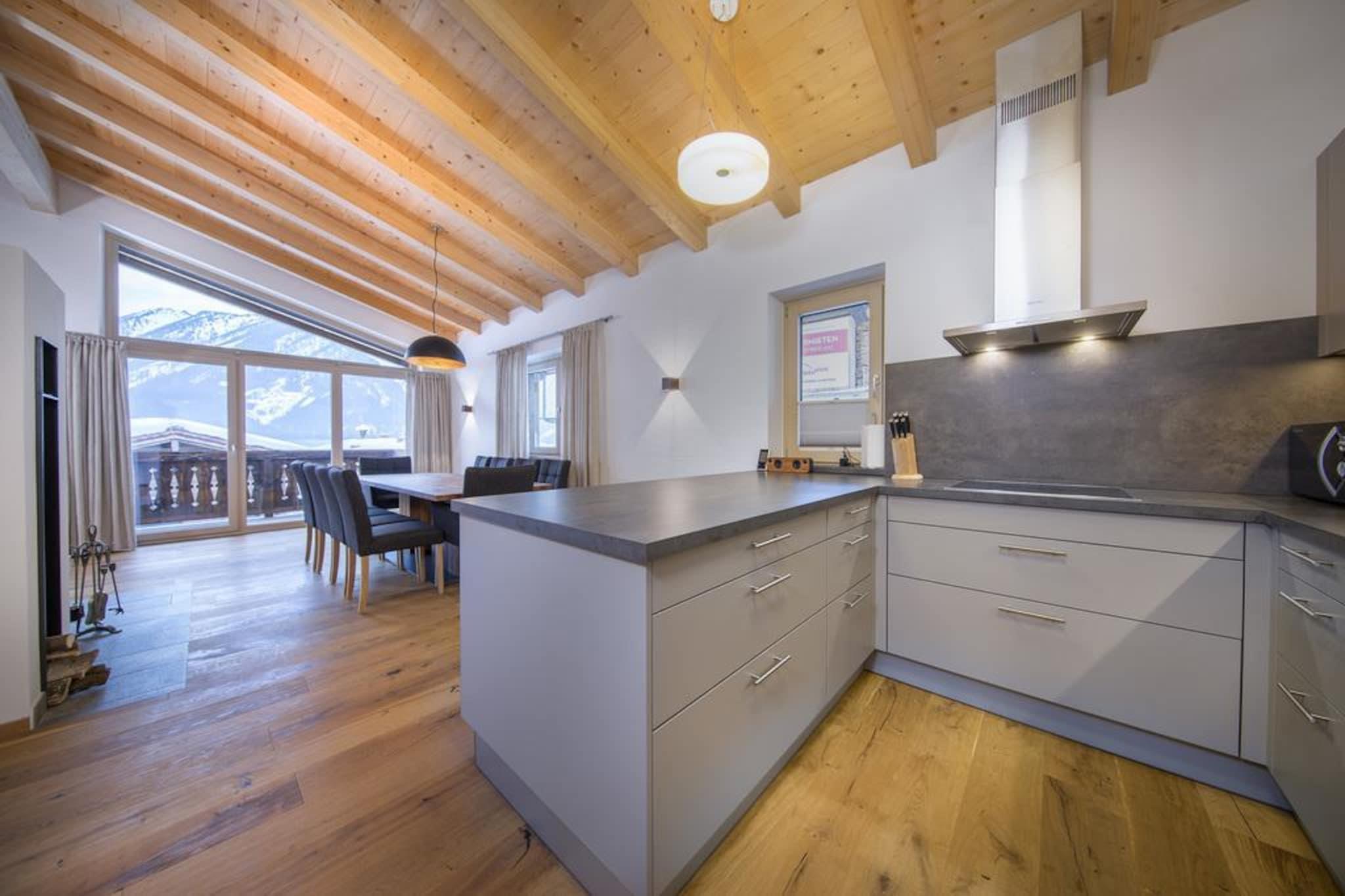 På en meget speciel beliggenhed, sydvest for den berømte Neukirchen am Großvenediger, omgivet af frisk bjergluft, grønne enge og smukke snedækkede hvide skråninger, er dette smukke luksuriøse chalet bygget på Rossbergs solrige skråning. Den smukke hytte er bygget med karakter. Den liberale brug af træ, særprægede detaljer, en perfekt finish kombineret med brugen af materialer af høj kvalitet gør huset yderst komfortabelt og luksuriøst. Du føler dig hjemme helt fra det første øjeblik. Din hytte, som du selv optager alene, har selvfølgelig mindst 2 etager, men nogle gange også 3. Et af disse gulve er opholdsområdet, som har en fantastisk udsigt gennem den enorme vinduer. Udover et opholds- og spiseplads med hyggelig brændeovn er der også et moderne åbent køkken udstyret med alt moderne udstyr. Soveværelserne, der er fordelt over gulvene, er meget atmosfæriske og har møbler af høj kvalitet. Der er også en privat sauna. Du kan parkere din bil på de delvist overdækkede parkeringspladser, som ledig. Der er flere hytter i umiddelbar nærhed, der skaber en slags landsby. Der er en centralt beliggende ski udlejning og skiskole. Derudover er der en "Imbiss" med en lille menu til en snack eller en drink. Kan du lide frisk brød hver dag? Intet problem, du kan bestille disse i receptionen. Skibakken med træningsområde (fra 2019/2020 sæsonen) ligger inden for gåafstand af hytten, perfekt til familier med små børn eller begyndere. Avancerede skiløbere kan bringes til elevatoren af det smukke Wildkogel Arena skiområde med den gratis skibus. På grund af beliggenheden lige på skråningerne kan du stå tilbage til din hytte, når der er masser af sne. Vil du have noget andet? Skiområdet Zillertal Arena eller Kitzbühel / Kirchberg ligger kun få minutter væk i bil. Om sommeren tilbyder de omkringliggende bjerge og de mange seværdigheder at byde masser af muligheder for den aktive feriegæster eller for dem der søger ro. I