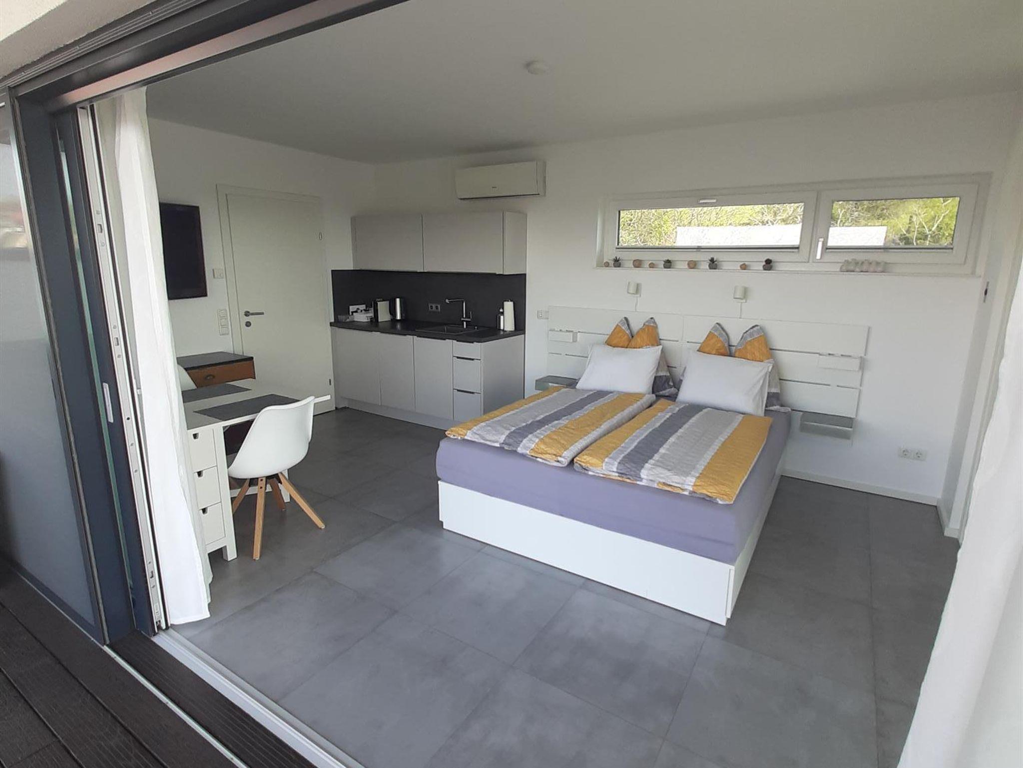 Die kleine Gästewohnung ist für Alleinreisende und Paare ideal. Die große Terrasse ist für die alleinige Nutzung vorgesehen.
